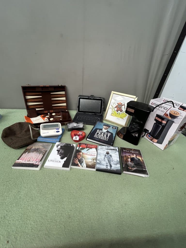 Tilly’s Auction (part three) Auction Ends: Thursday 2nd April Collection date: Sunday 5th April Lot 1: Collection of Glassware Starting Bid £12.00 Be the first to bid! Lot 2: Mixed Glassware Starting Bid £9.00 Be the first to bid! Lot 3: Coloured Glass Starting Bid £12.00 Be the first to bid! Lot 4: Vintage Tin Toy Boat Current Bid £8.00 Lot 5: Mixed Lot Starting Bid £6.00 Be the first to bid! Lot 6: Hammer Drill & Mini Screwdriver Starting Bid £12.00 Be the first to bid! Lot 7: Collection of Picture Frames Starting Bid £4.00 Be the first to bid! Lot 8: Floor Safe Starting Bid £15.00 Be the first to bid! Lot 9: Vintage Pictures Unframed Starting Bid £10.00 Be the first to bid! Lot 10: Himalayan Salt Lamps Starting Bid £25.00 Be the first to bid! Lot 11: Cameras & Sundries Current Bid £12.00 Lot 12: Framed Pictures Starting Bid £9.00 Be the first to bid! Lot 13: Cameras & Lenses Starting Bid £12.00 Be the first to bid! Lot 14: Framed Artworks Starting Bid £12.00 Be the first to bid! Lot 15: Wooden Clock Cases Starting Bid £6.00 Be the first to bid! Lot 16: West German Table Lamp Starting Bid £18.00 Be the first to bid! Lot 17: Ornate Lamp Starting Bid £7.00 Be the first to bid! Lot 18: Wall Sconce & Table Lamp Starting Bid £12.00 Be the first to bid! Lot 19: Vintage Croquet Set Starting Bid £24.00 Be the first to bid! Lot 20: William Morris Wallpaper Current Bid £14.00 Lot 21: Vintage Hutschenreuther Dinner Set Starting Bid £24.00 Be the first to bid! Lot 22: Collectable Books Starting Bid £8.00 Be the first to bid! Lot 23: Cookery Books Starting Bid £7.00 Be the first to bid! Lot 24: Garden Books Starting Bid £4.00 Be the first to bid! Lot 25: Collection of Books Starting Bid £3.00 Be the first to bid! Lot 26: Water Colour & Long Frame Starting Bid £6.00 Be the first to bid! Lot 27: Two Hard Shell Suitcases Current Bid £7.00 Lot 28: Two Suitcases Starting Bid £6.00 Be the first to bid! Lot 29: Mixed Lot Starting Bid £8.00 Be the first to bid! Lot 30: 6 Nautical Books Starting Bid £9.00 Be the first to bid! Lot 31: 6 Nautical Books Starting Bid £9.00 Be the first to bid! Lot 32: 6 Nautical Books Starting Bid £9.00 Be the first to bid! Lot 33: 4 Nautical Books Starting Bid £6.00 Be the first to bid! Lot 34: Solid Pine Pew Current Bid £15.00 Lot 35: Hall Chair Starting Bid £24.00 Be the first to bid! Lot 36: Vintage Foot Stool with Storage Starting Bid £9.00 Be the first to bid! Lot 37: Louis XV Style Chair Starting Bid £12.00 Be the first to bid! Lot 38: Coat & Hat Stand Starting Bid £12.00 Be the first to bid! Lot 39: Vintage Oval Mirror Starting Bid £24.00 Be the first to bid! Lot 40: Side Table Starting Bid £4.00 Be the first to bid! Lot 41: Antique Wooden Side Chair Starting Bid £12.00 Be the first to bid! Lot 42: Baroque Style Mirror Current Bid £20.00 Lot 43: Ornate Gold Mirror Current Bid £12.00 Lot 44: Oil Painting Landscape Starting Bid £12.00 Be the first to bid! Lot 45: Vintage Mirror Starting Bid £18.00 Be the first to bid! Lot 46: Vintage Mahogany Three Panel Screen Starting Bid £24.00 Be the first to bid! Lot 47: Two Arts & Crafts Chairs Starting Bid £12.00 Be the first to bid! Lot 48: Two Side Tables Starting Bid £5.00 Be the first to bid! Lot 49: Antique Bedroom Chair Starting Bid £12.00 Be the first to bid! Lot 50: Two Foot Stools Starting Bid £9.00 Be the first to bid! Lot 51: Two Framed Landscapes Starting Bid £9.00 Be the first to bid! Lot 52: Framed Vintage Barbarella Poster Starting Bid £12.00 Be the first to bid! Lot 53: Vintage Spanish Poster Starting Bid £9.00 Be the first to bid! Lot 55: Pair of Antique Hepplewhite Style Chairs Starting Bid £10.00 Be the first to bid! Lot 57: Three Framed Landscapes Starting Bid £9.00 Be the first to bid! Lot 58: Collection of Framed Watercolours Current Bid £12.00 Lot 59: Two Decorative Wooden Wall Plaques Starting Bid £24.00 Be the first to bid! Lot 60: Two Decorative Wooden Wall Plaques Starting Bid £24.00 Be the first to bid! Lot 61: Vintage Turandot Opera Framed Poster Starting Bid £9.00 Be the first to bid! Lot 62: Empire State Building Poster Starting Bid £9.00 Be the first to bid! Lot 63: Collection of Glassware Starting Bid £12.00 Be the first to bid! Lot 64: Bull Terrier Sculpture Starting Bid £9.00 Be the first to bid! Lot 65: Mixed Lot of Ceramics Starting Bid £12.00 Be the first to bid! Lot 66: Staffordshire Dogs Starting Bid £9.00 Be the first to bid! Lot 67: Coloured Glassware Current Bid £18.00 Lot 68: Mixed Lot Starting Bid £10.00 Be the first to bid! Lot 69: Vintage Miniature Landscapes Watercolours Starting Bid £12.00 Be the first to bid! Lot 70: Collection of 5 Framed Artworks Starting Bid £10.00 Be the first to bid! Lot 71: 4 Vintage Art Pieces Starting Bid £12.00 Be the first to bid! Lot 72: Pair of Antique Staffordshire Greyhounds Starting Bid £12.00 Be the first to bid! Lot 73: Collection of Mirrors Starting Bid £12.00 Be the first to bid! Lot 74: Vintage Room Screens & Fire Screen Starting Bid £15.00 Be the first to bid! Lot 75: Three Framed Black & White Photos Starting Bid £10.00 Be the first to bid! Lot 76: Abstract Art Starting Bid £22.00 Be the first to bid! Lot 77: Vintage Oval Wall Mirror Starting Bid £12.00 Be the first to bid! Lot 78: Framed Landscape & Floral Artworks Starting Bid £9.00 Be the first to bid! Lot 79: Huge Framed Map of London Area Starting Bid £15.00 Be the first to bid! Lot 80: Two Sun Loungers Starting Bid £16.00 Be the first to bid! Lot 81: Antique Wooden Tripod Stand Starting Bid £18.00 Be the first to bid! Lot 82: Large Wooden Dressing Mirror Starting Bid £9.00 Be the first to bid! Lot 83: Big Overmantle Mirror Starting Bid £24.00 Be the first to bid! Lot 84: Multi Coloured Rug Starting Bid £7.00 Be the first to bid! Lot 85: Garden Set Starting Bid £24.00 Be the first to bid! Lot 86: Bench & Weights Starting Bid £14.00 Be the first to bid! Lot Categories Show all