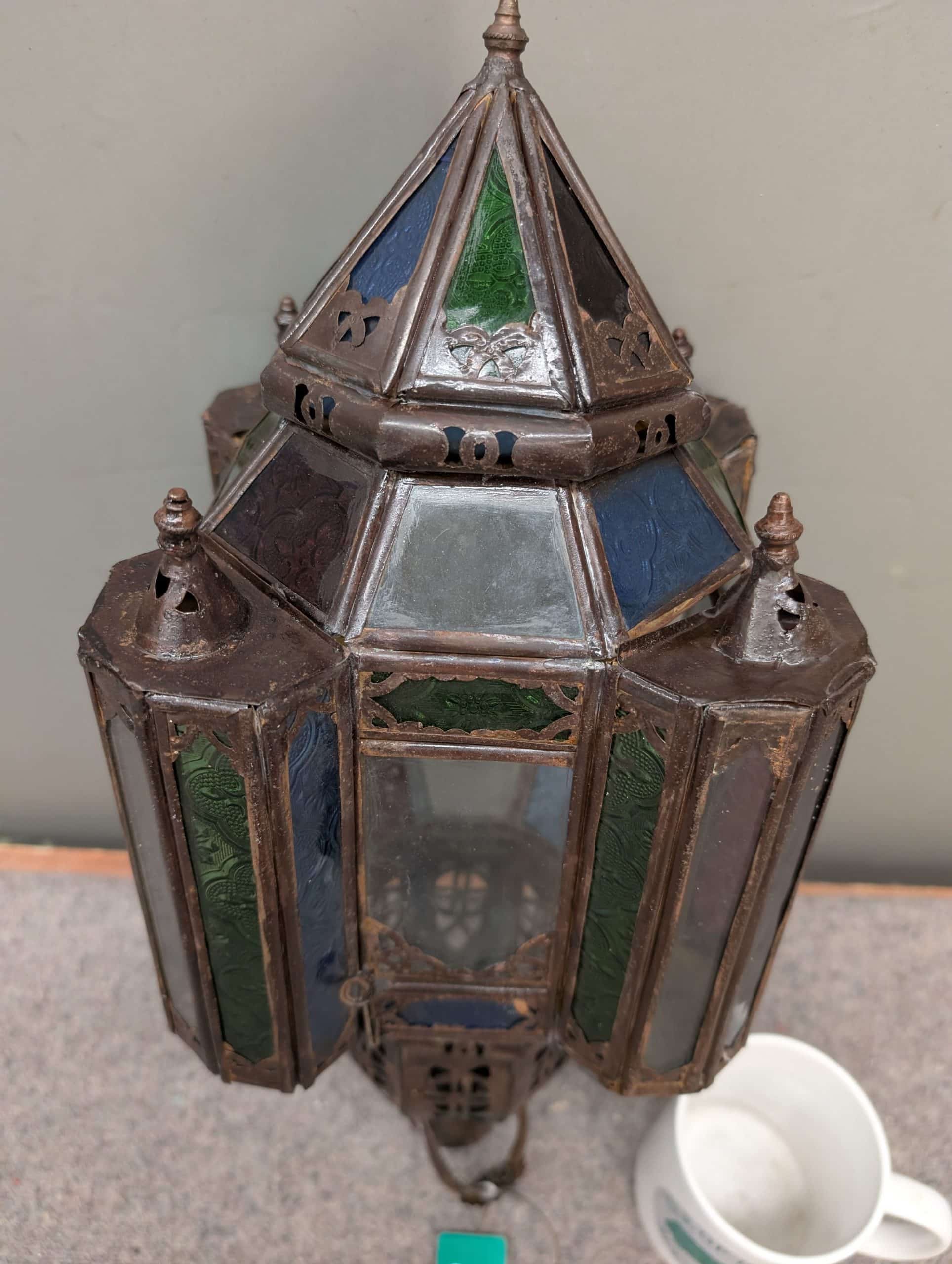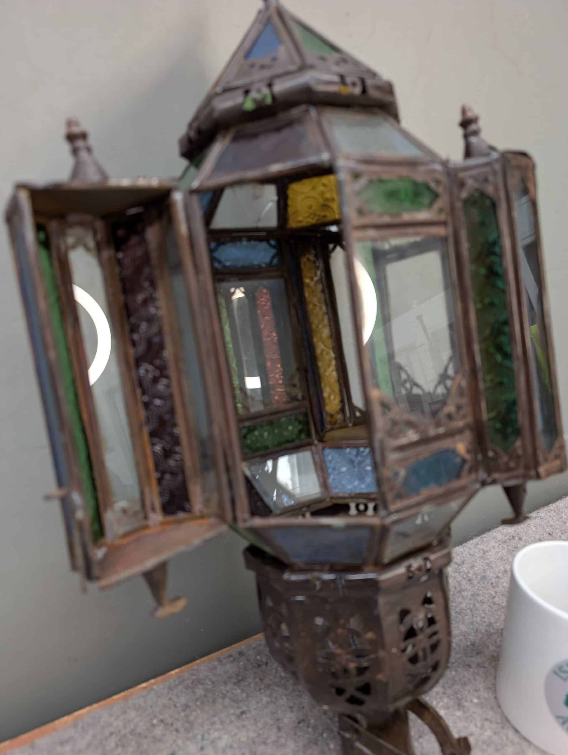 Dolly’s Auction| Item description: | A large, decorative lantern with coloured glass. |