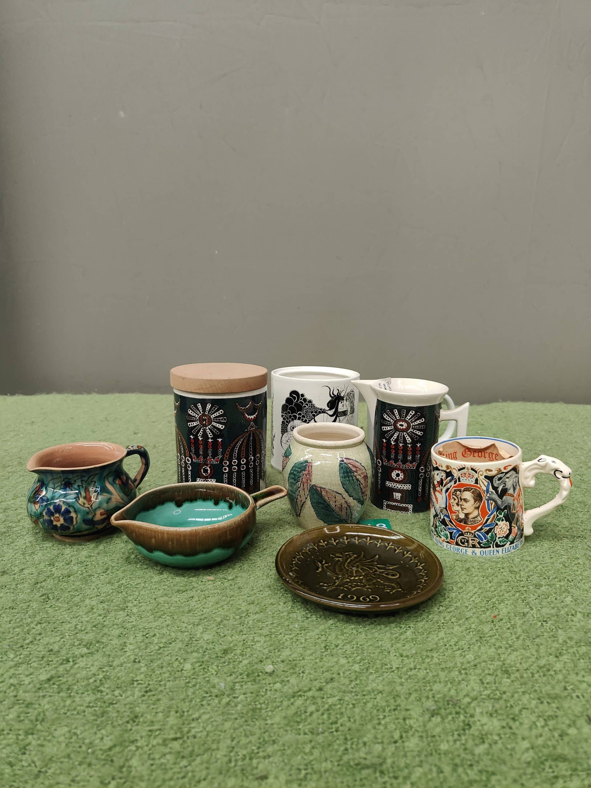 En-e-Va Encore| Item description: | A collection of interesting ceramics incl. Port Merion, a Commemorative mug of King George VI and an IOW pottery vase. |