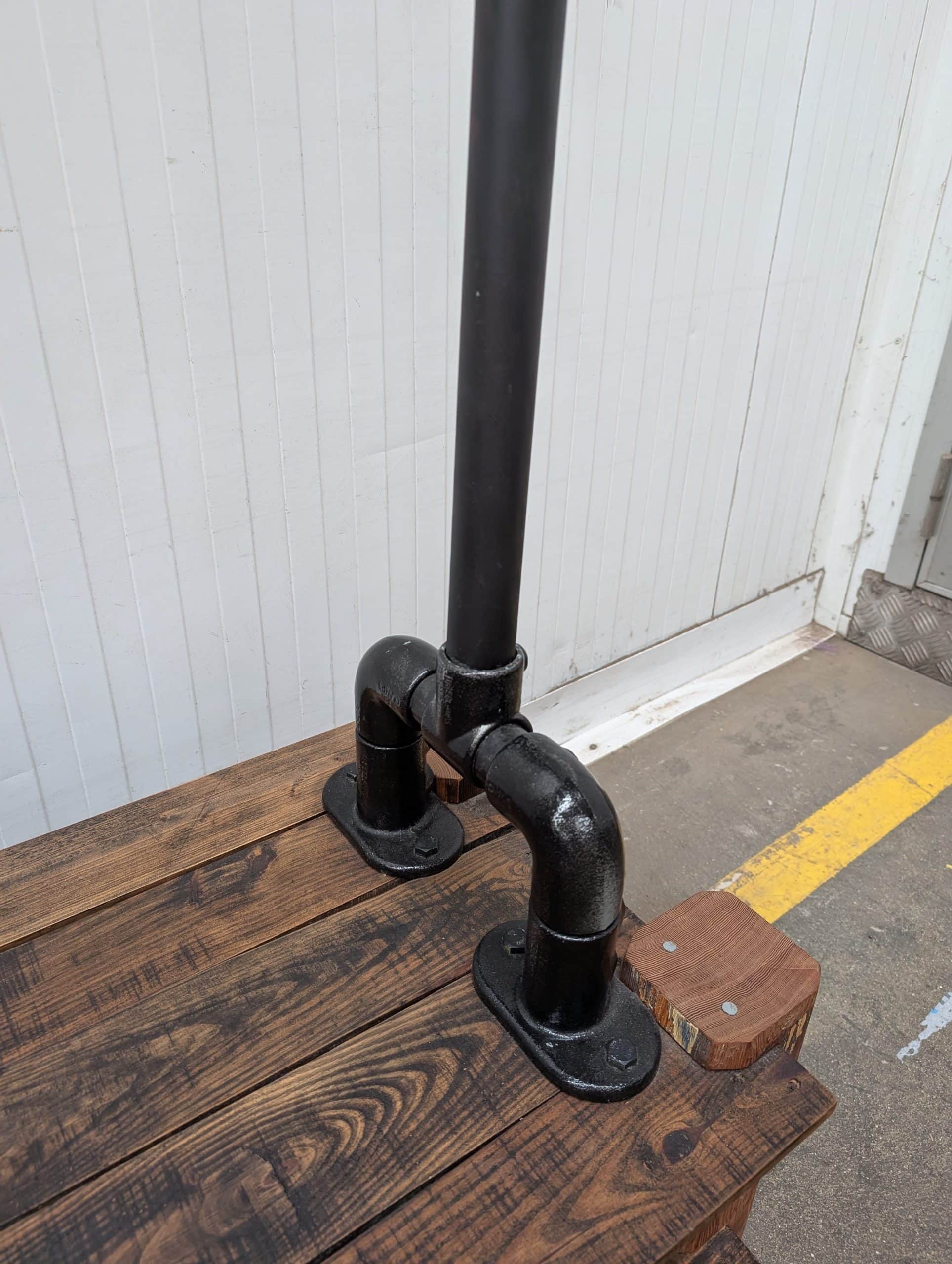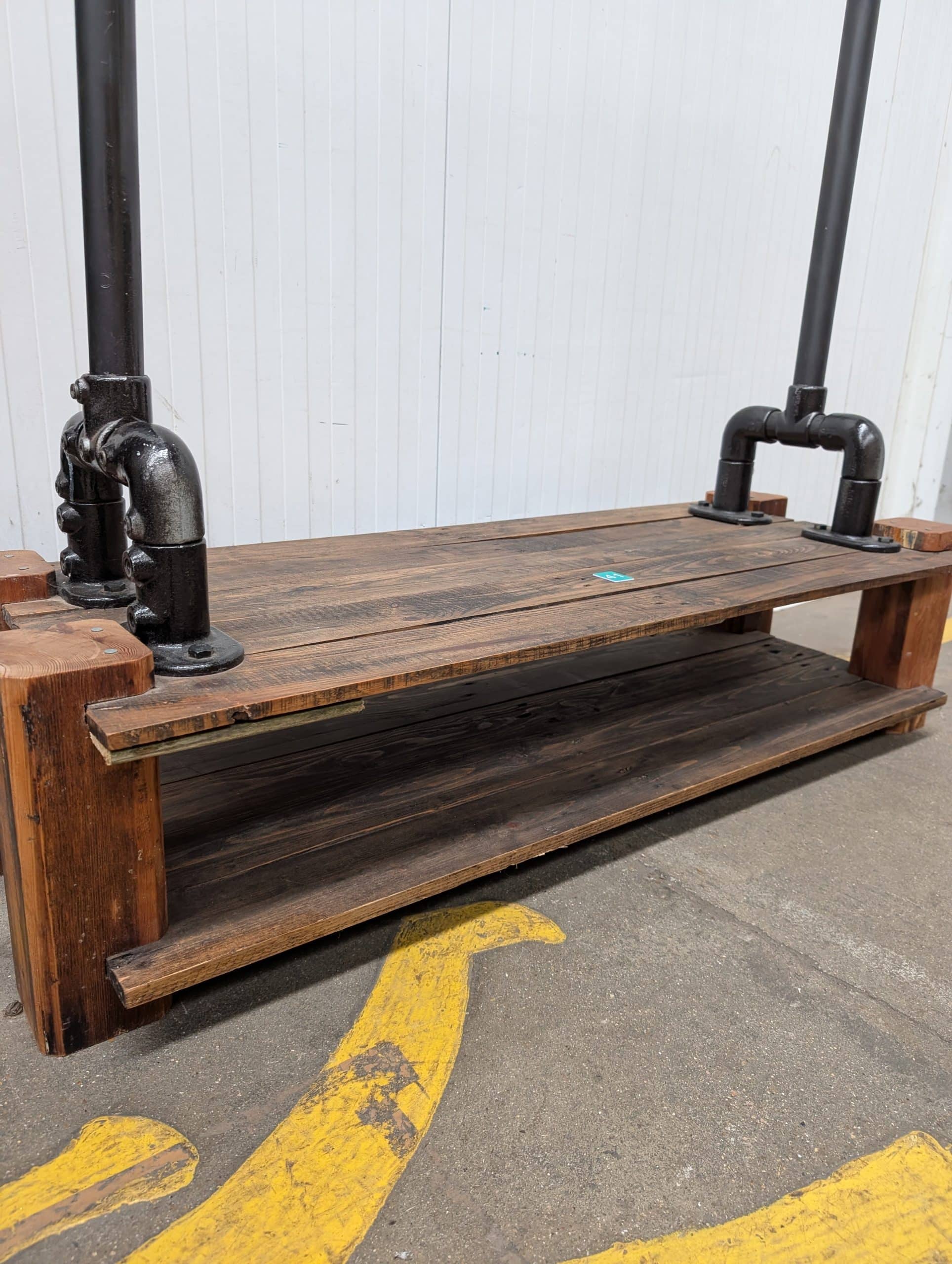 An industrial style clothes rail, 49" long x 70" high x 19" wide.