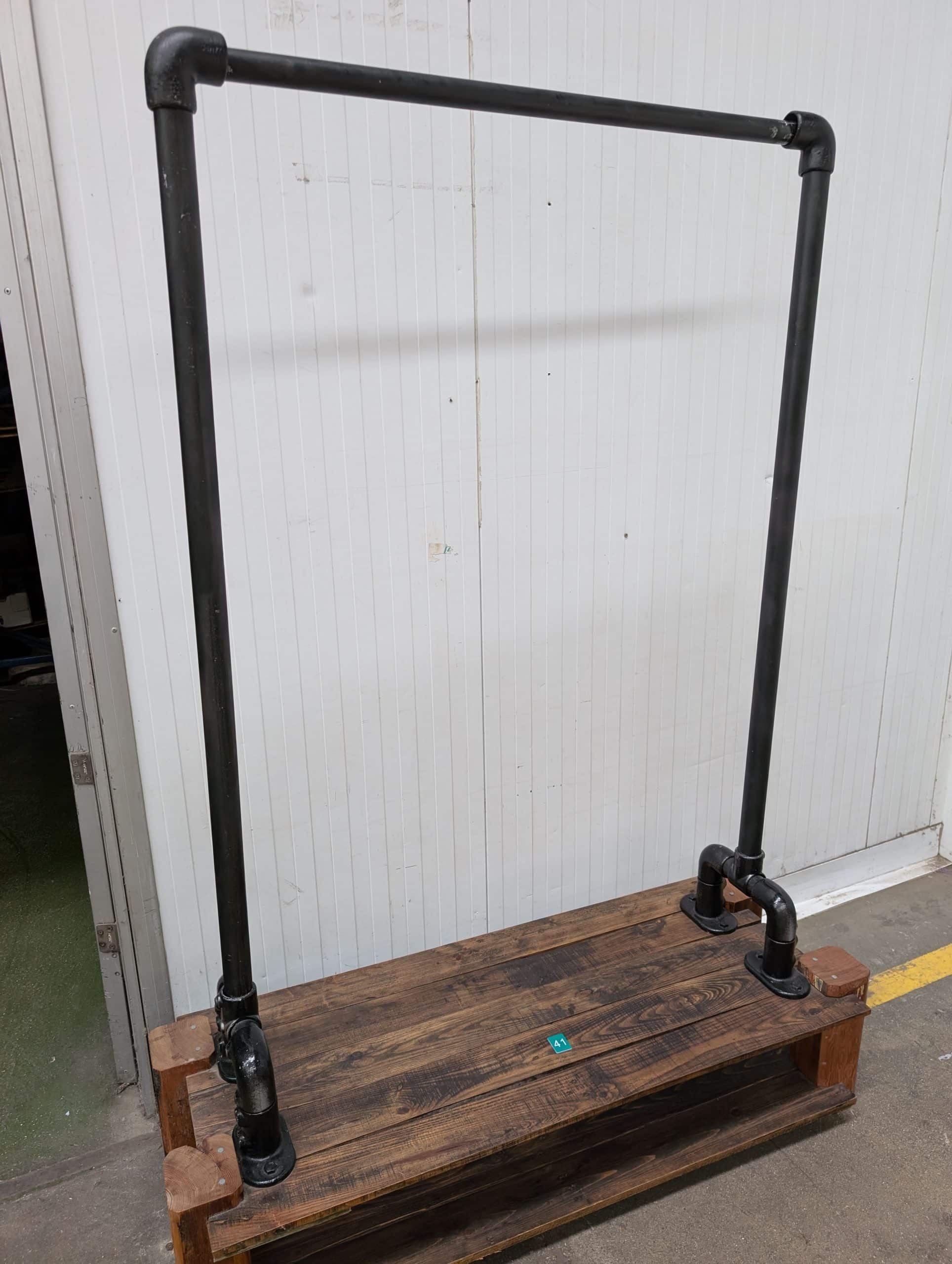 An industrial style clothes rail, 49" long x 70" high x 19" wide.