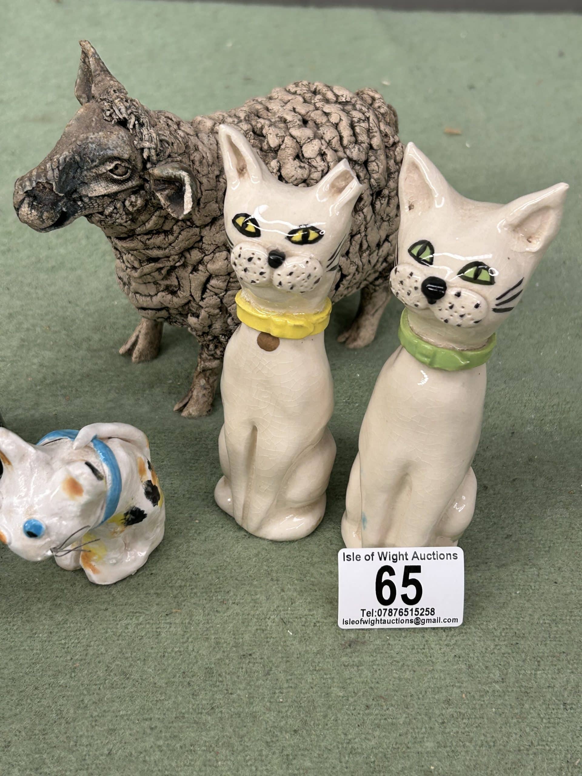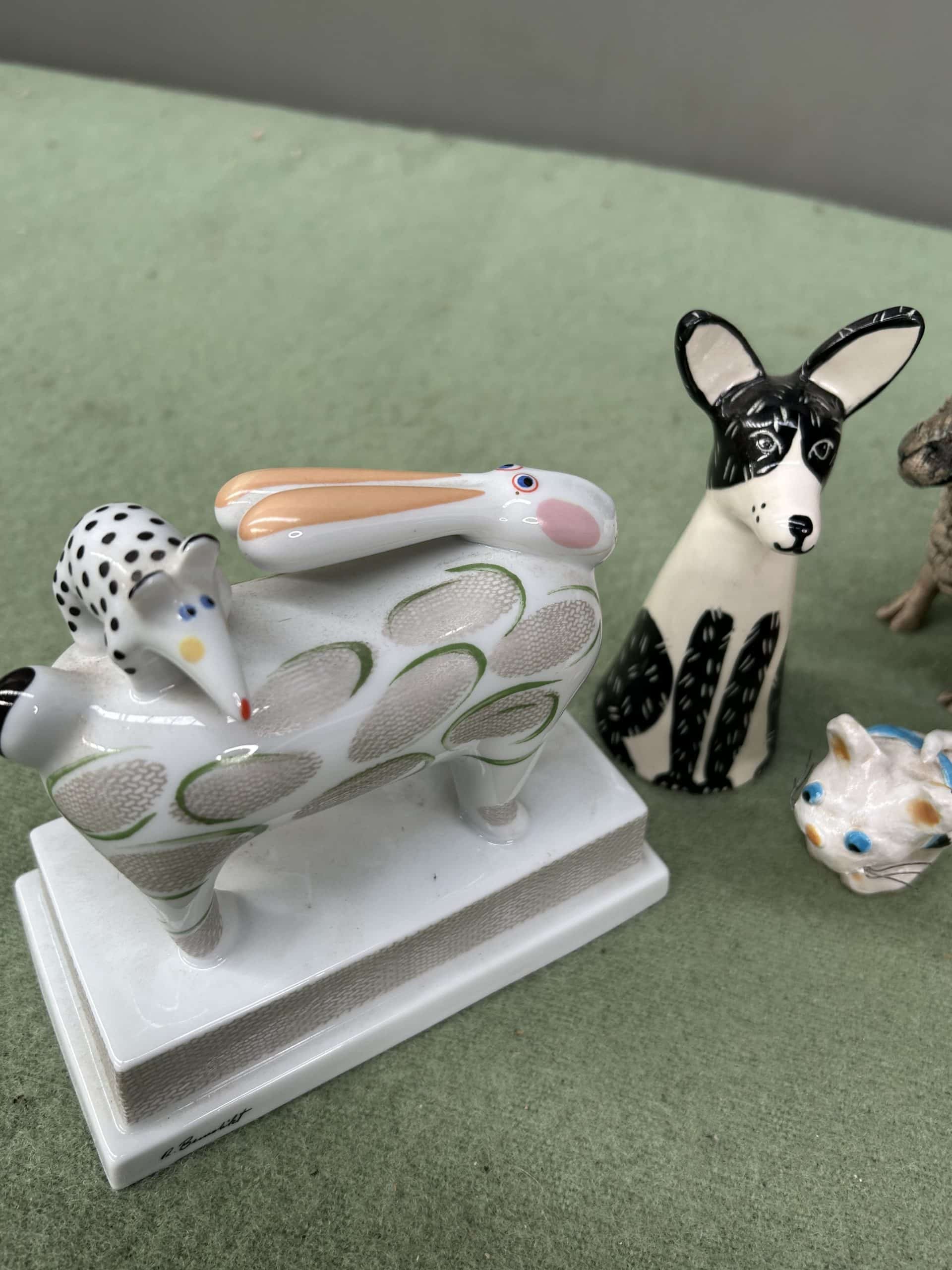 Tilly’s Auction (part three)| Item description: | Mixed Lot of ceramics including Villeroy & Boch Animal Park rabbit & aardvark plinth, two Italian cats damage to the ear of the one with yellow collar, small sheep, dog & small cat |