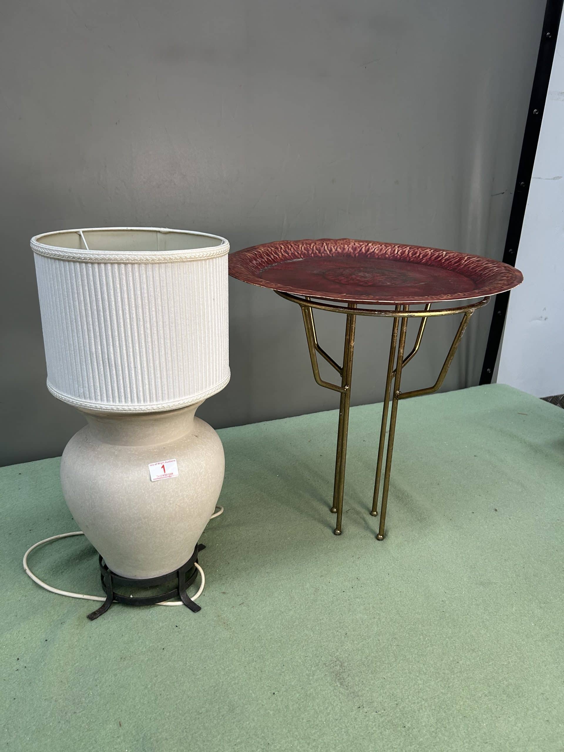Tilly’s Auction ( part 1)| Item description: | Table Lamp and Metal Tray on Stand |
