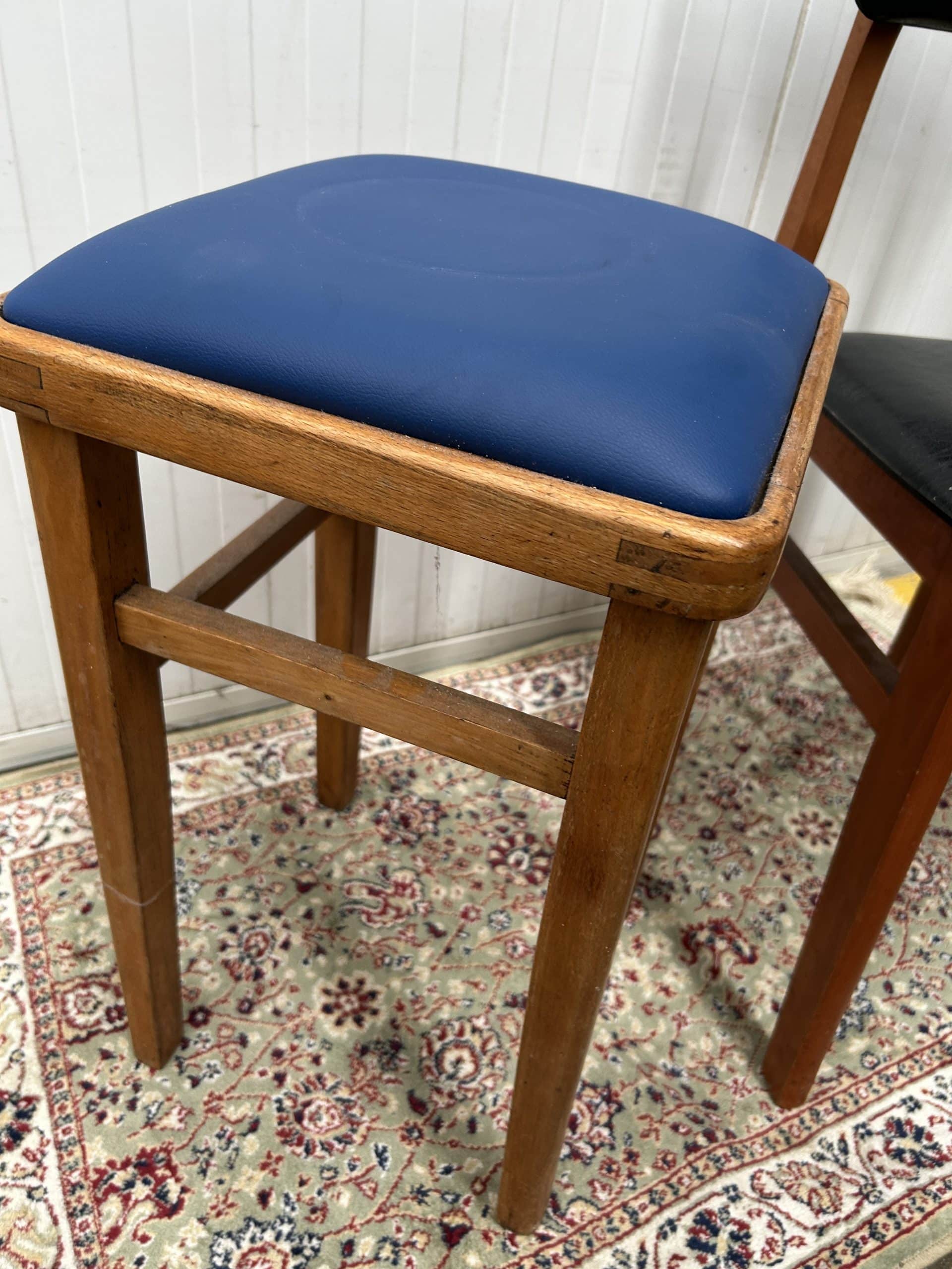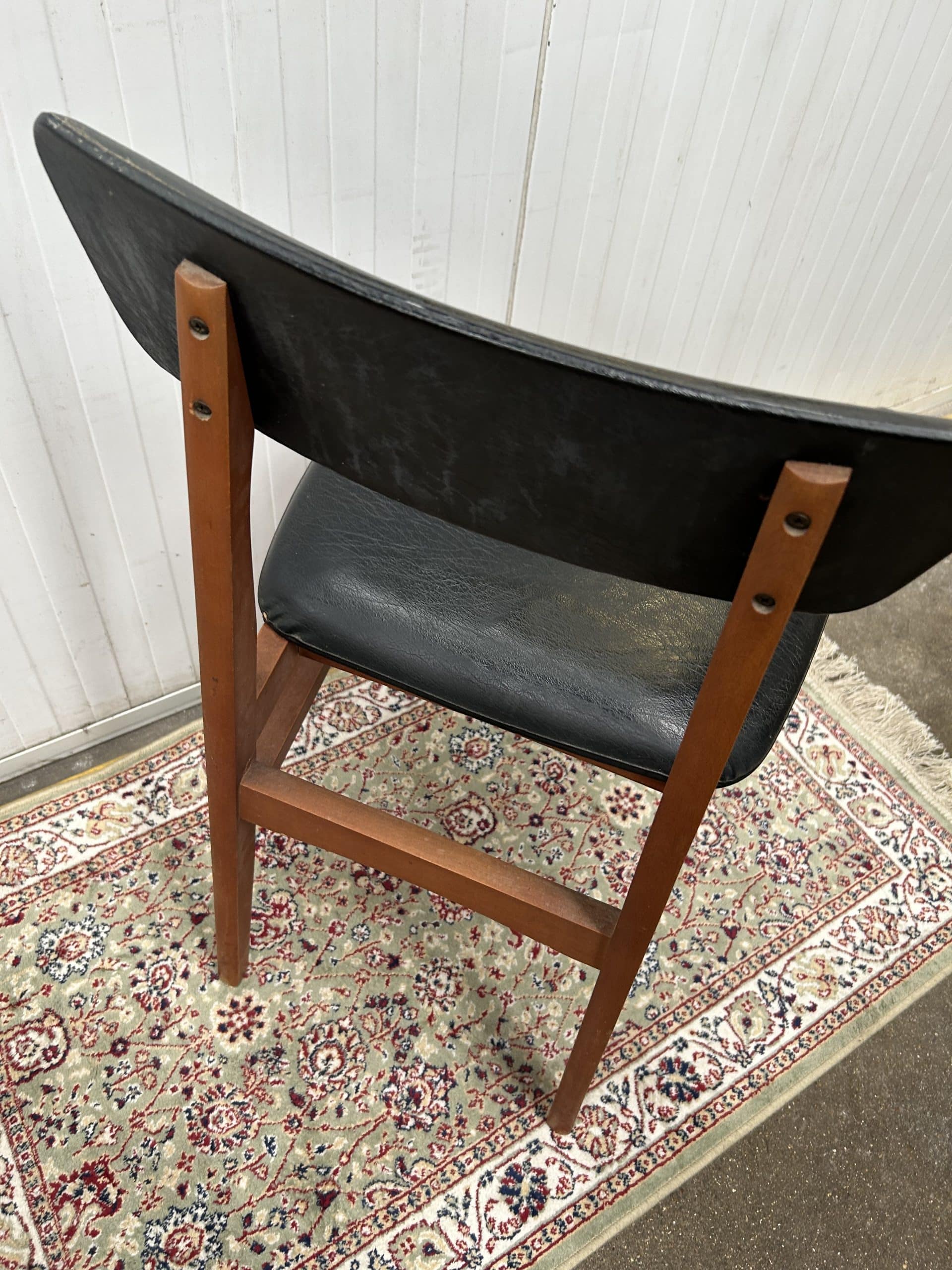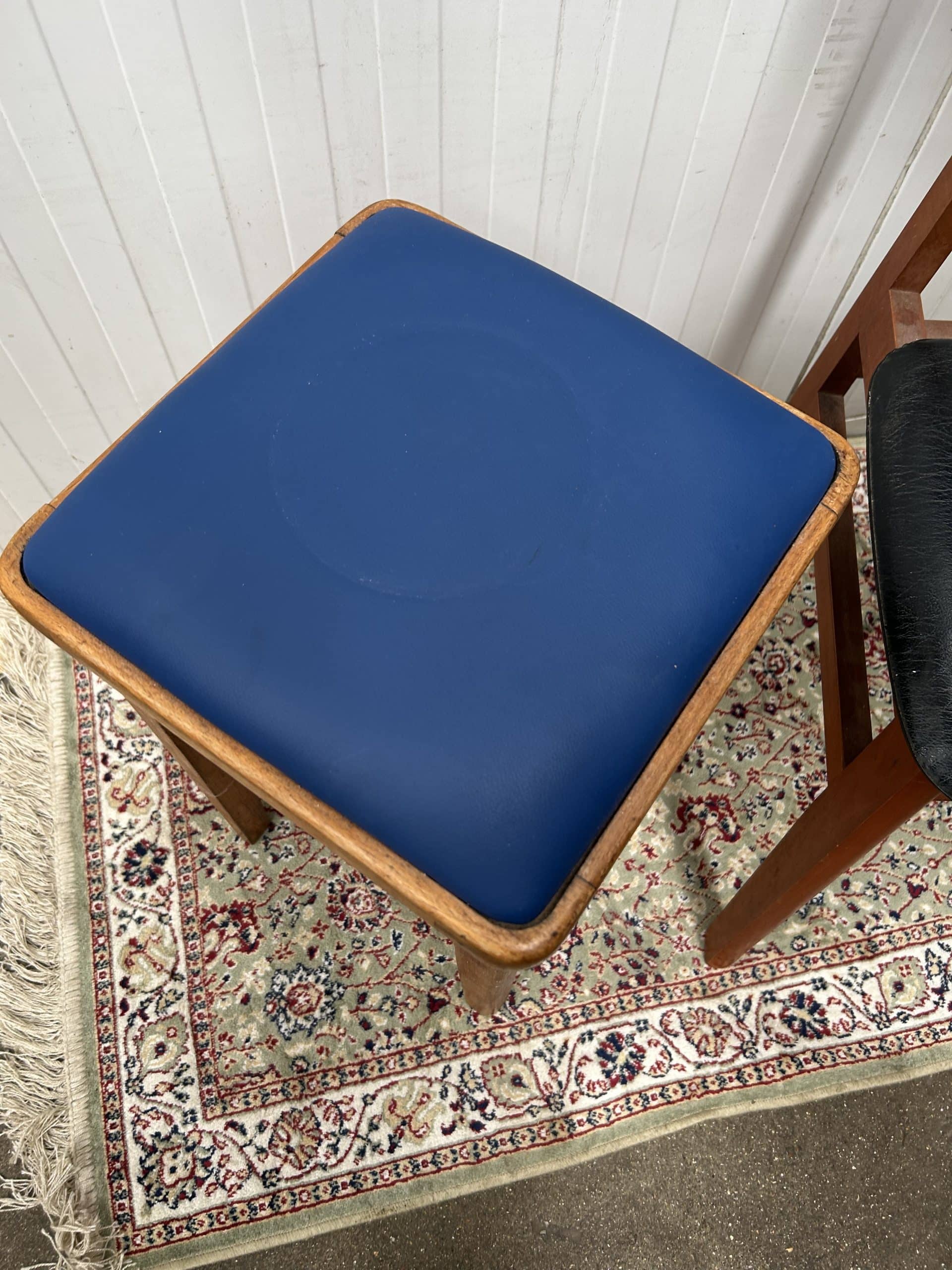 Tilly’s Auction (Part 2)| Item description: | Retro Mid Century Dining Chair black vinyl upholstery plus Kitchen Stool (carpet not included) |
