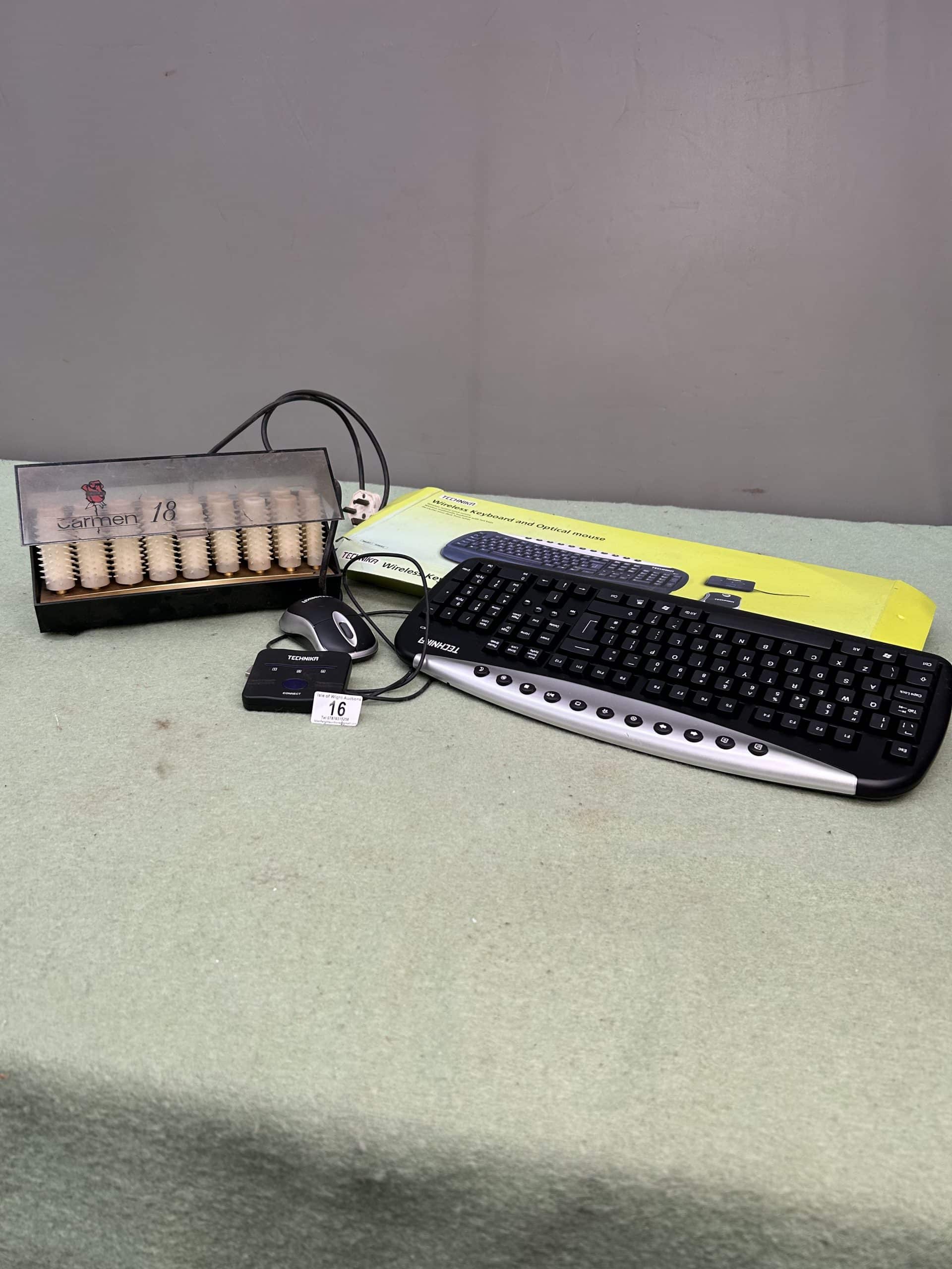 Wren Auction (Part One)| Item description: | Mixed Lot includes new with box technical computer keyboard and mouse, and retro heated hair rollers ( untested) |