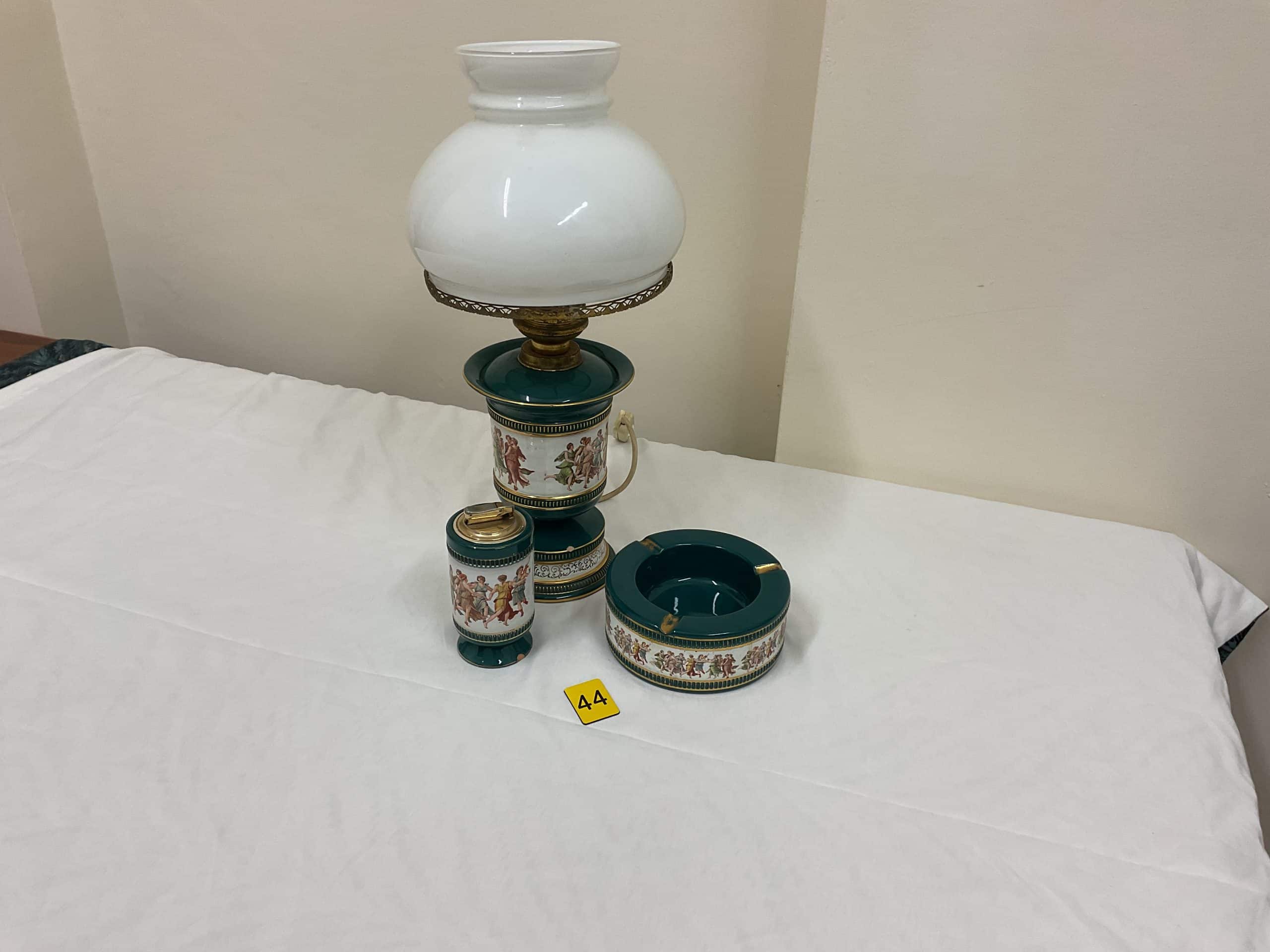 Sam’s Auction| Item description: | Smokers lot includes tables lamp, matching table lighter and ashtray |