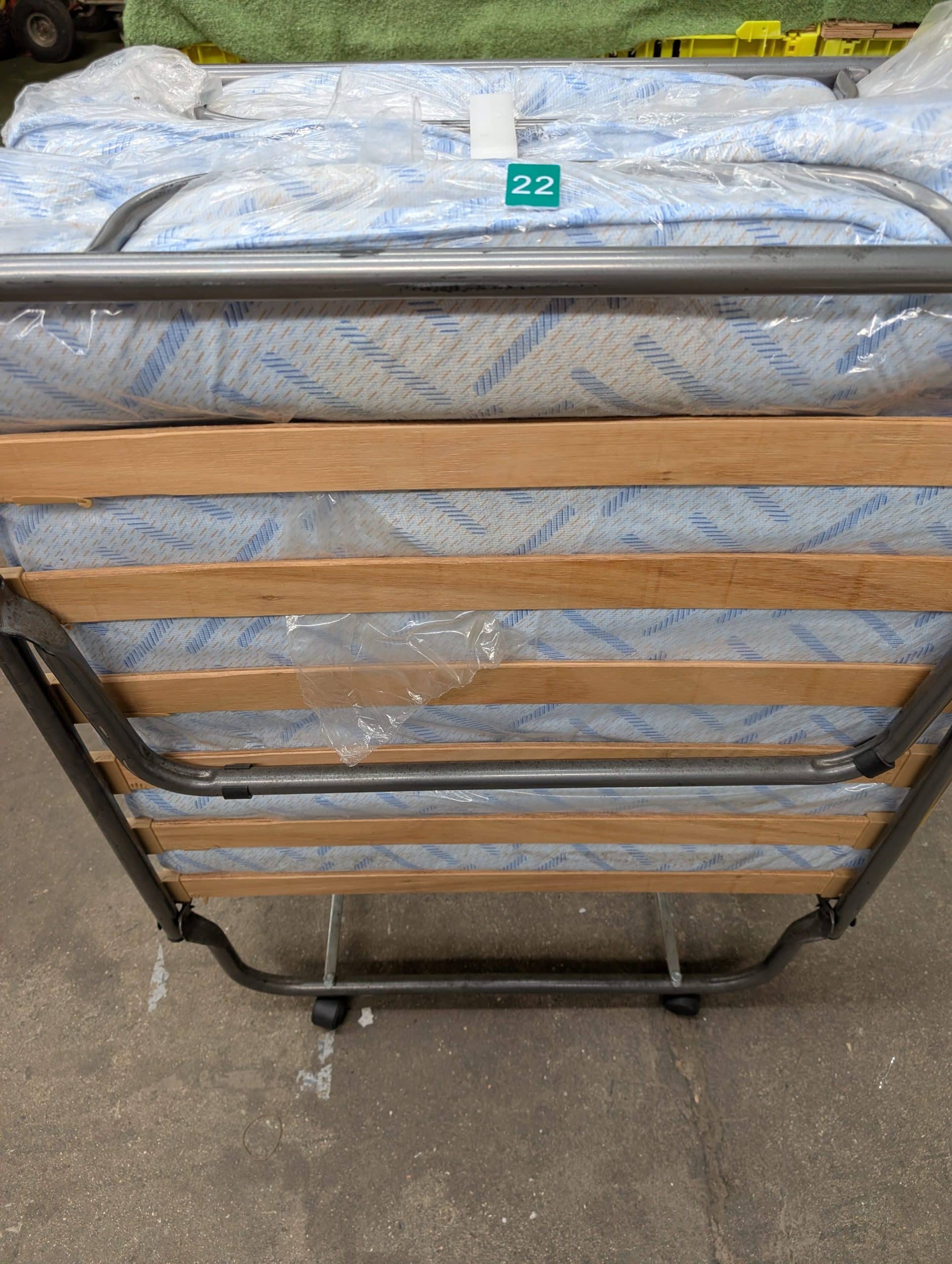 The Last Auction of 2025| Item description: | A folding guest bed with a blue design mattress. |