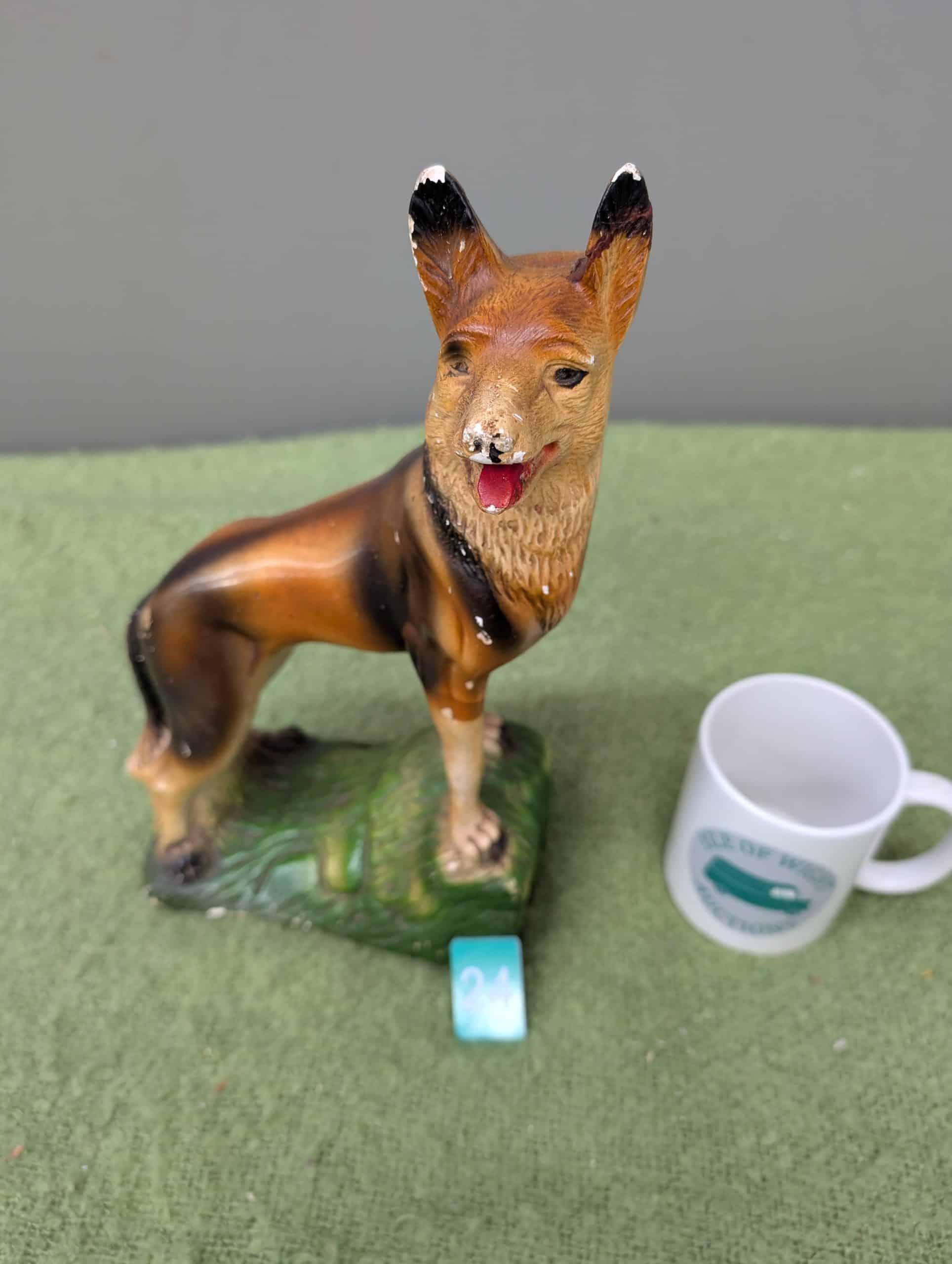 En-e-Va Encore| Item description: | A vintage, German Shepherd figure, slight damage to the tips of the ears. |