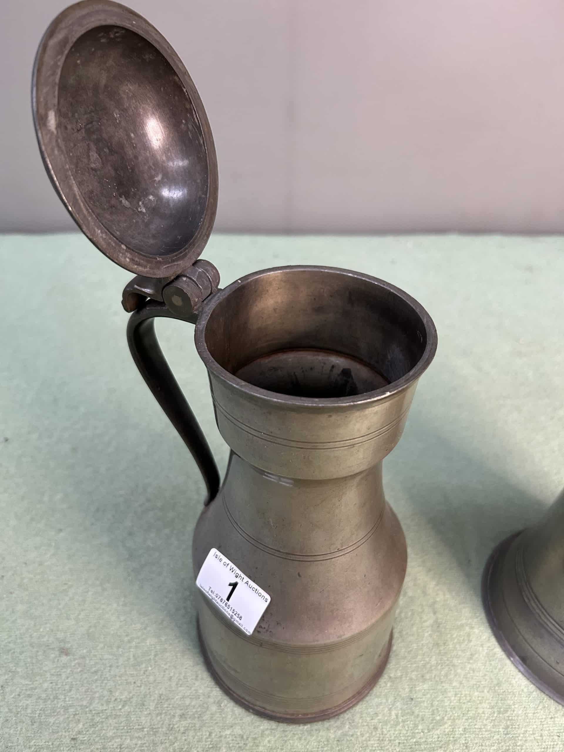 Pewter flagon and tankard set