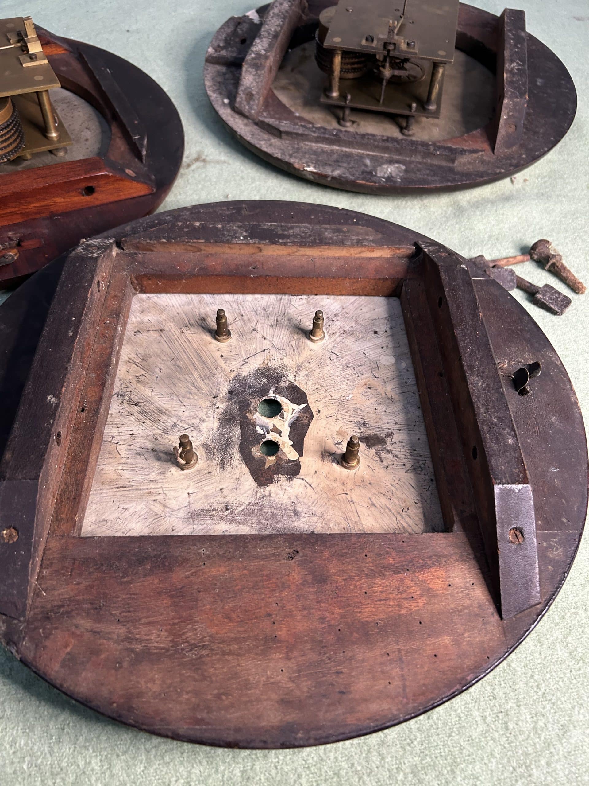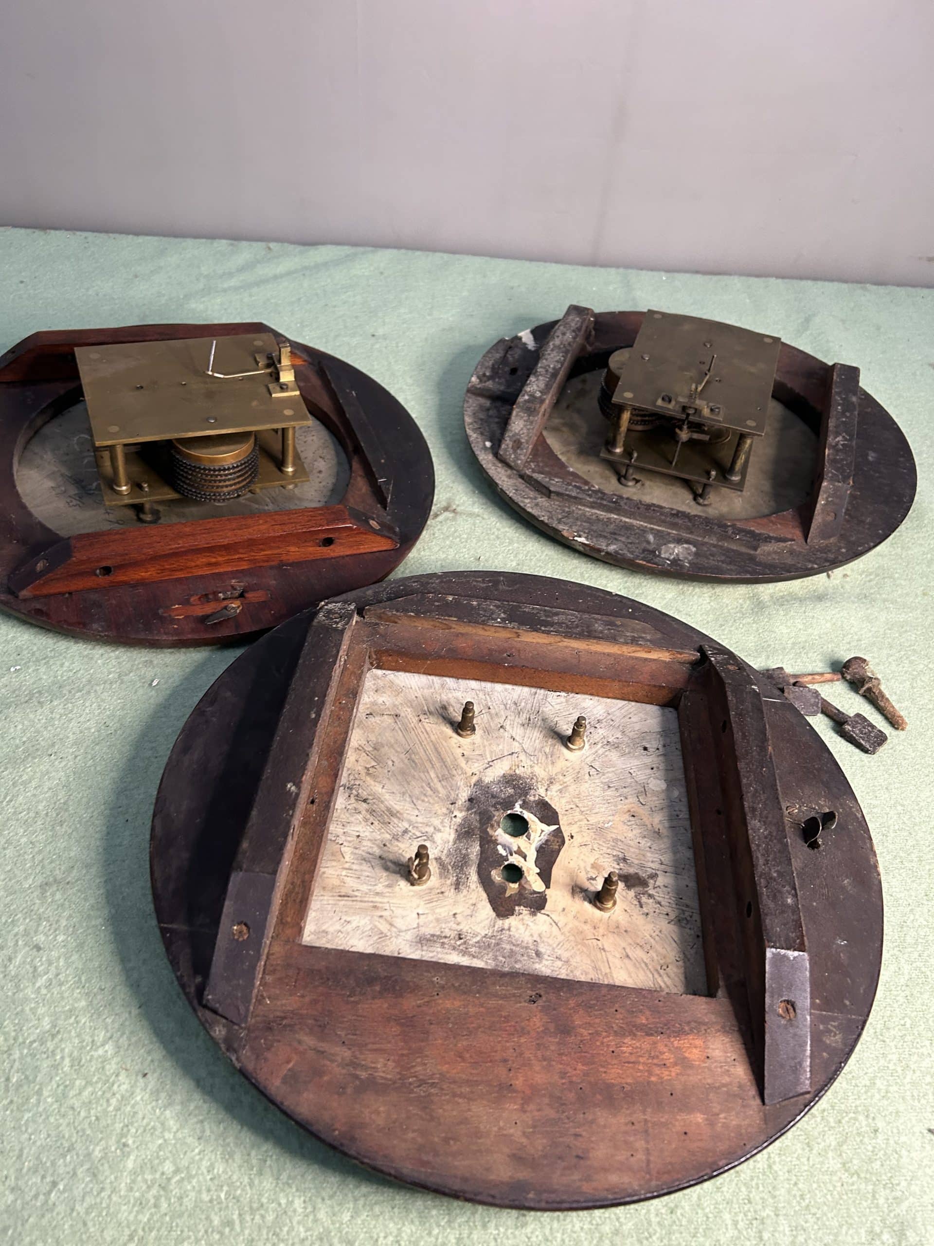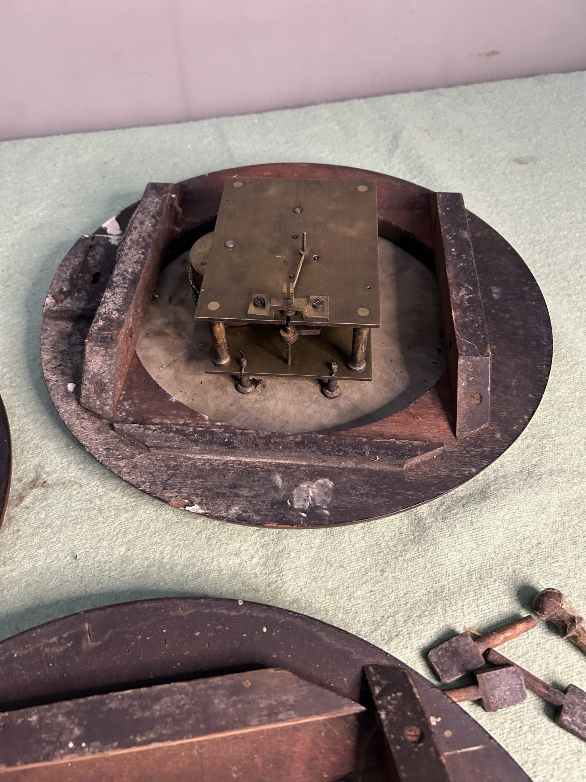 Tilly’s Auction (Part 2)| Item description: | Three Antique English dial wooden wall clocks untested and in varying state of repair as seen in the photos |