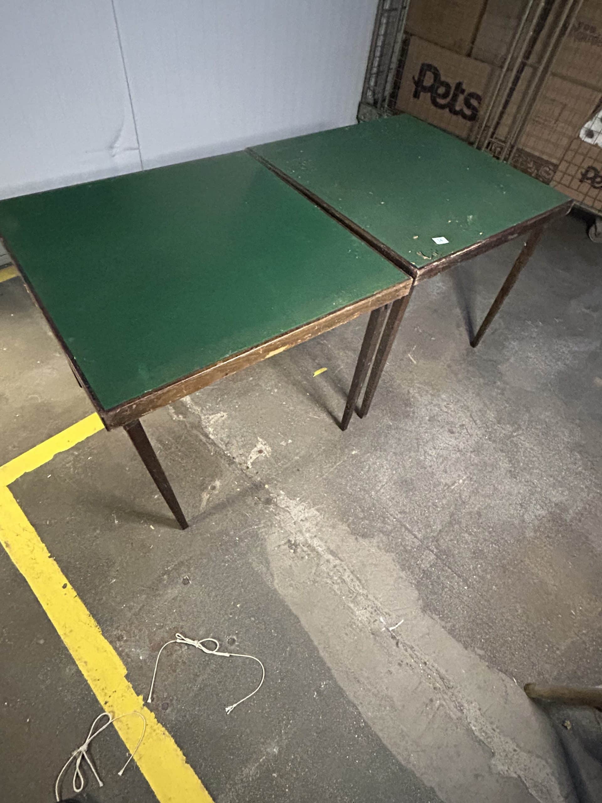 Pair of card tables in used condition one in fair condition the other would need green felt replacing as can be seen in the photos size approx 30” square