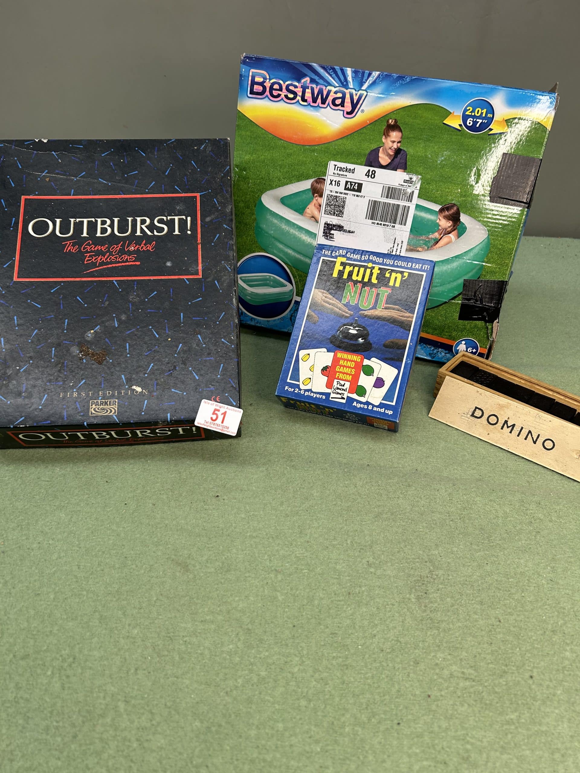 Paddling pool, outburst, Fruit n Nut game and Dominoes