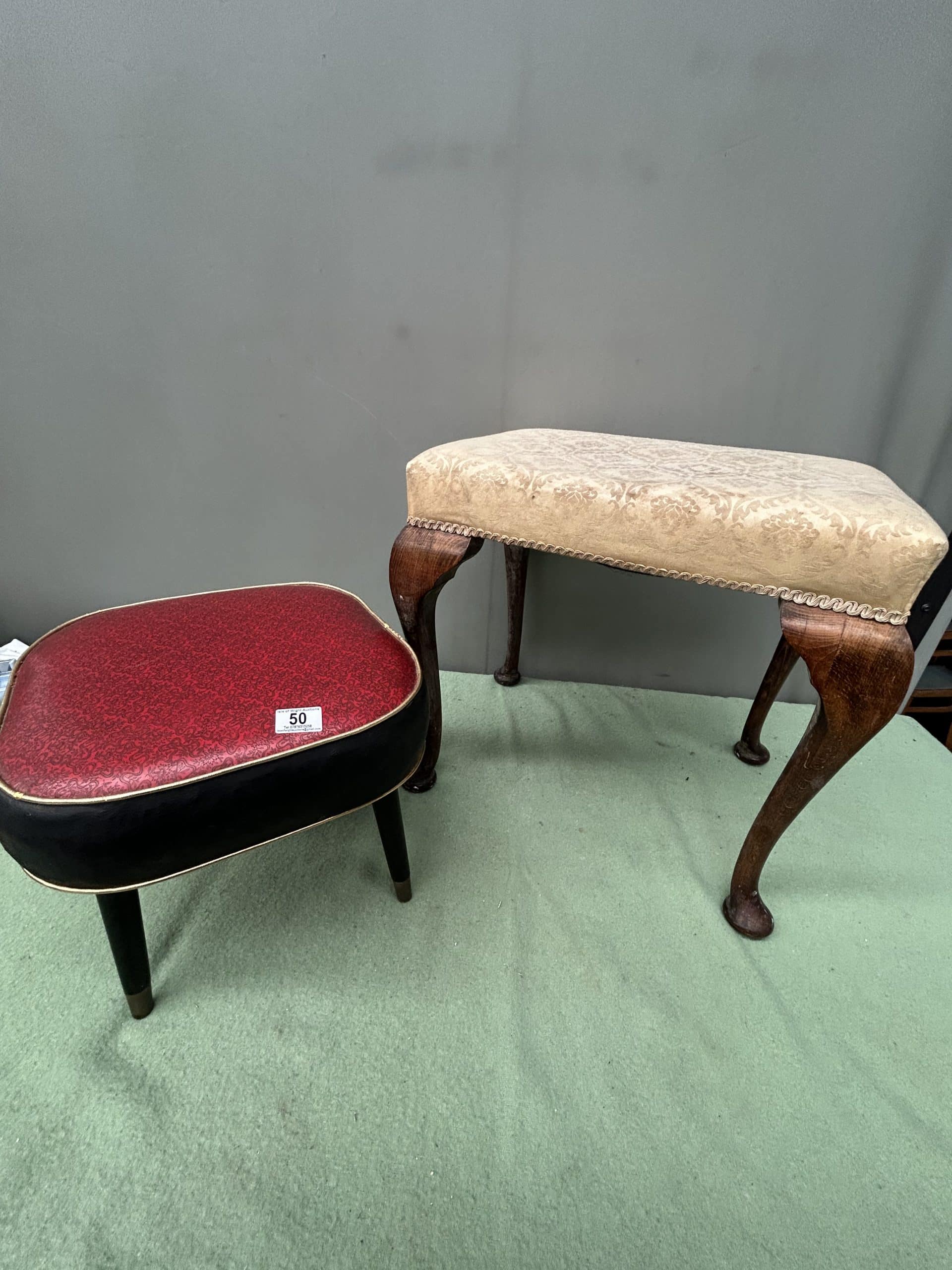 Two foot stools, one retro vinyl pouffe type and one dressing table stool