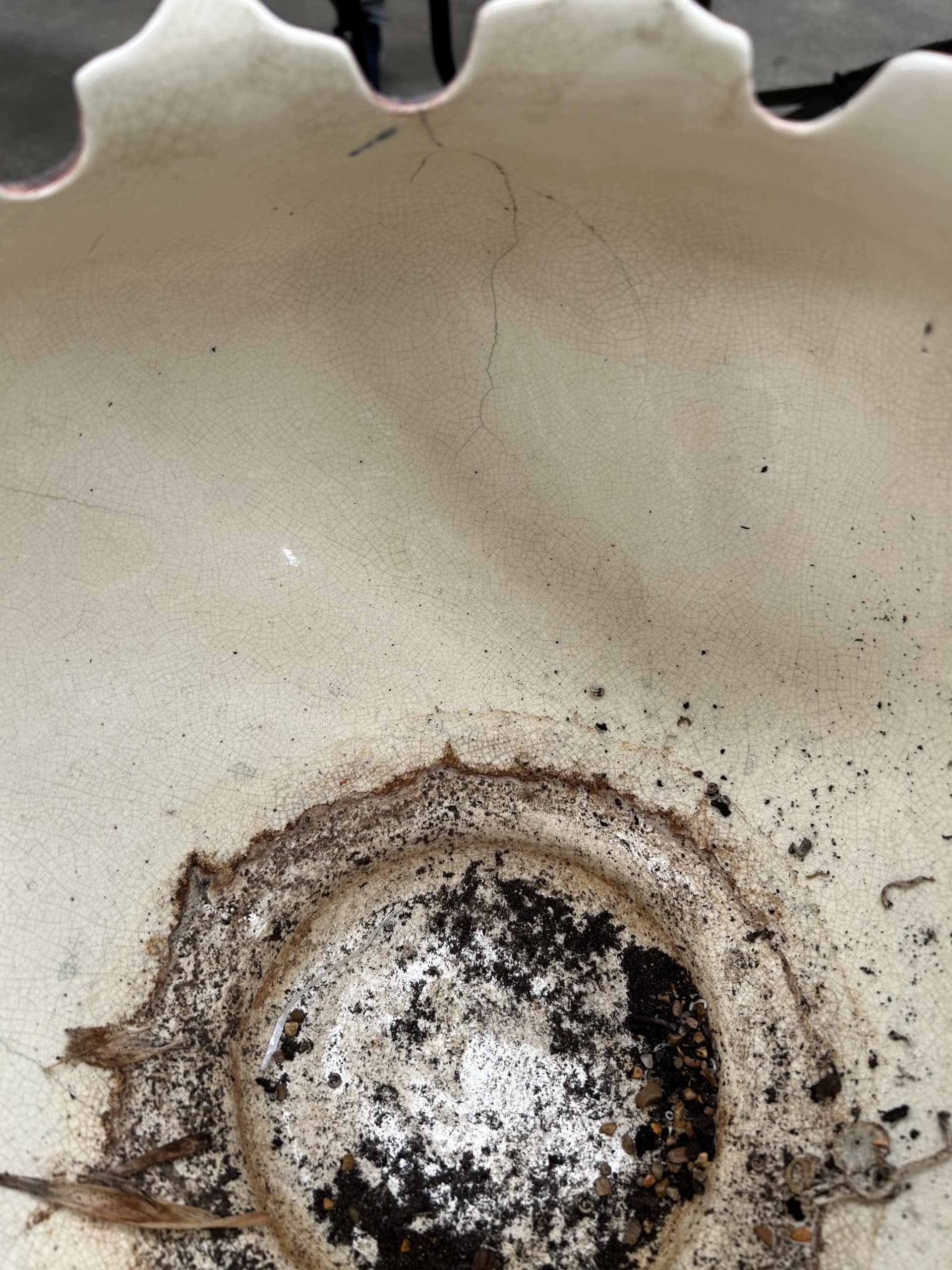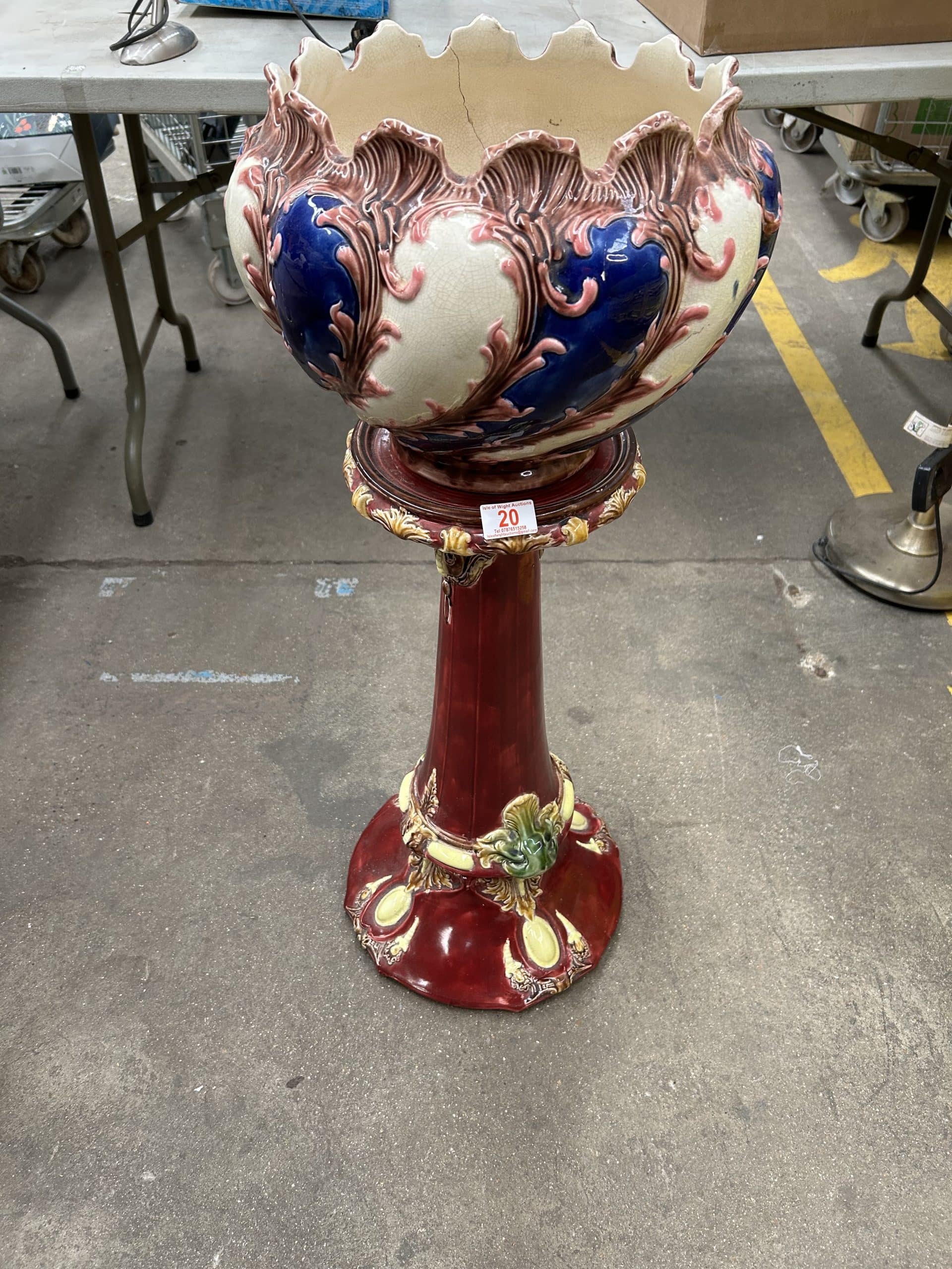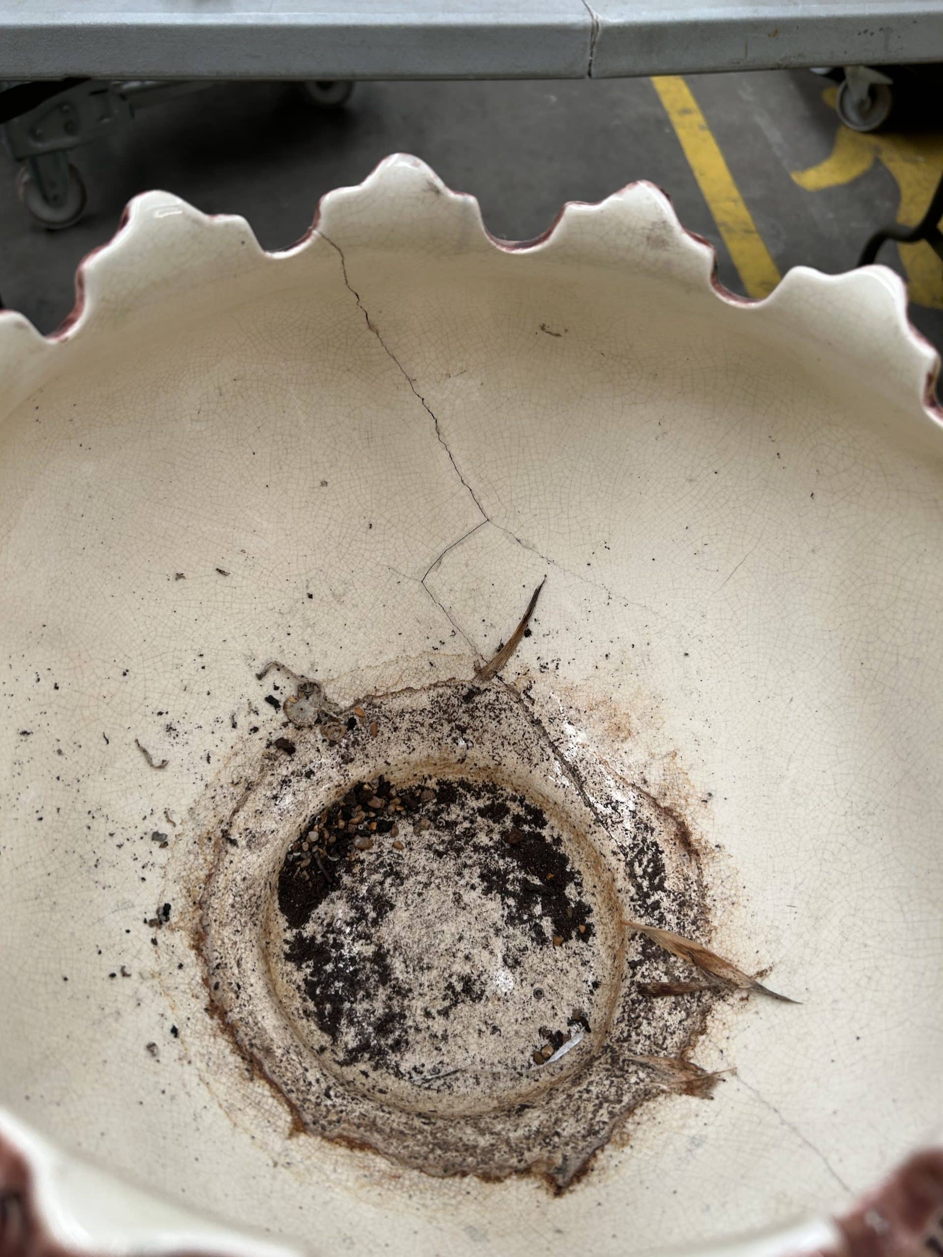 Jardiniere and pot this is a marriage they don’t match cracks inside the pot but intact