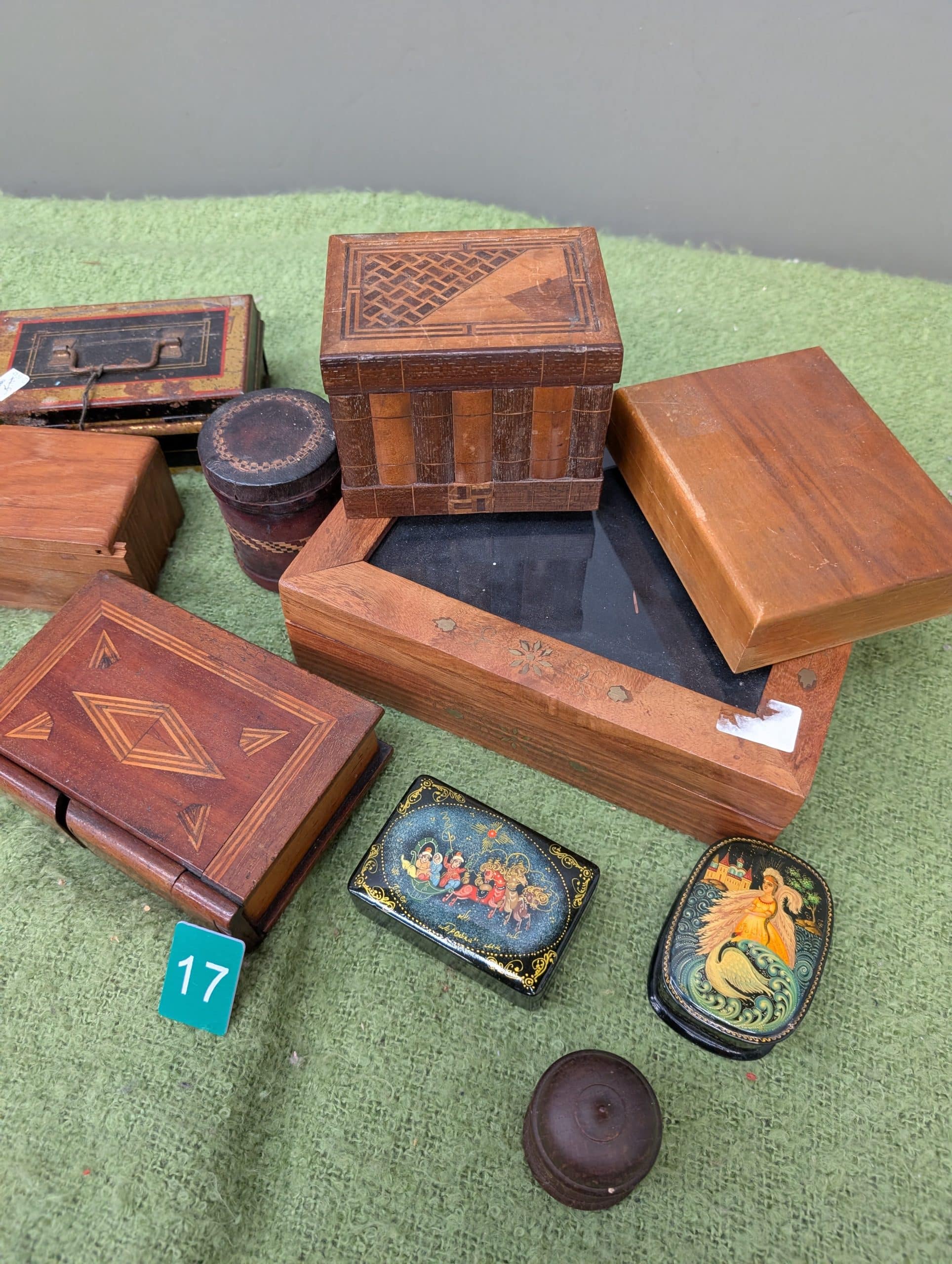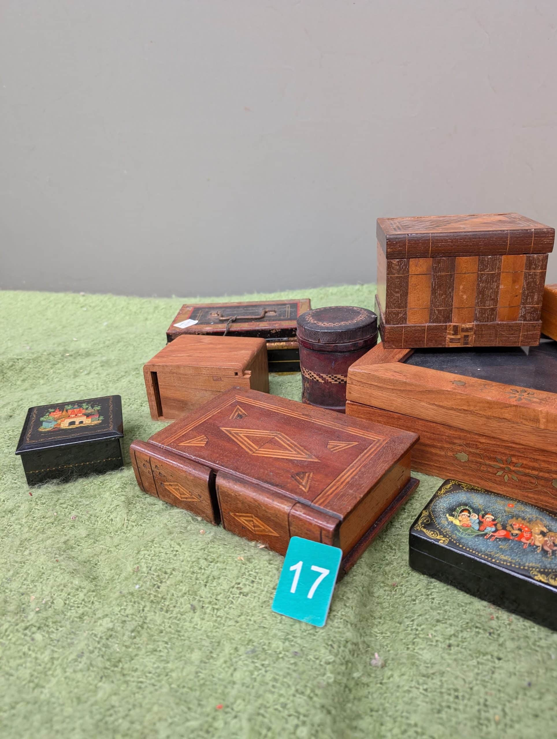 En-e-Va Encore| Item description: | A collection of assorted wooden boxes. |