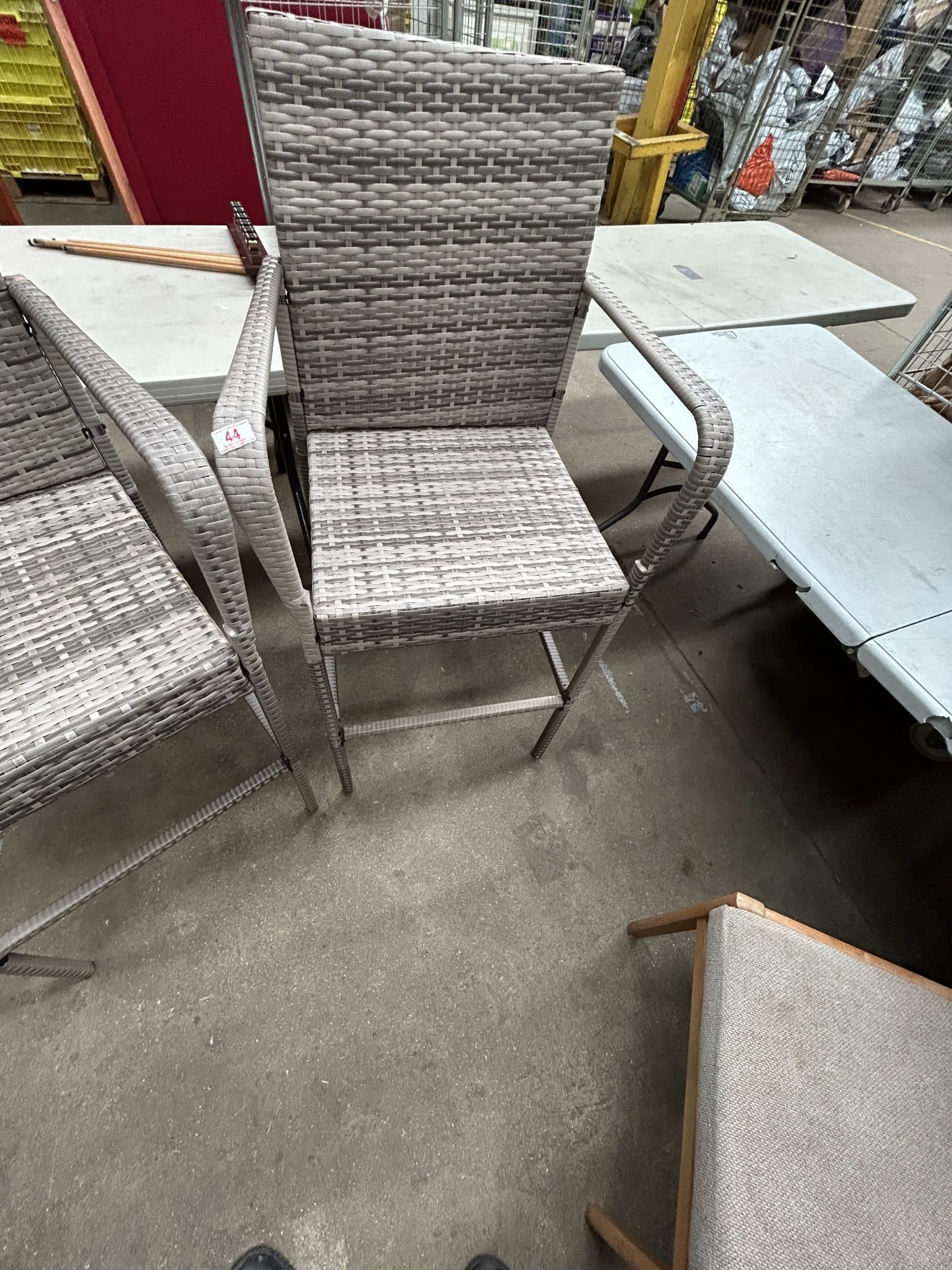 Downsizing Auction| Item description: | Pair of high backed garden bar stools weave in good order |