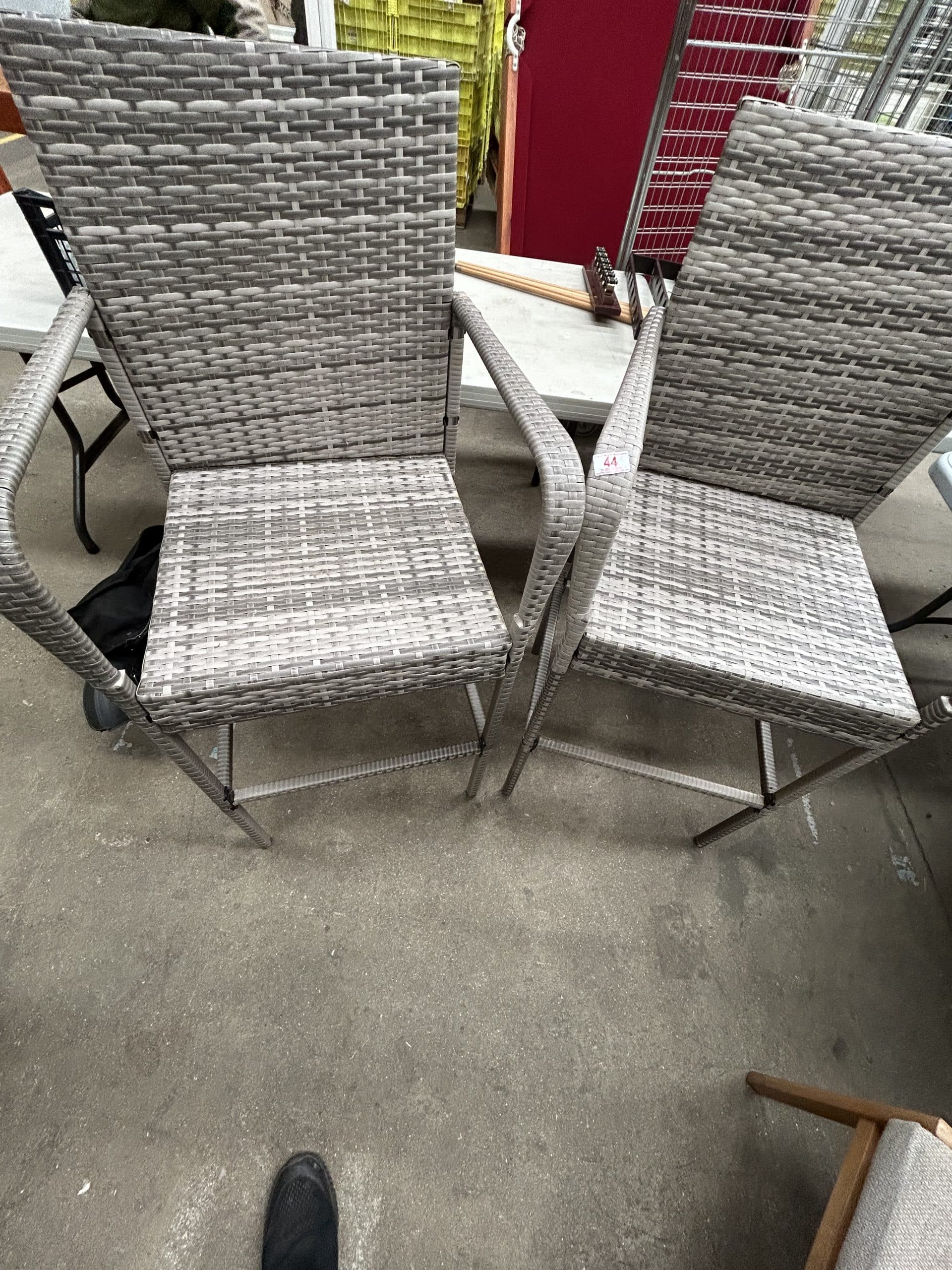 Downsizing Auction| Item description: | Pair of high backed garden bar stools weave in good order |