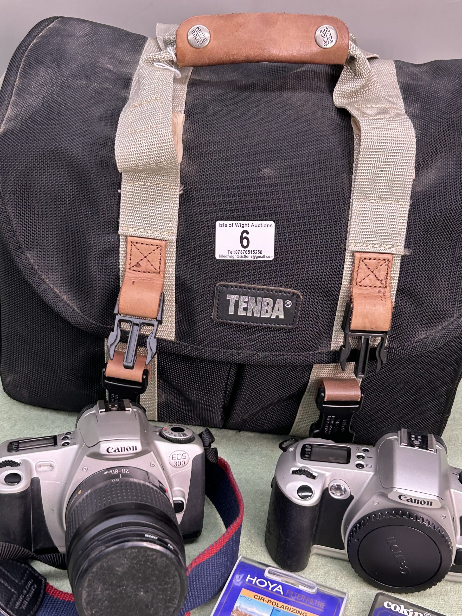 Gillian’s Auction| Item description: | Canon Camera set up includes carry bag two canon cameras plus filters |