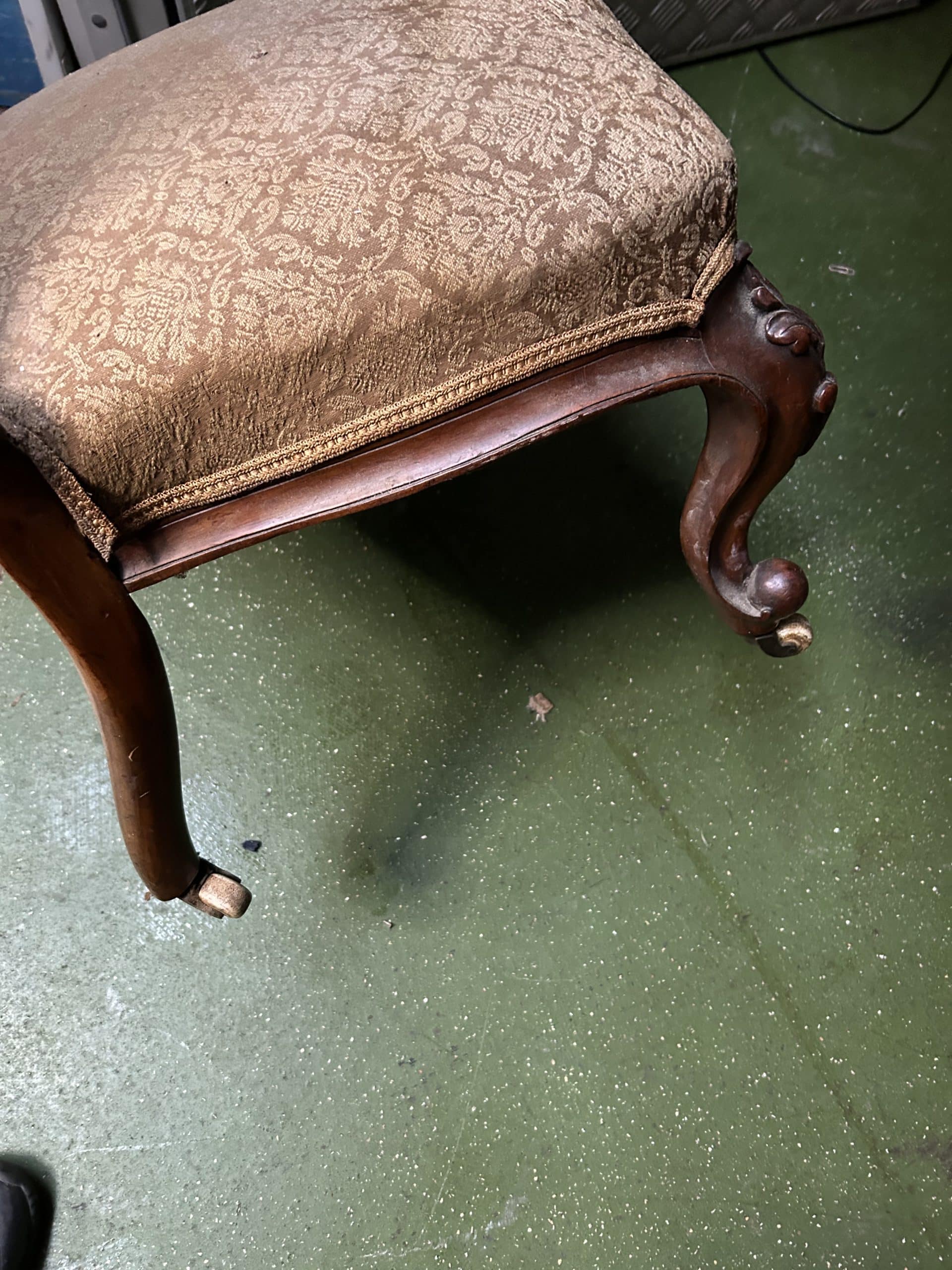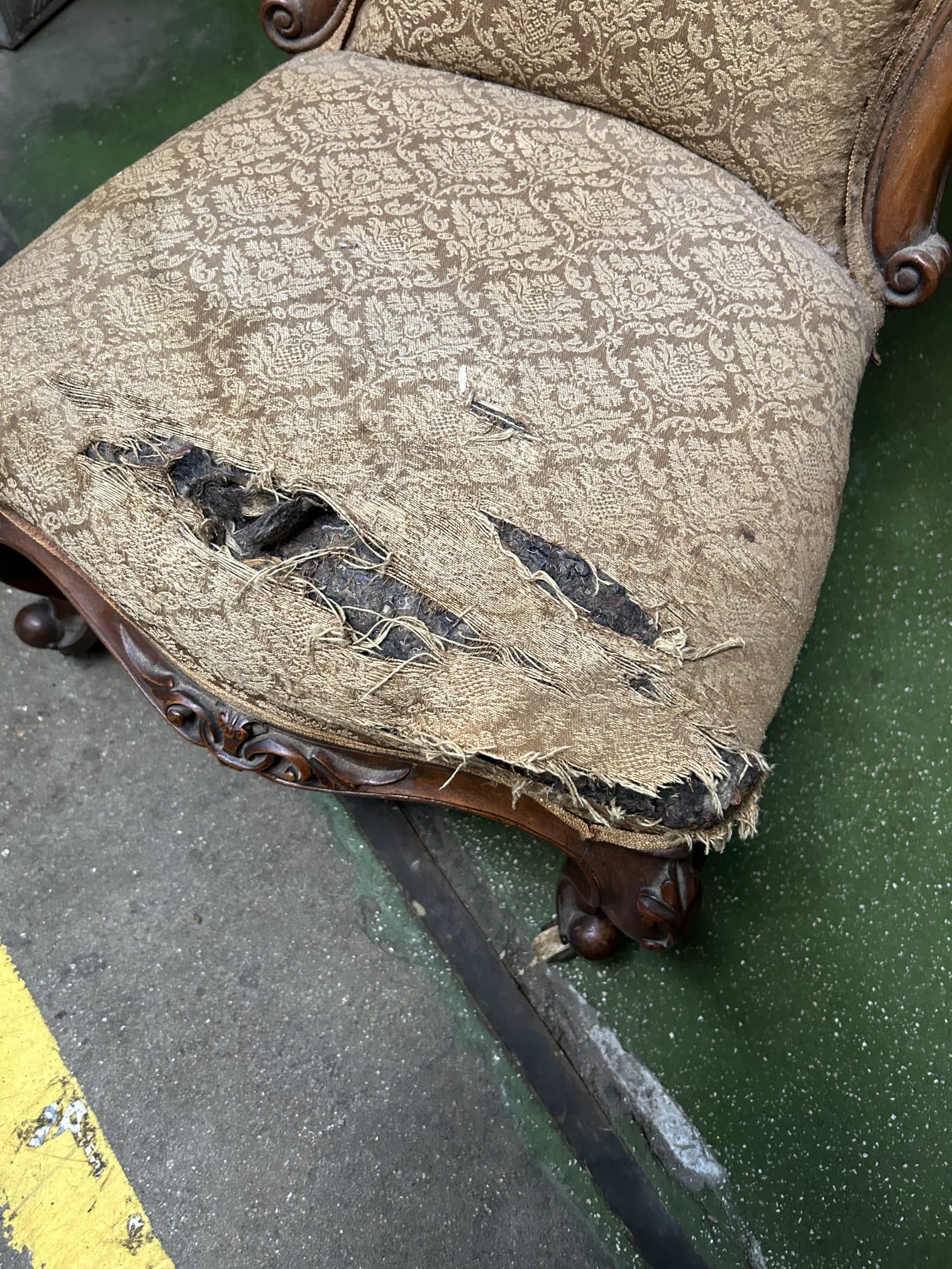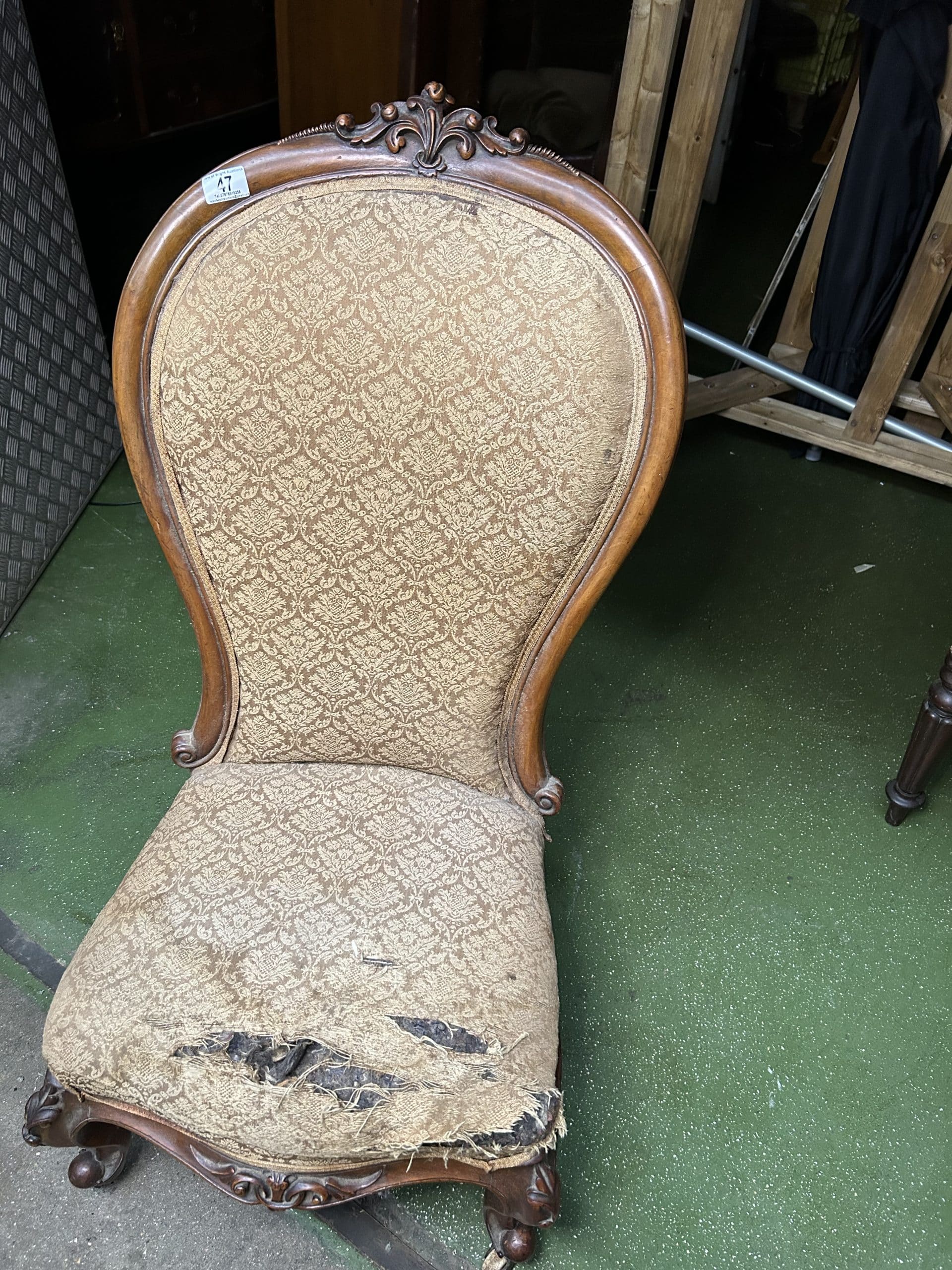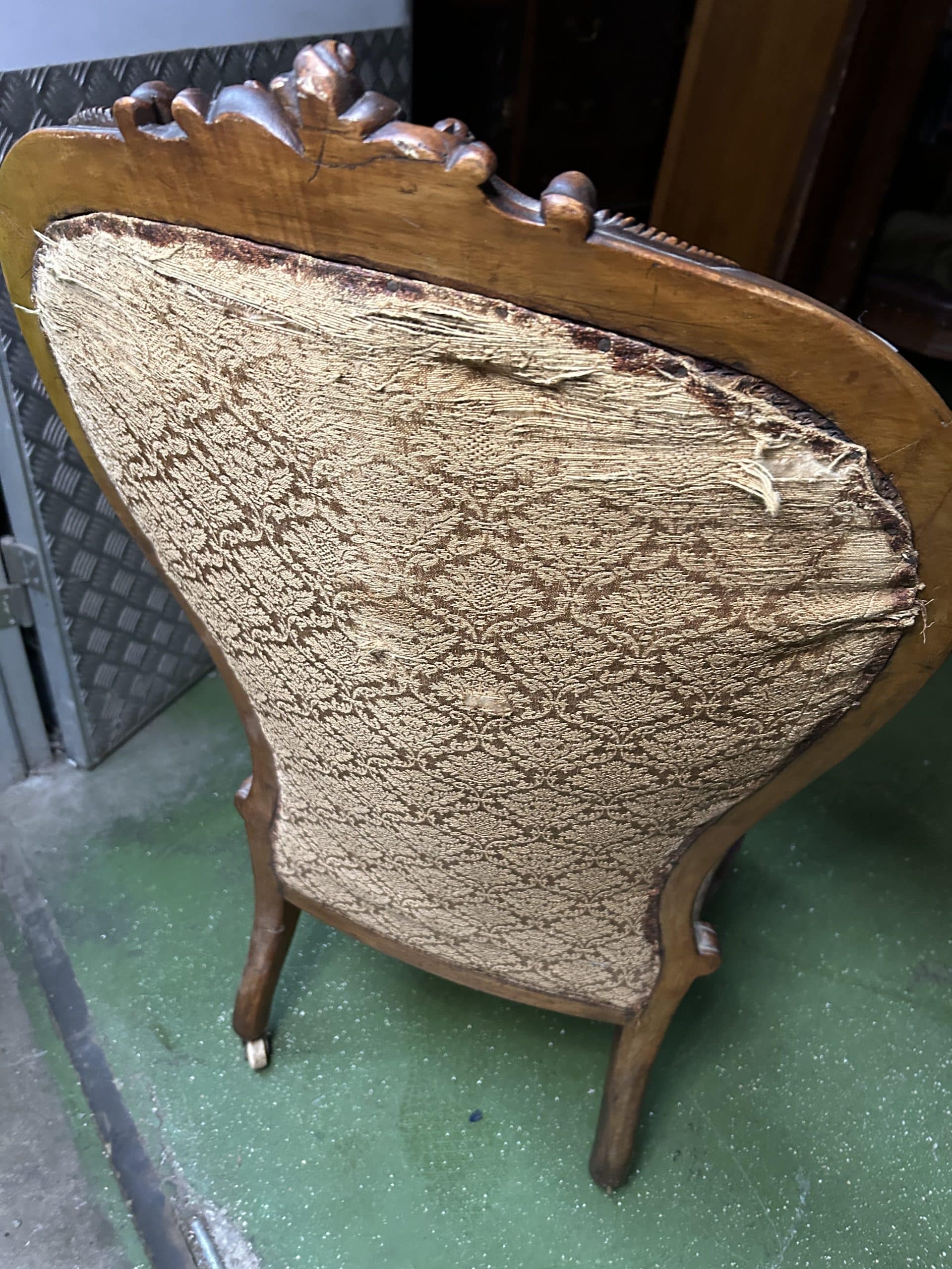 Victorian era nursing or bedroom chair, solid walnut frame with carved detail, but requires recovering great project