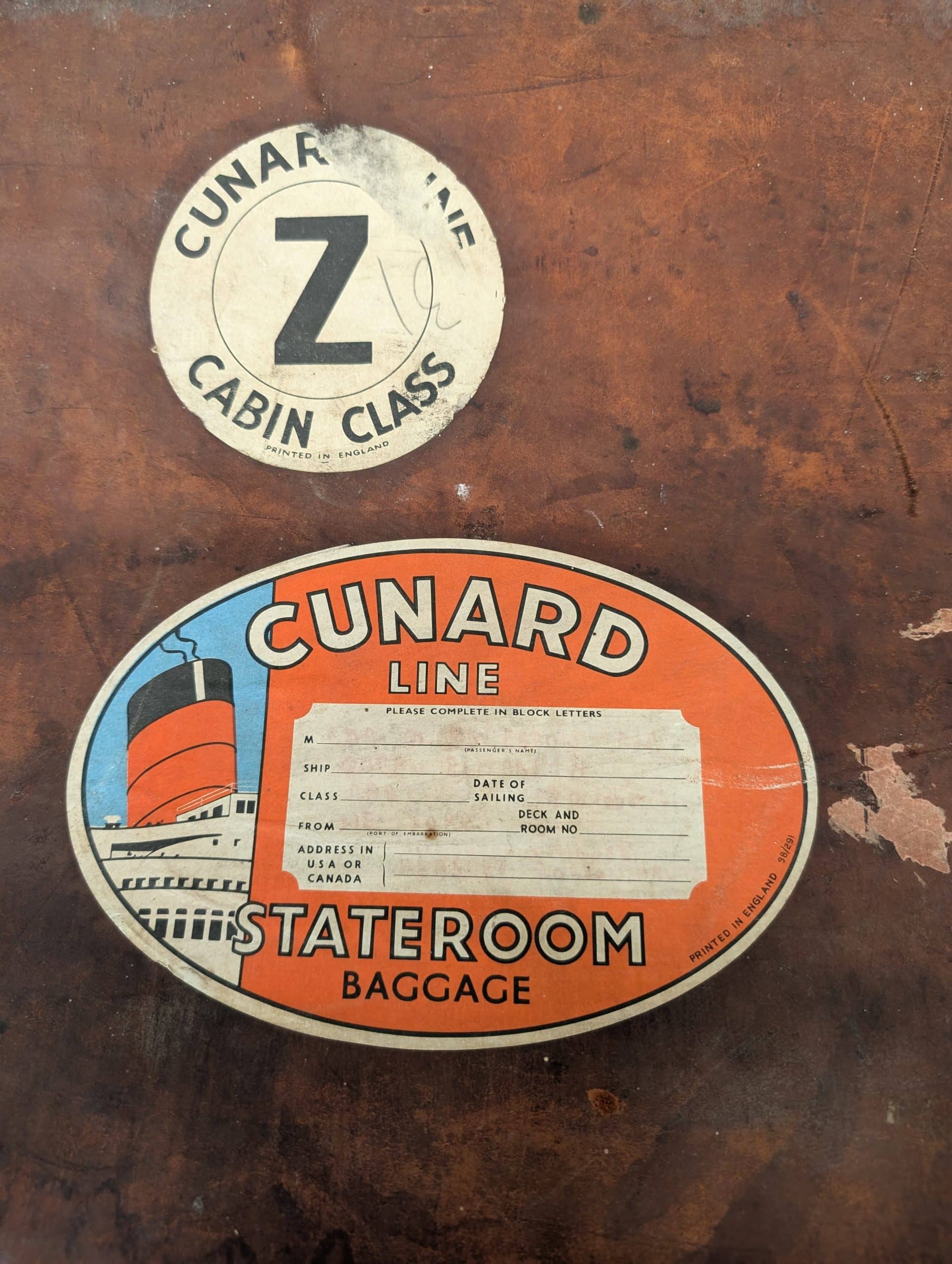 The Last Auction of 2025| Item description: | A vintage suitcase with Cunard stickers and a Cunard glass sign. |