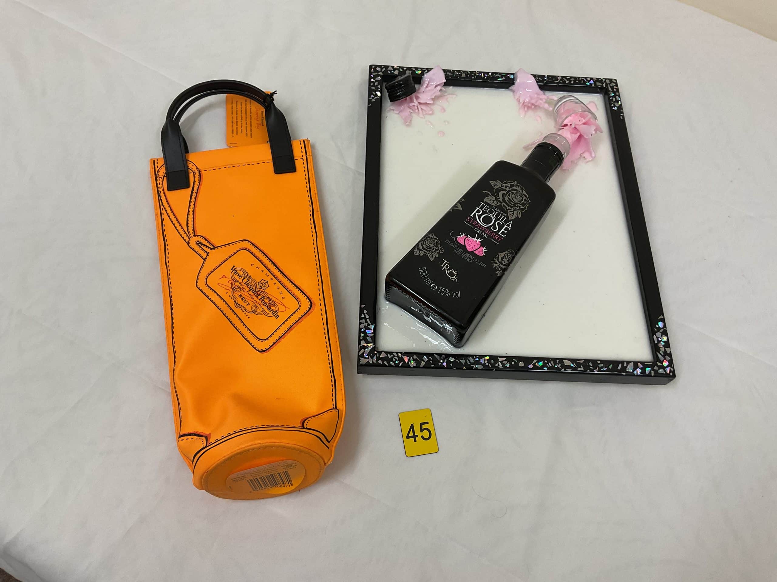 Sam’s Auction| Item description: | Canvas champagne cooler and tequila rose framed bottle |