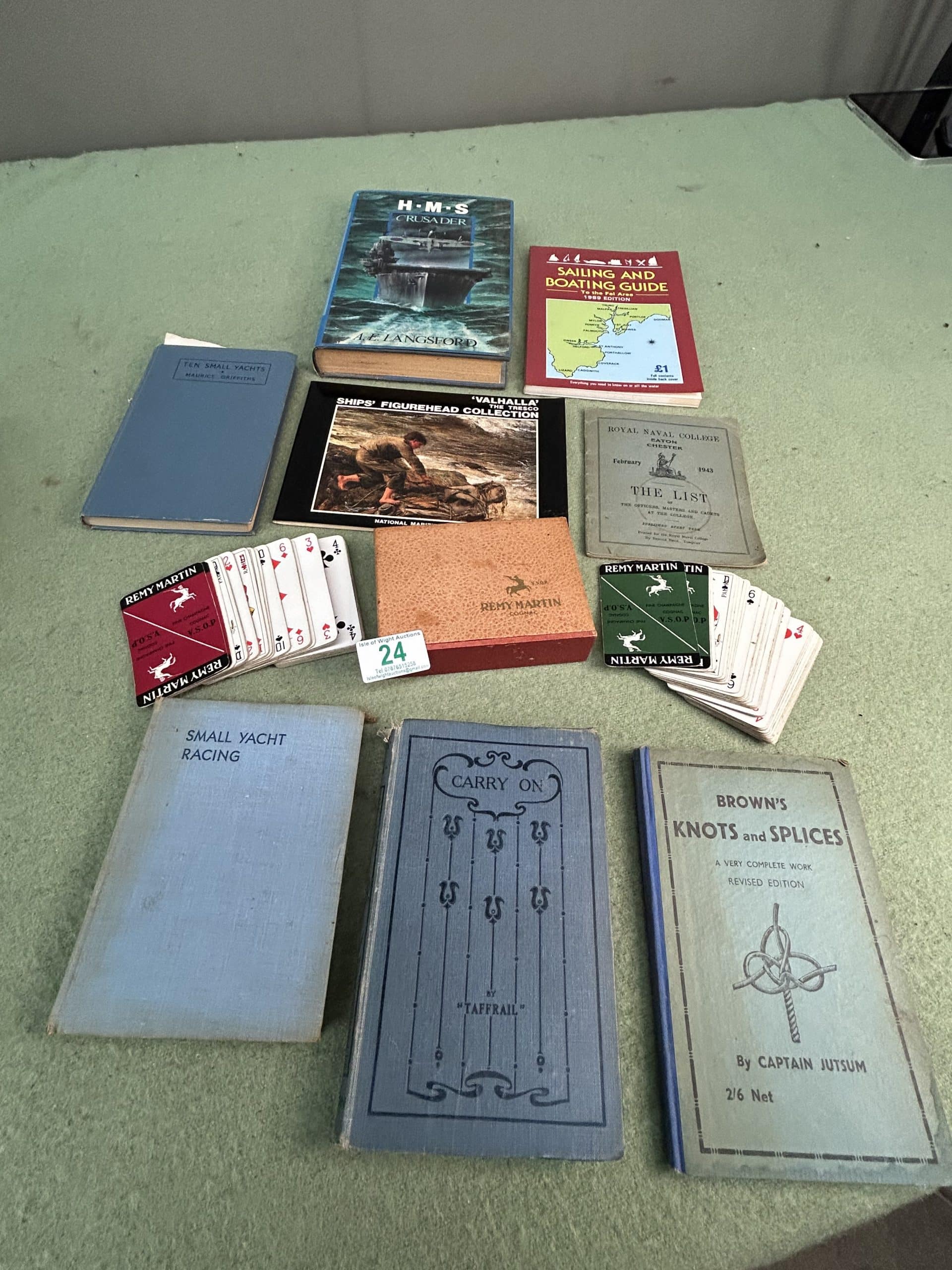 Wren Auction (part two)| Item description: | Mixed Lot of yachting, navy, sailing books, knots and splices along with 2 sets of Collectable retro branded Remy Martin playing cards in case |