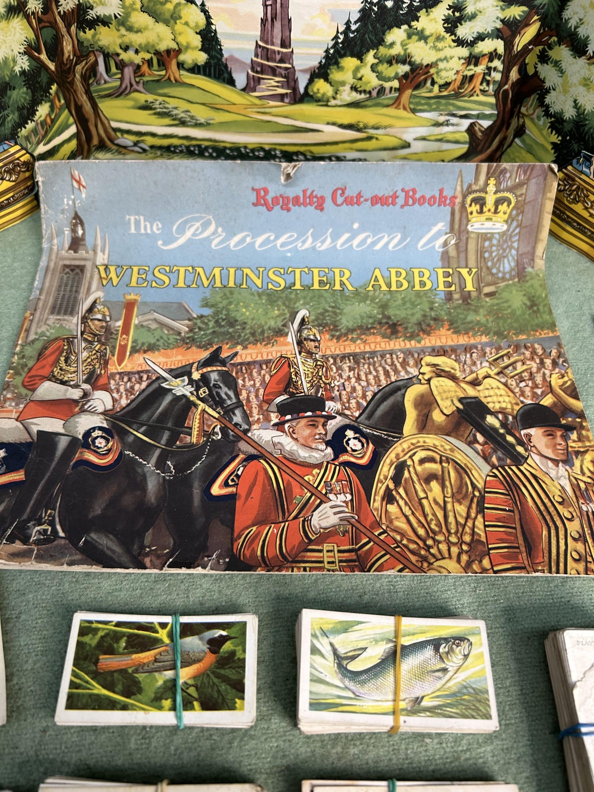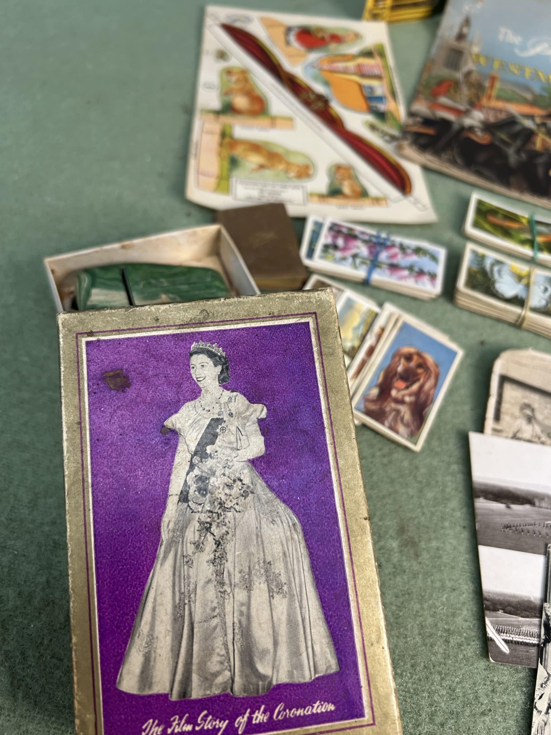JTA Auction| Item description: | Mixed lot of cigarette card sets, photos of the Queen, slide viewer etc |