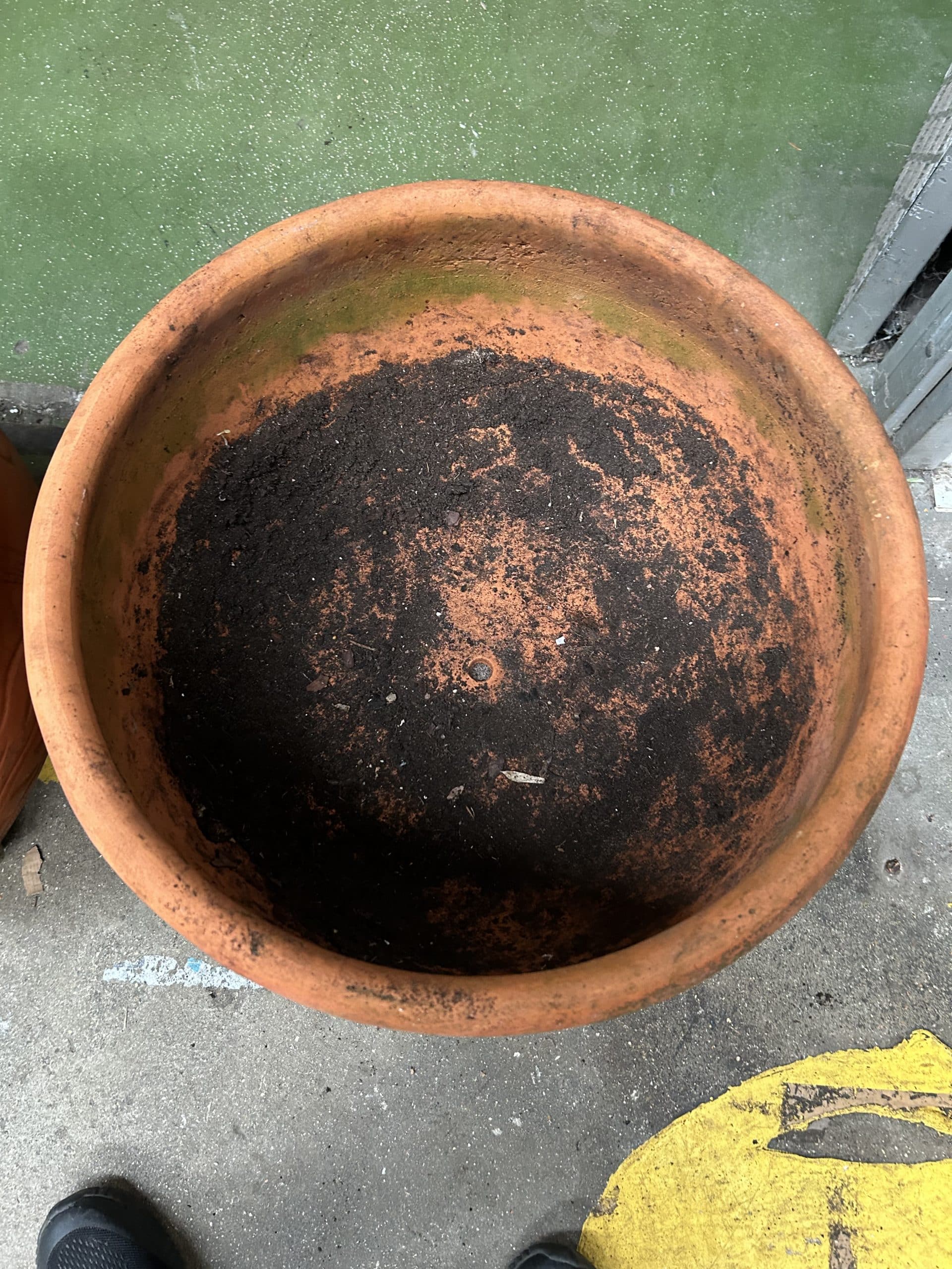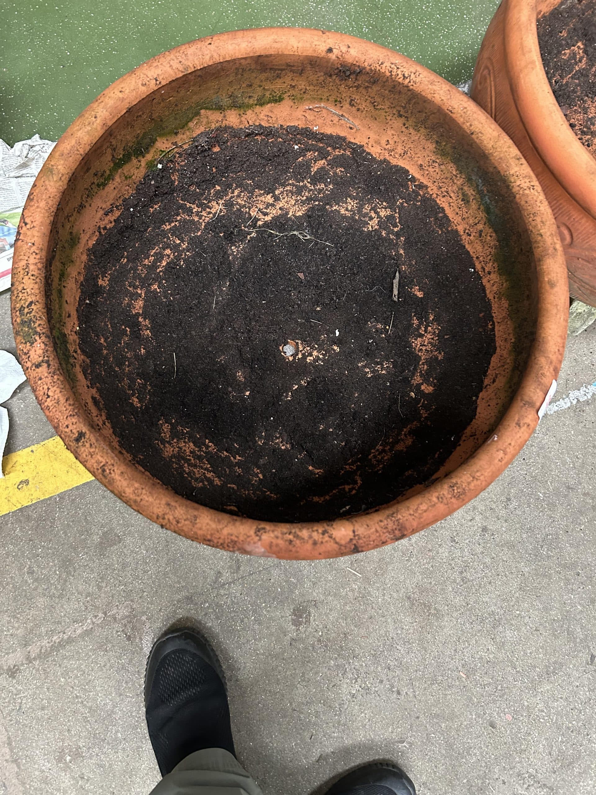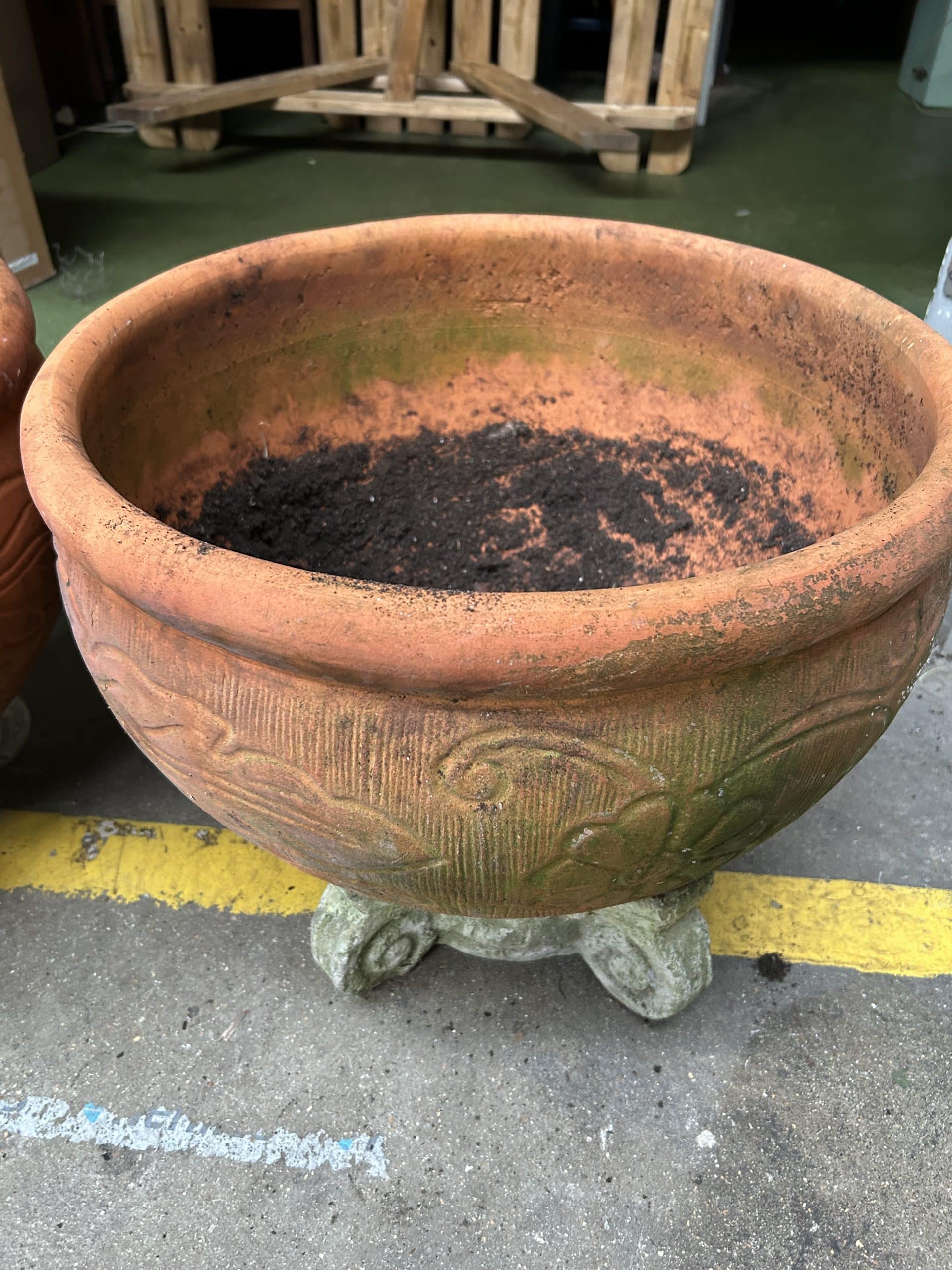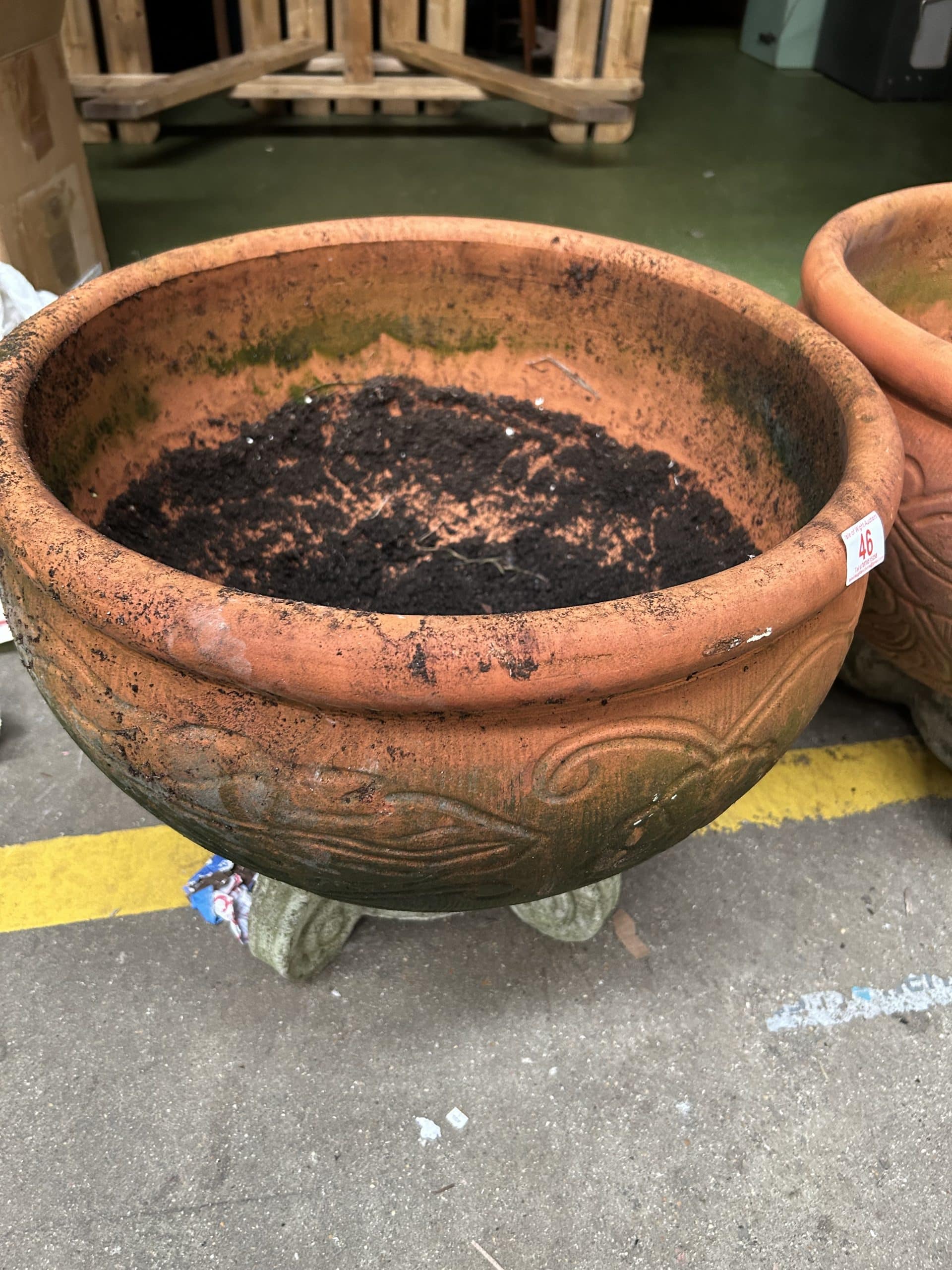 Tilly’s Auction ( part 1)| Item description: | A pair of very nice large terracotta pots with concrete plinths no damage to the pots very heavy |
