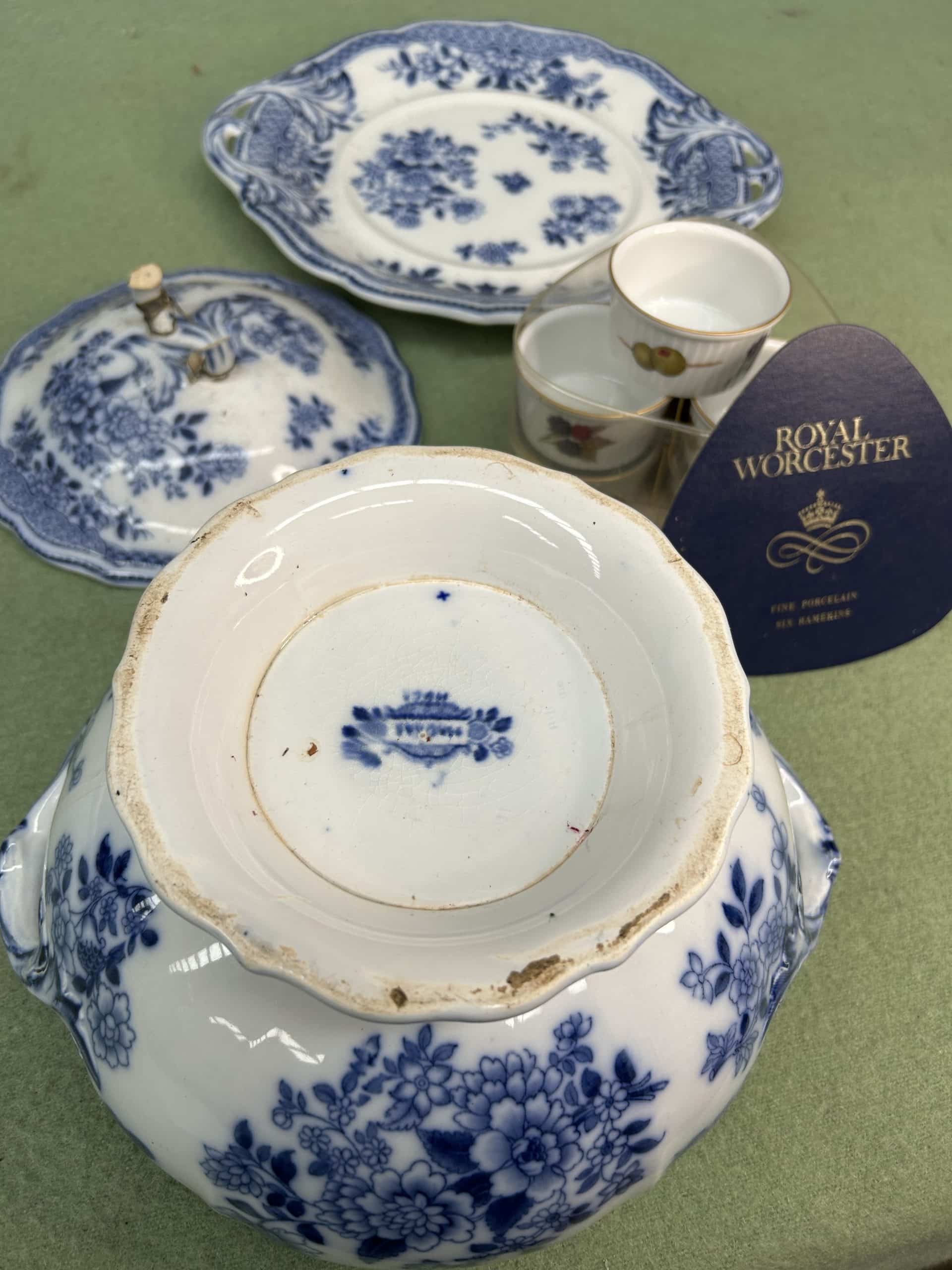 Wren Auction (Part One)| Item description: | Ceramic lot includes large tureen & dish, lid has damage to the handle on top (see photo) set of six Royal Worcester ramekins |