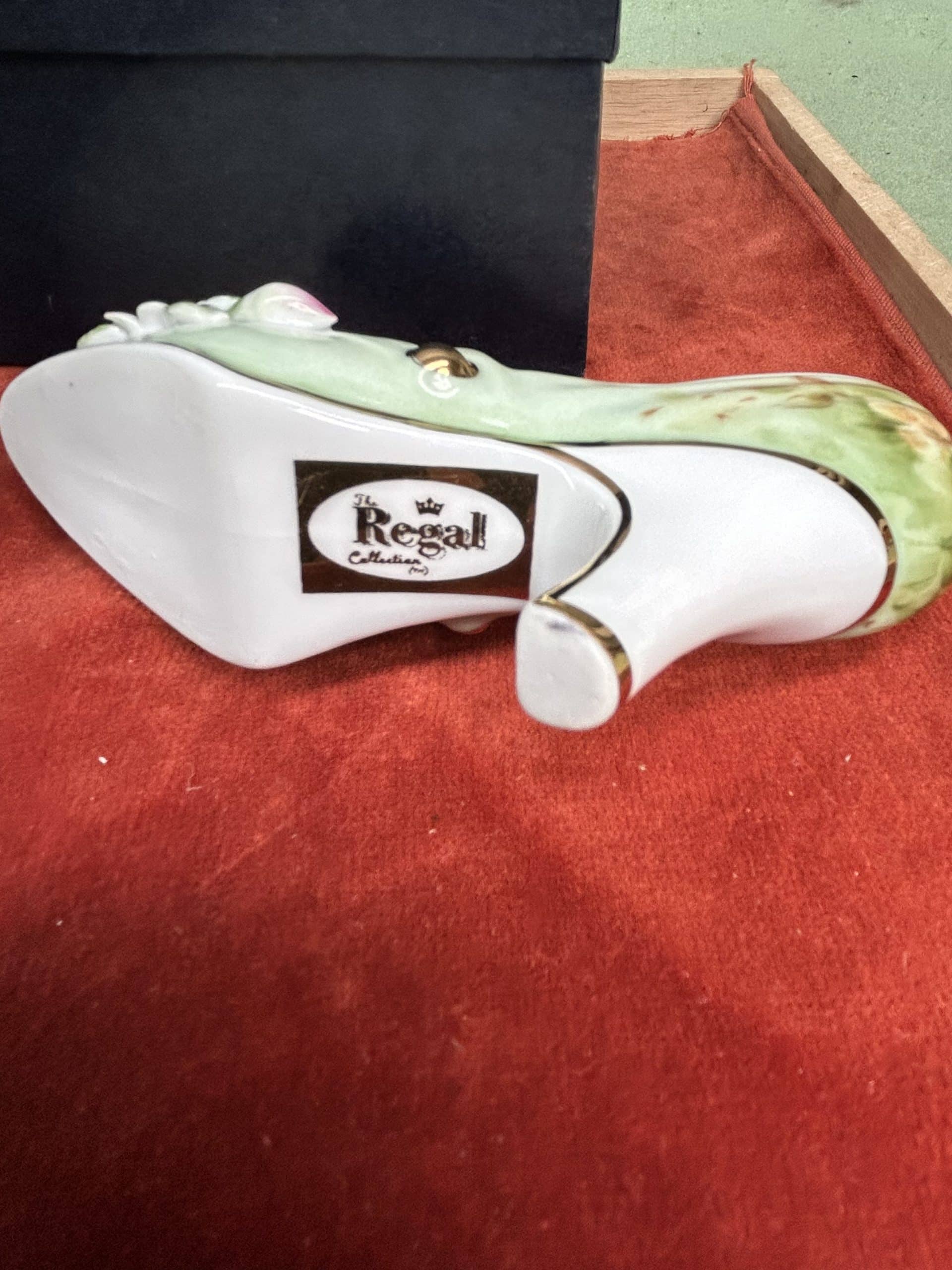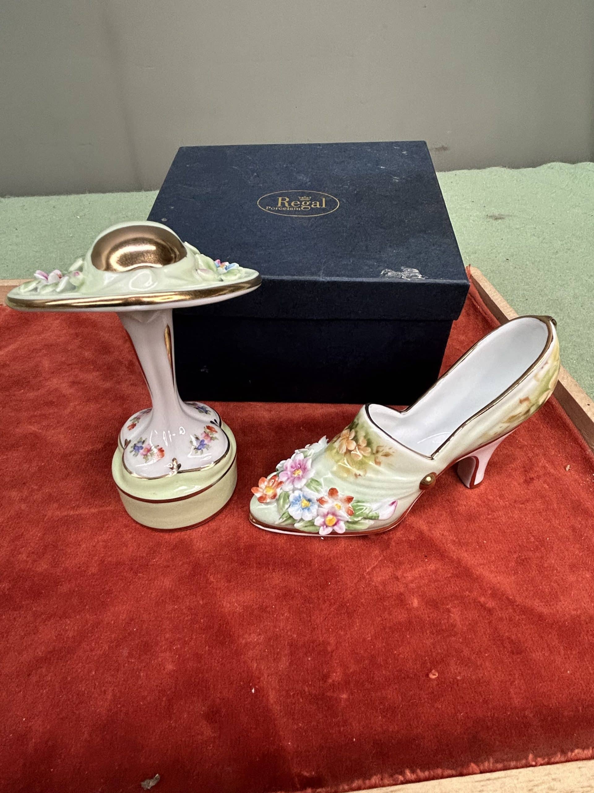 C & E Auction| Item description: | Regal Porcelain collectible set includes decorative floral shoe and matching hat shaped stand in original box |