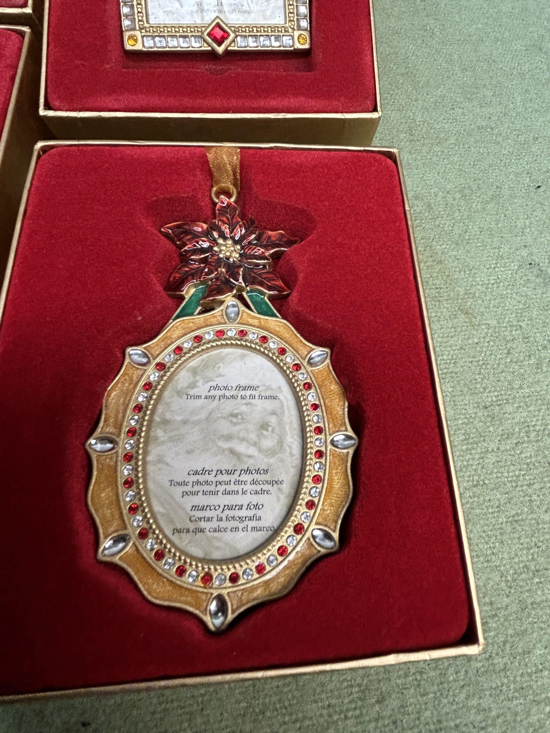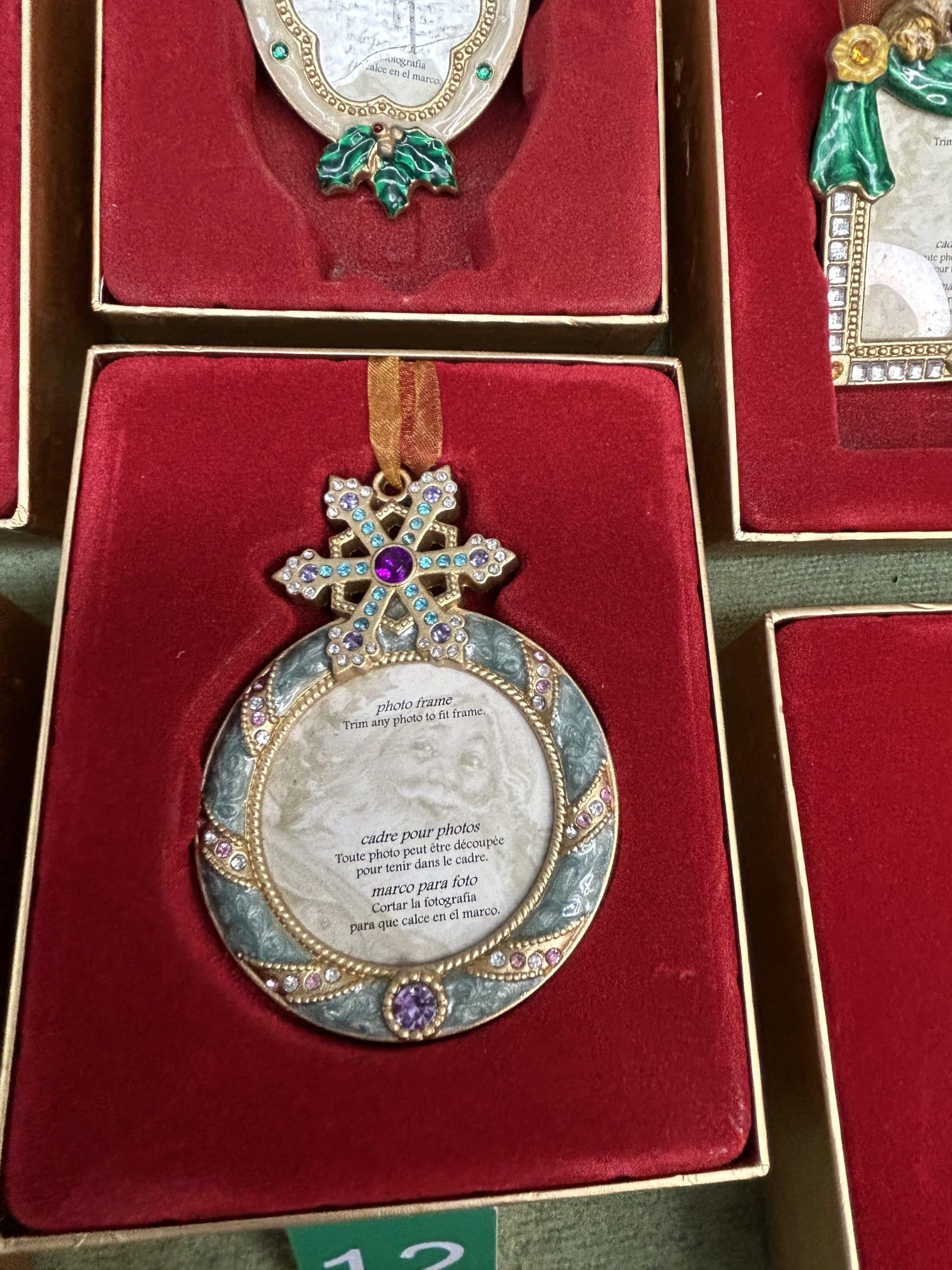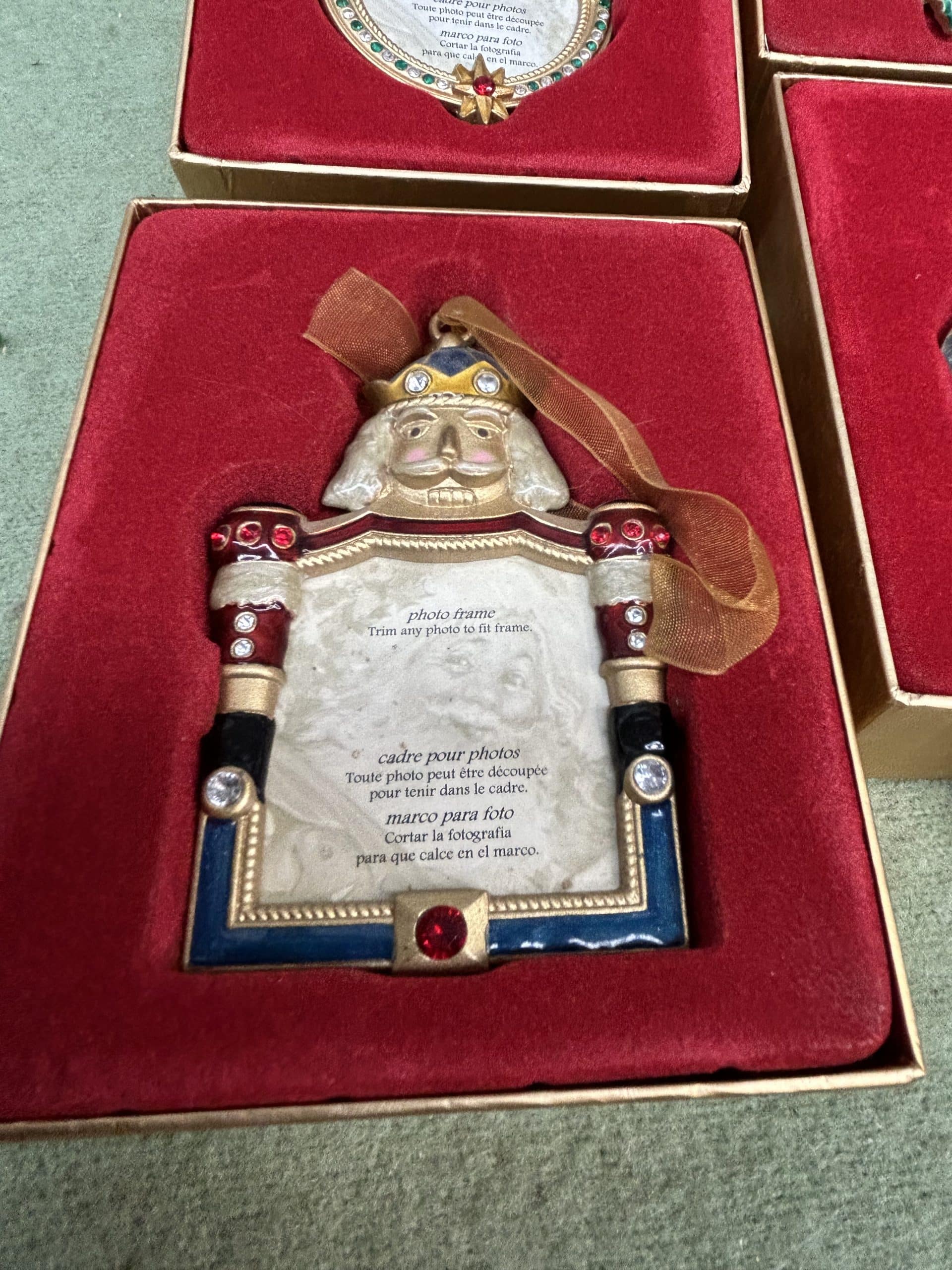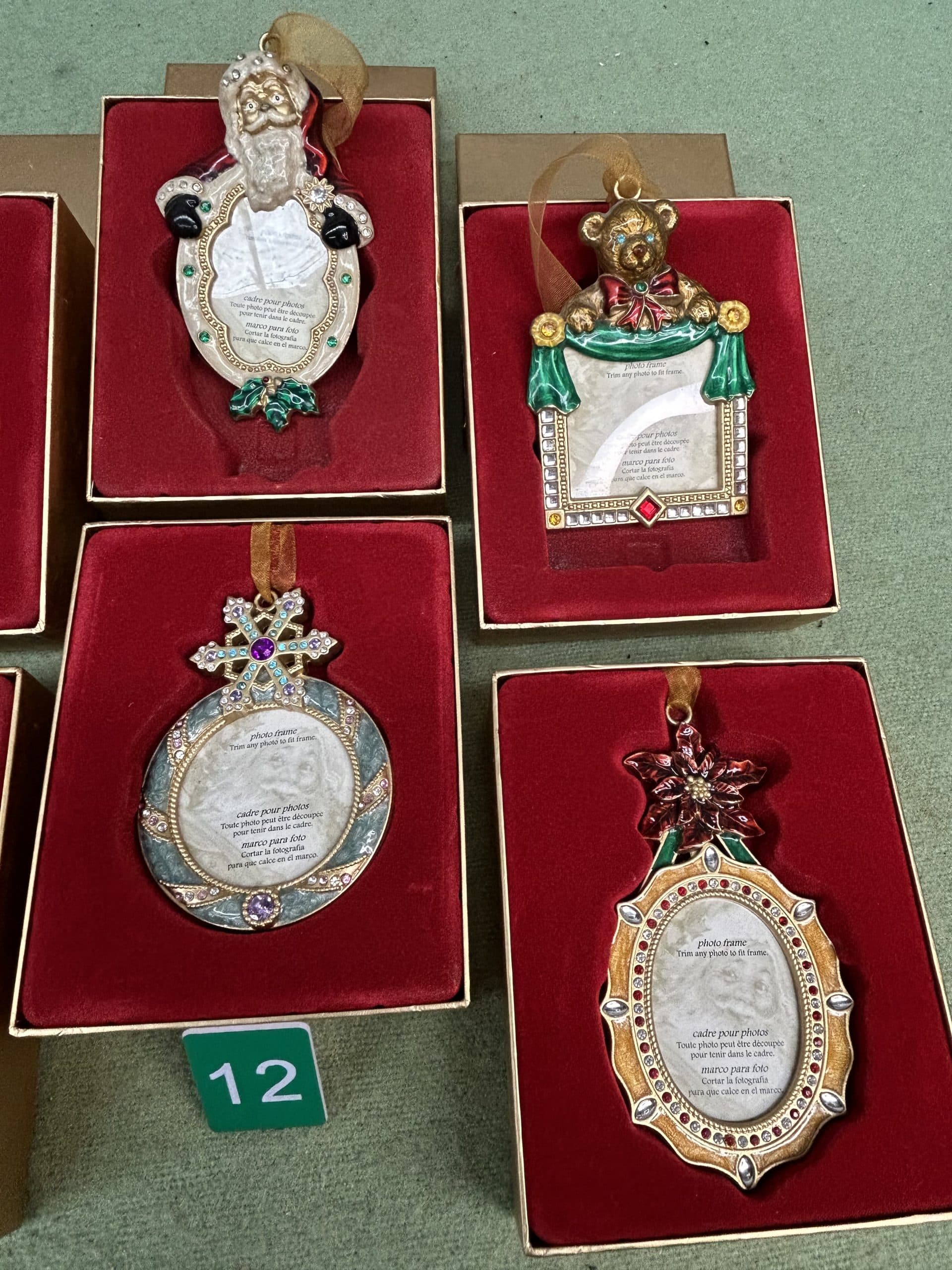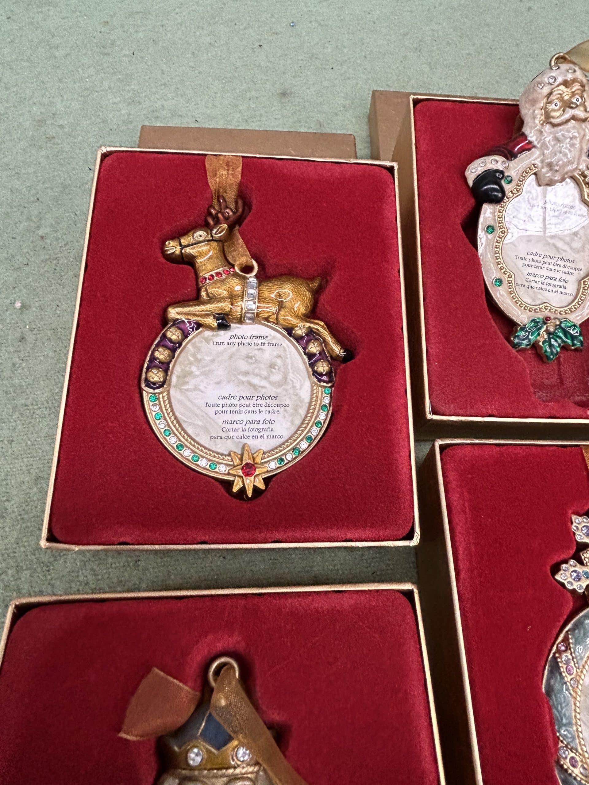 C & E Auction| Item description: | Vintage Collectable Christmas tree ornaments featuring different festive figures with space for a special photo in each one all boxed and in good condition |