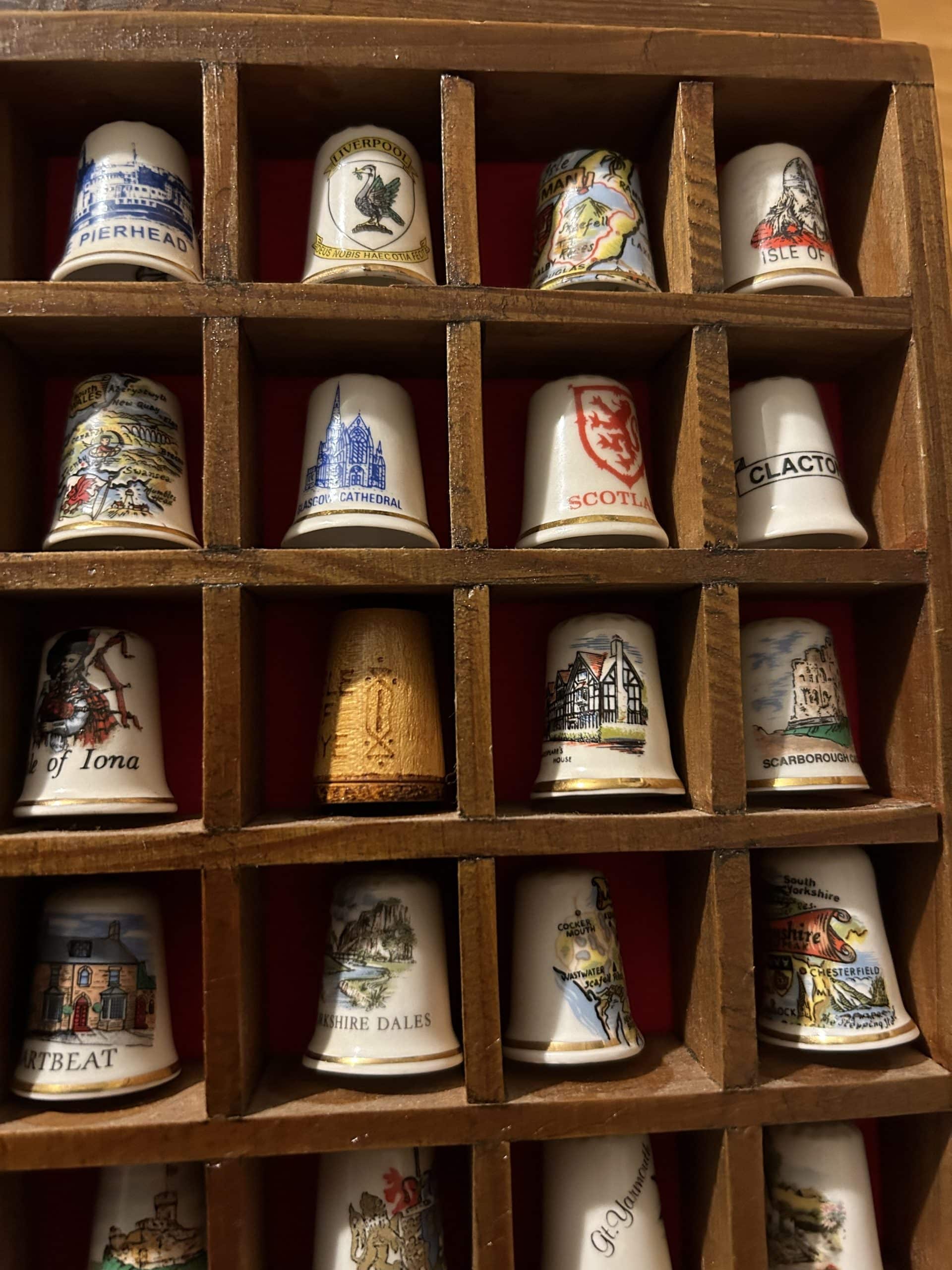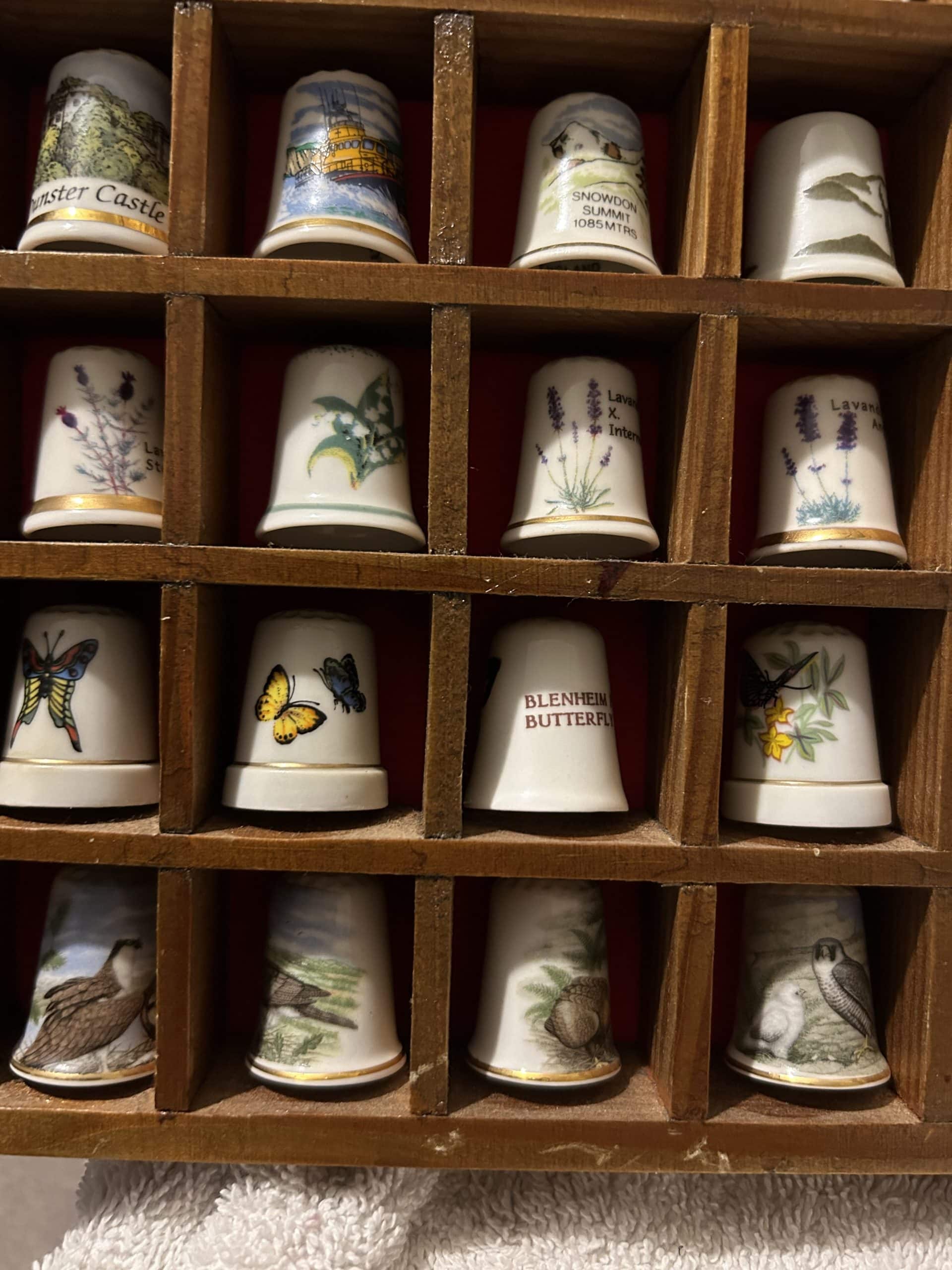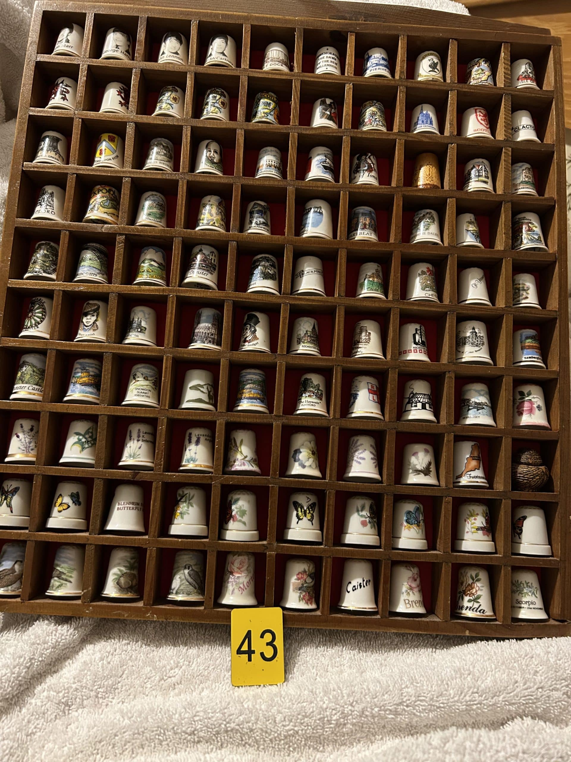 Random Numbers Auction| Item description: | Collection of 100 thimbles in a wooden display unit all kinds of subjects including the Beatles |