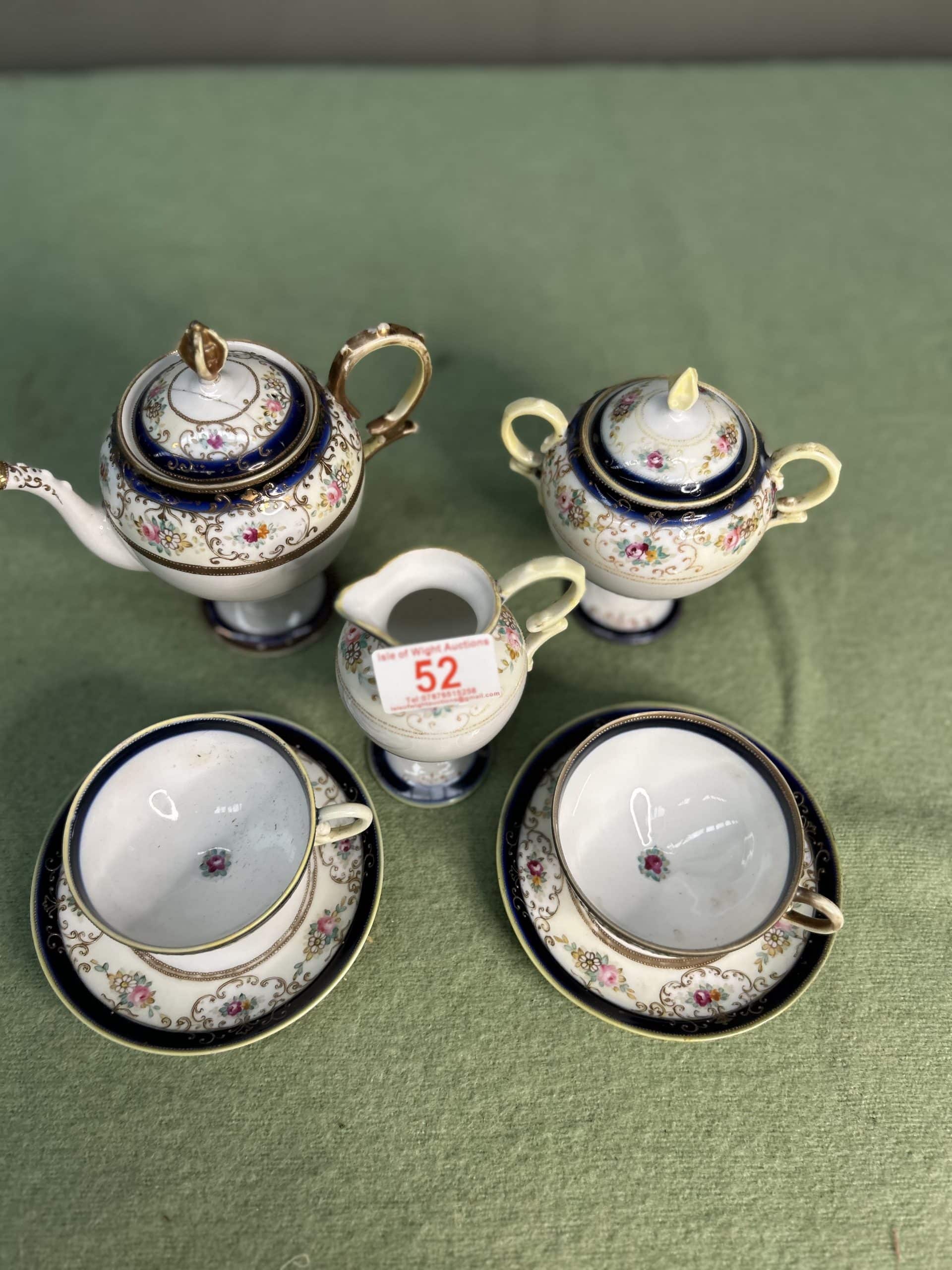 JTA Auction| Item description: | Oriental Tea Set includes teapot, sugar bowl with lid, creamer, two cups and two saucers marked Noritake, see photos for damage to teapot lid and a nibble on the spout |