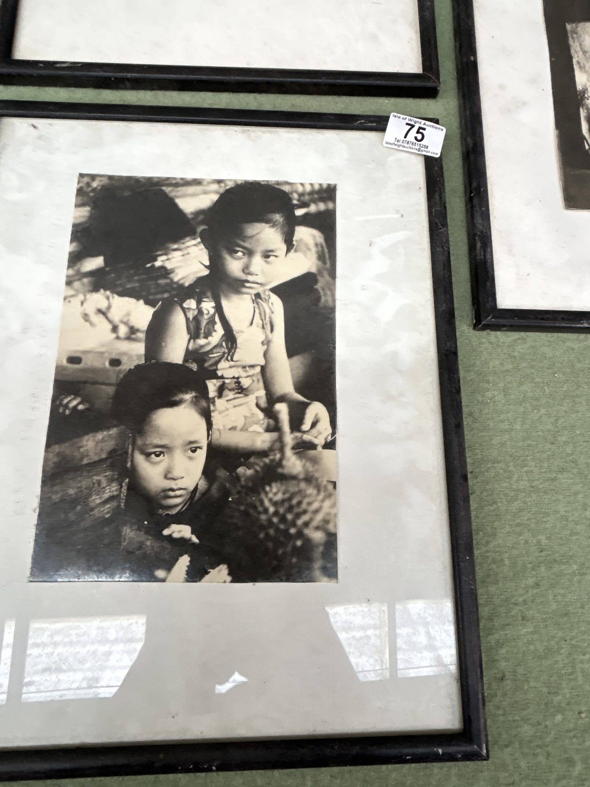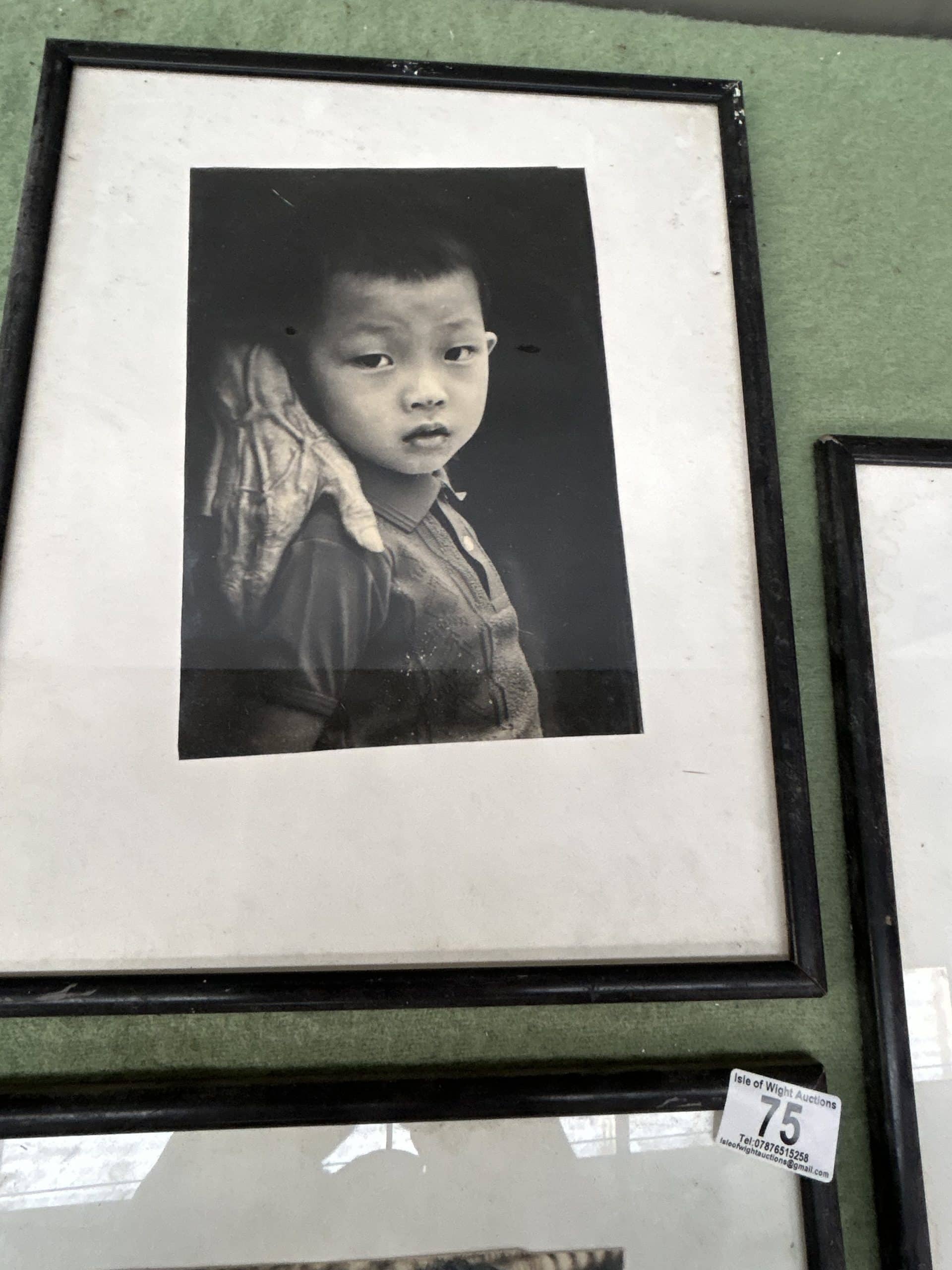 Three framed black & white documentary style photos approx 18” x 12”