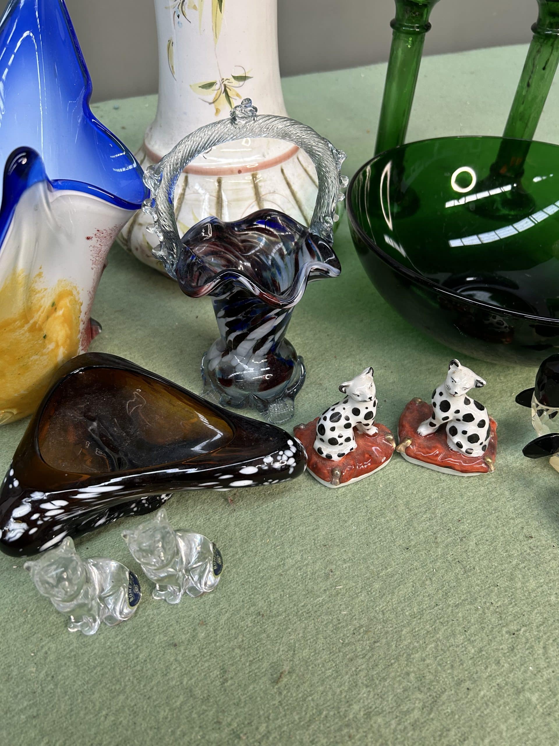 Tilly’s Auction ( part 1)| Item description: | Mixed Lot of glass items, vase, pair of dog ornaments, glass cats, penguins could be Swarovski plus par green glass candlesticks |