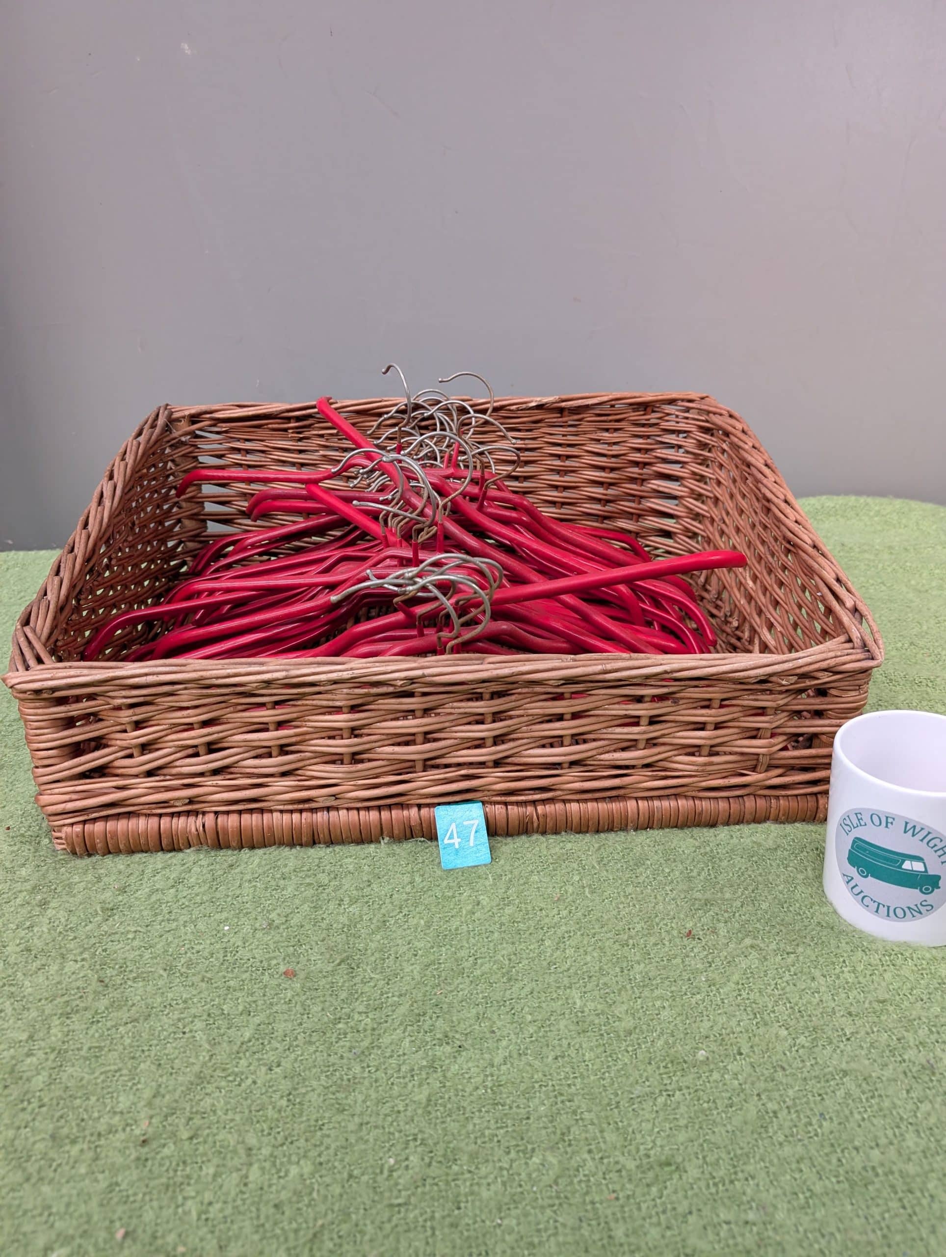 The Last Auction of 2025| Item description: | A basket full of red coat hangers. |