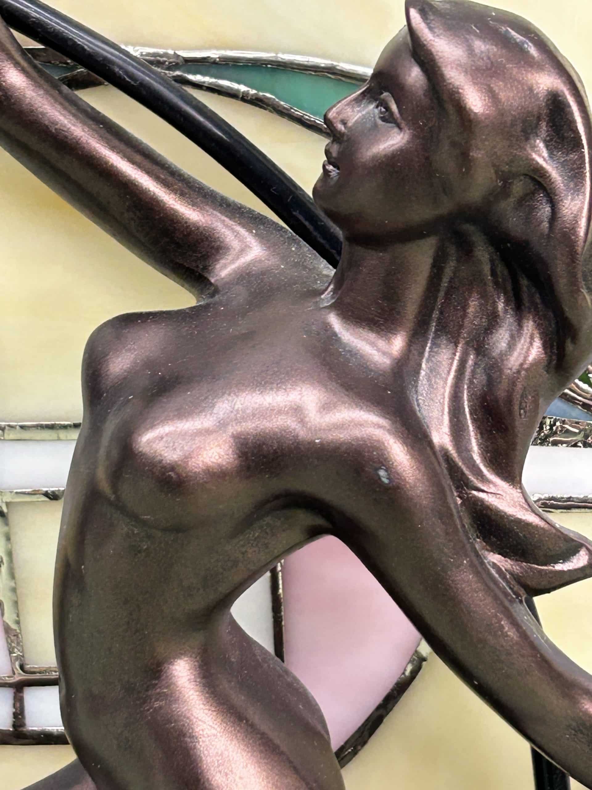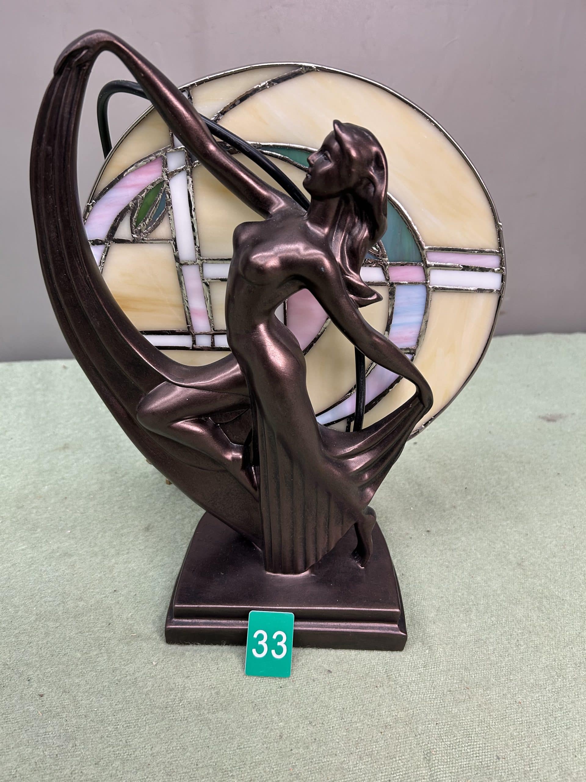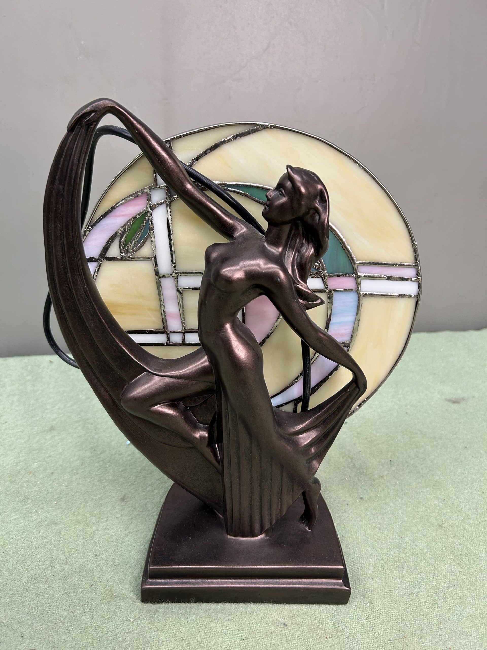 C & E Auction| Item description: | Bronze art deco dancer lady figure “Flapper” back light Tiffany style |