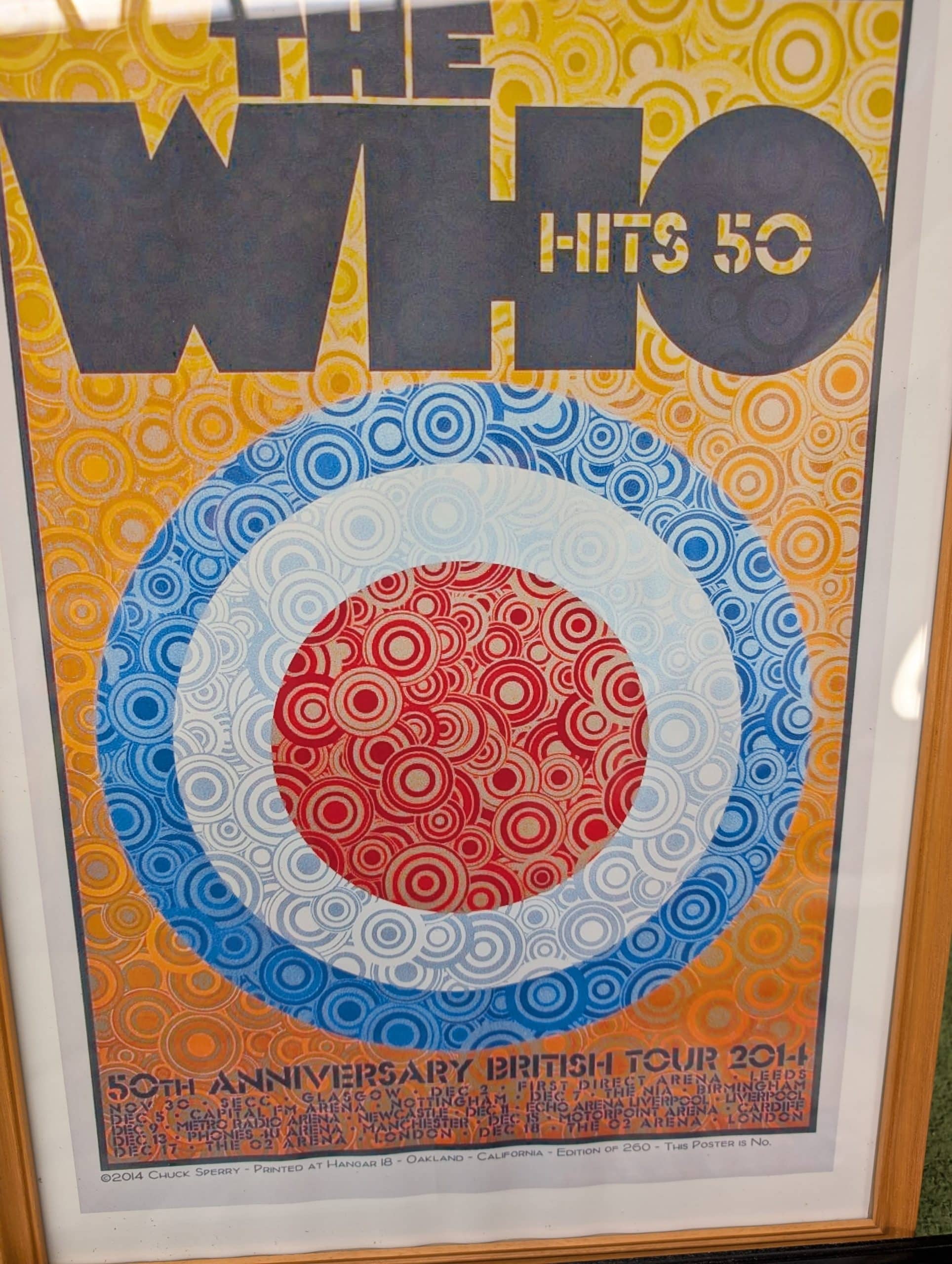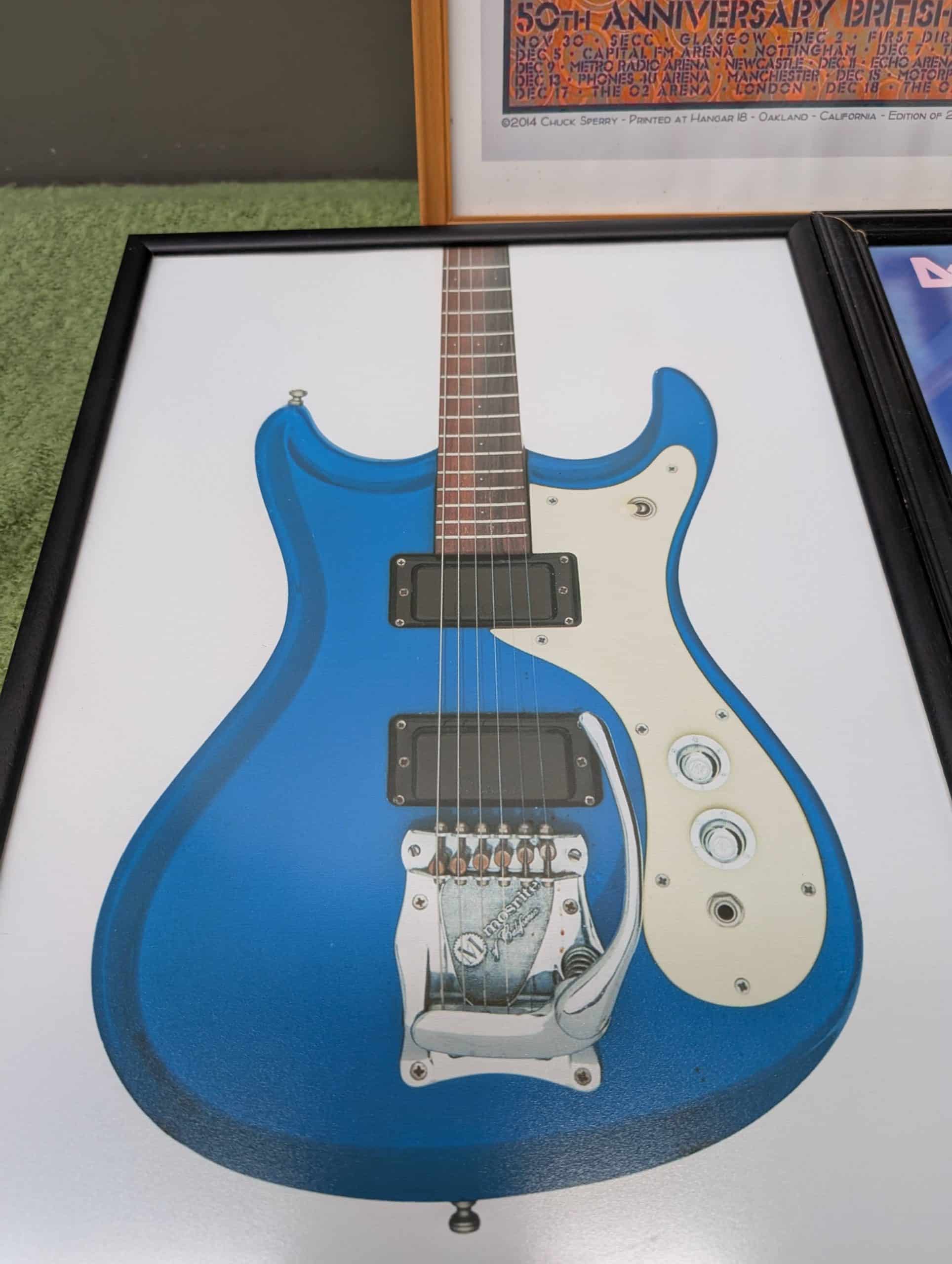 Three framed prints incl. The Who and David Bowie.