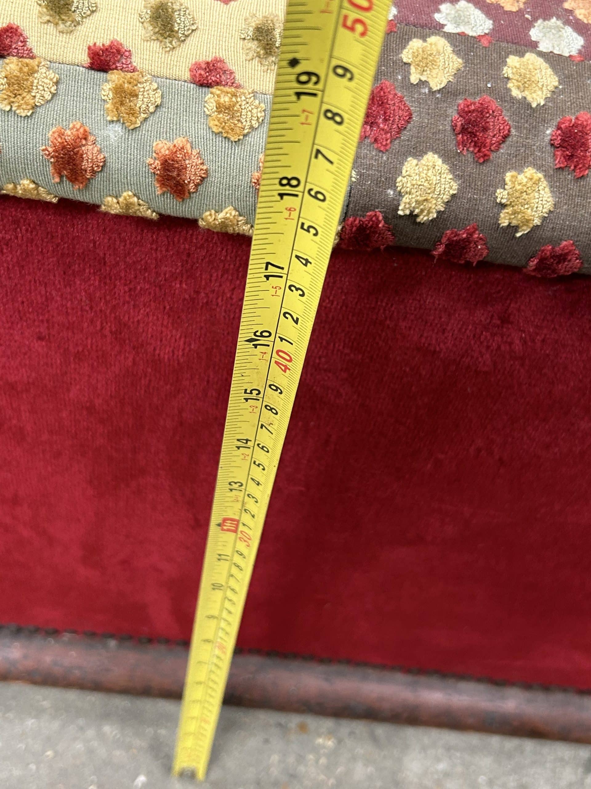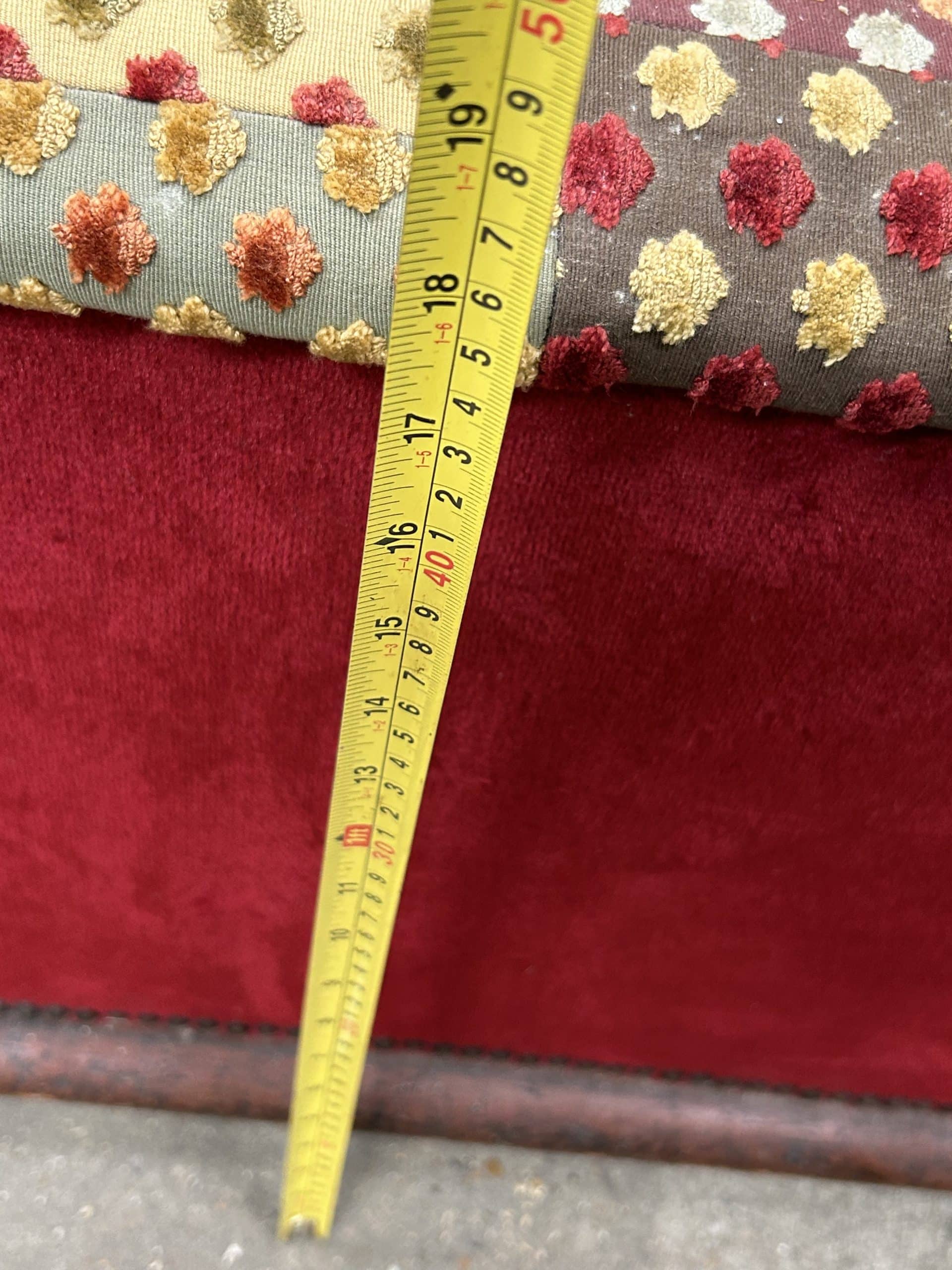 Vintage foot stool, tapestry style top, velvet sides with storage