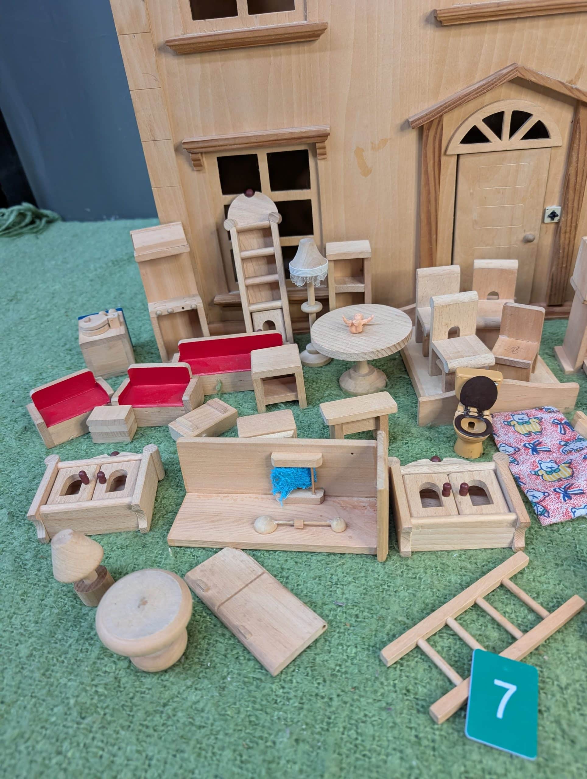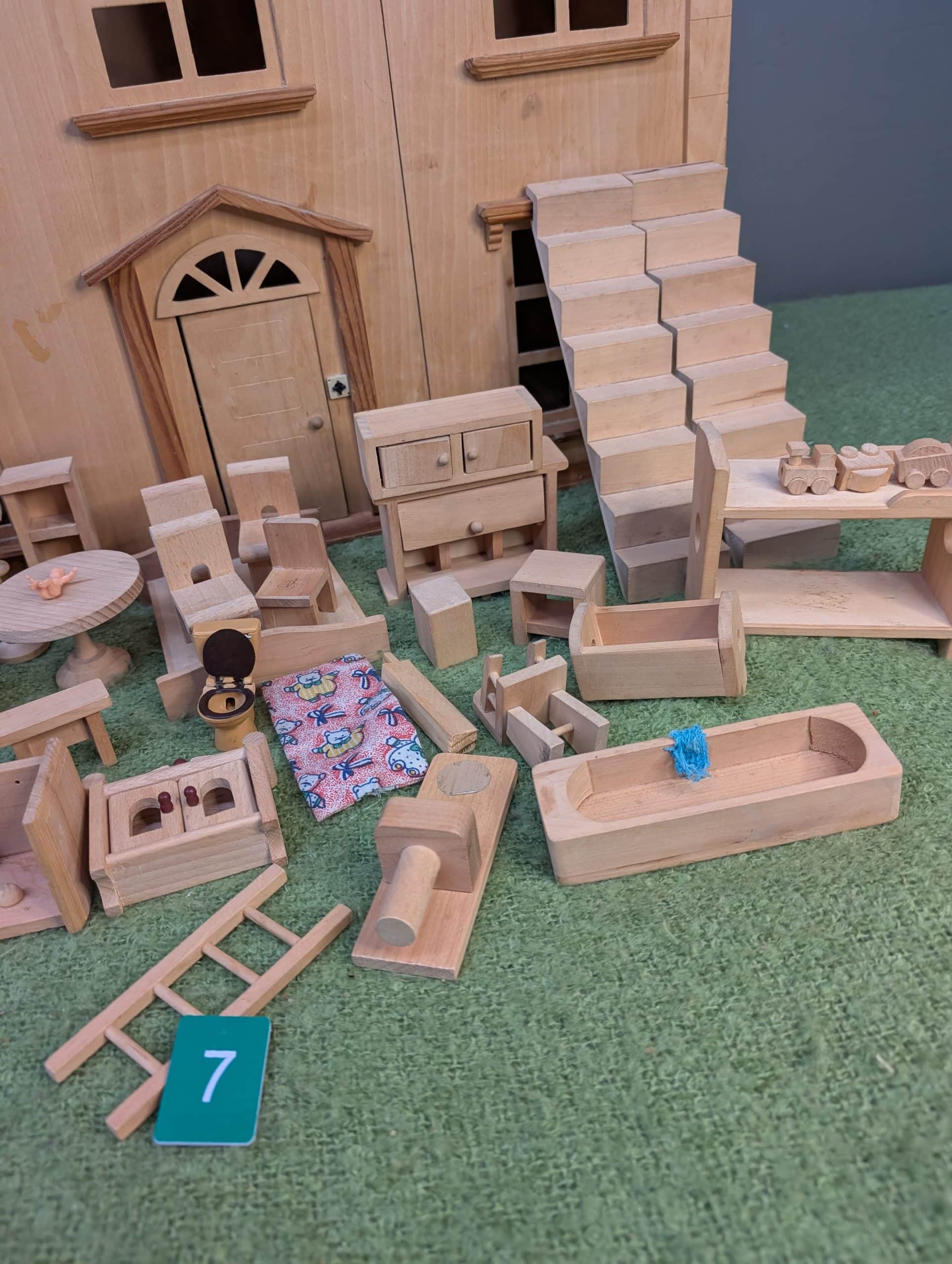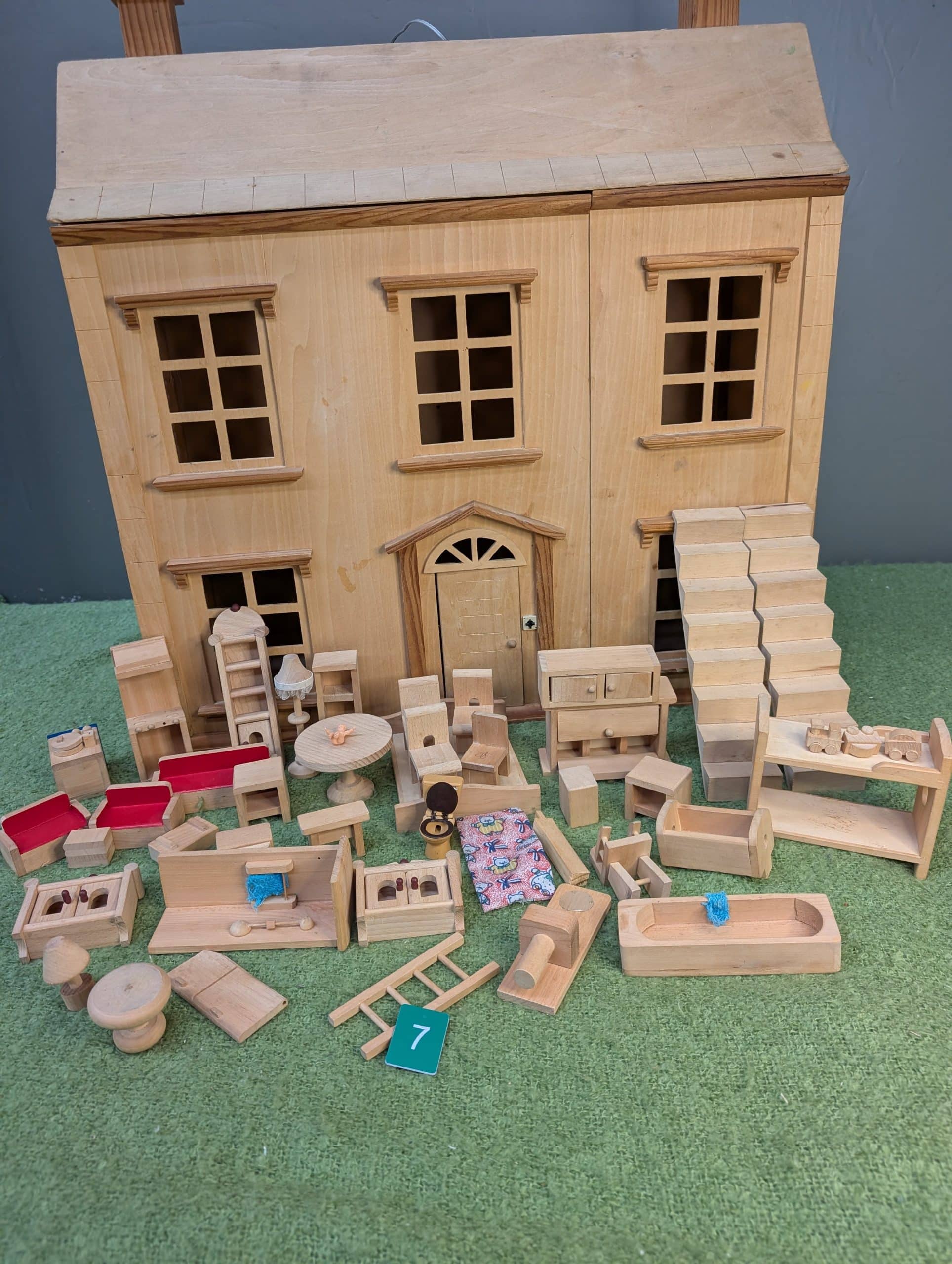 Mrs Bakers Auction| Item description: | A dolls house and a large quantity of dolls house furniture, 23" high x 24" wide. |