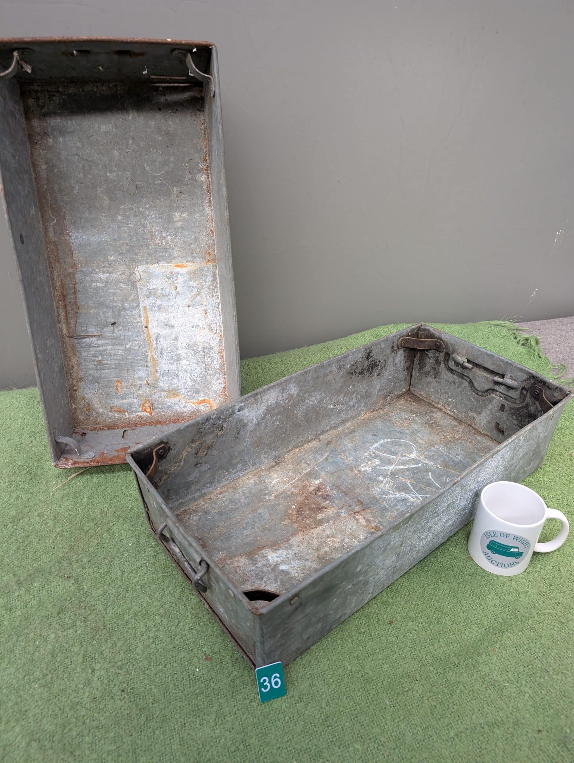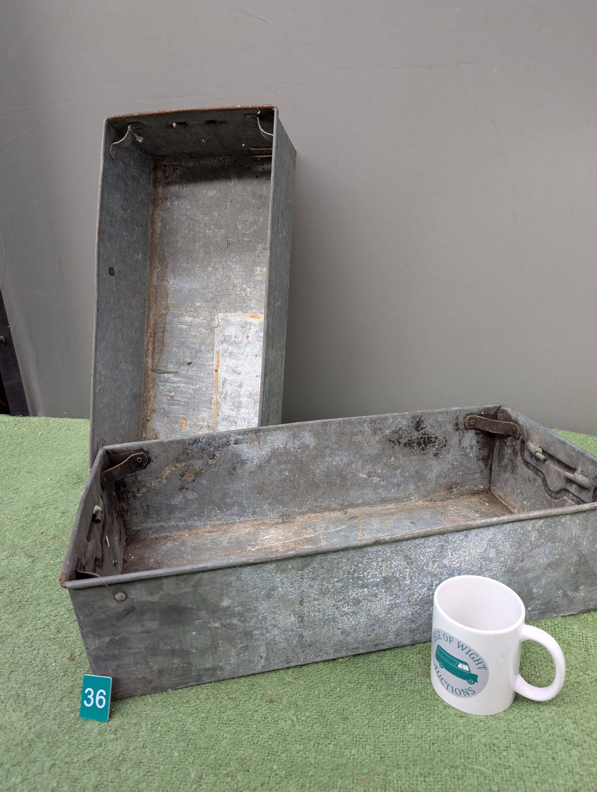 Two, galvanised, garden planters, 24" long x 12" wide.