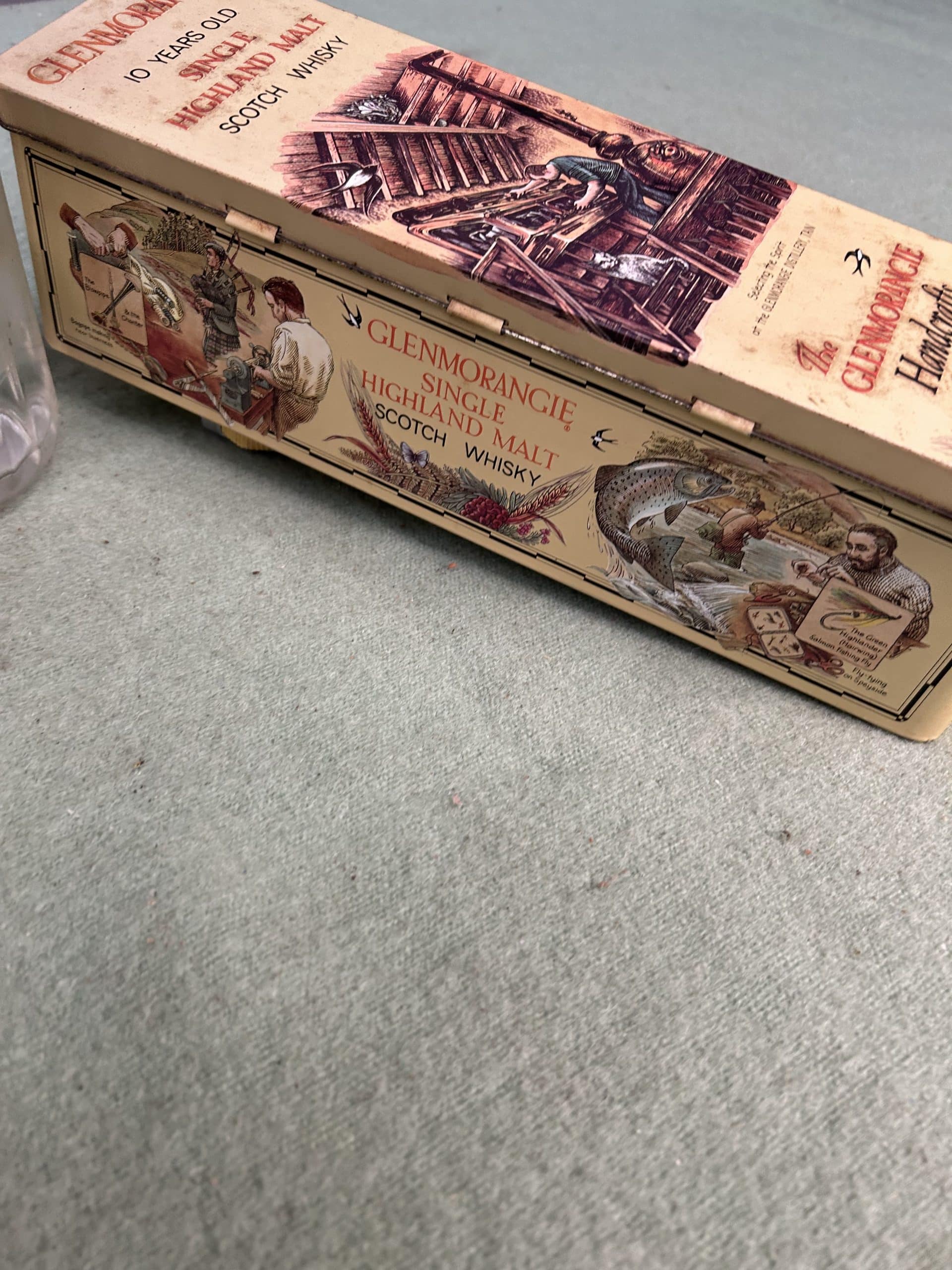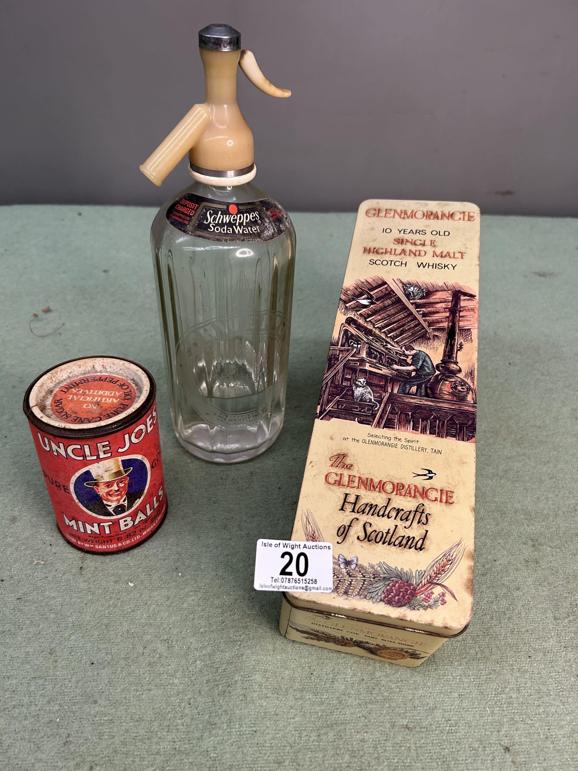 Wren Auction (Part One)| Item description: | Vintage Schweppes Glass Soda Siphon, Glenmorangie Tin, & Branded Tin |