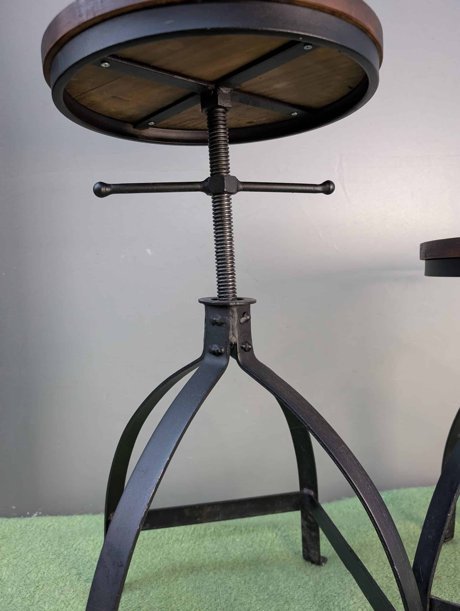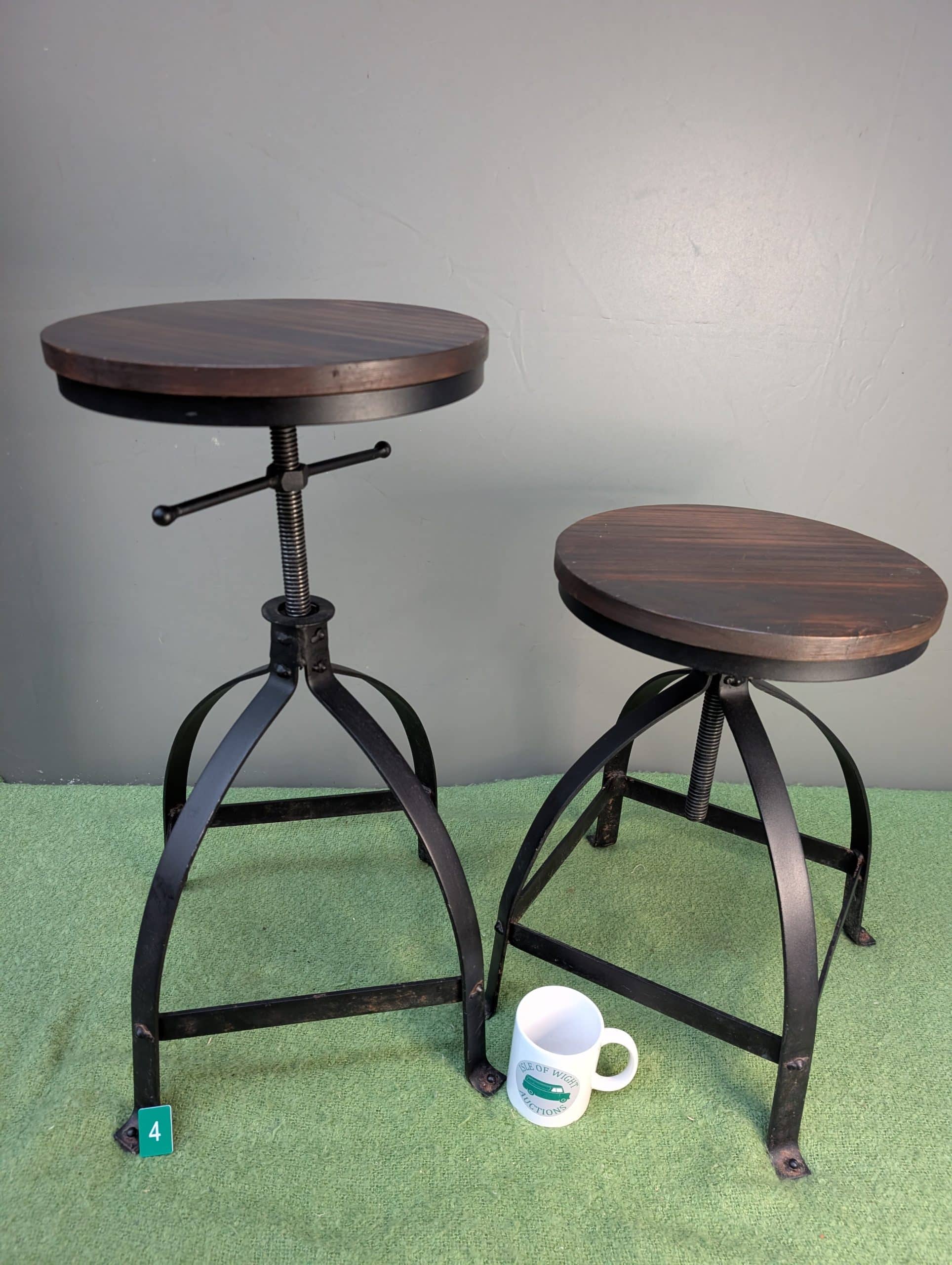Mrs Bakers Auction| Item description: | Two, wooden top, adjustable height stools. |