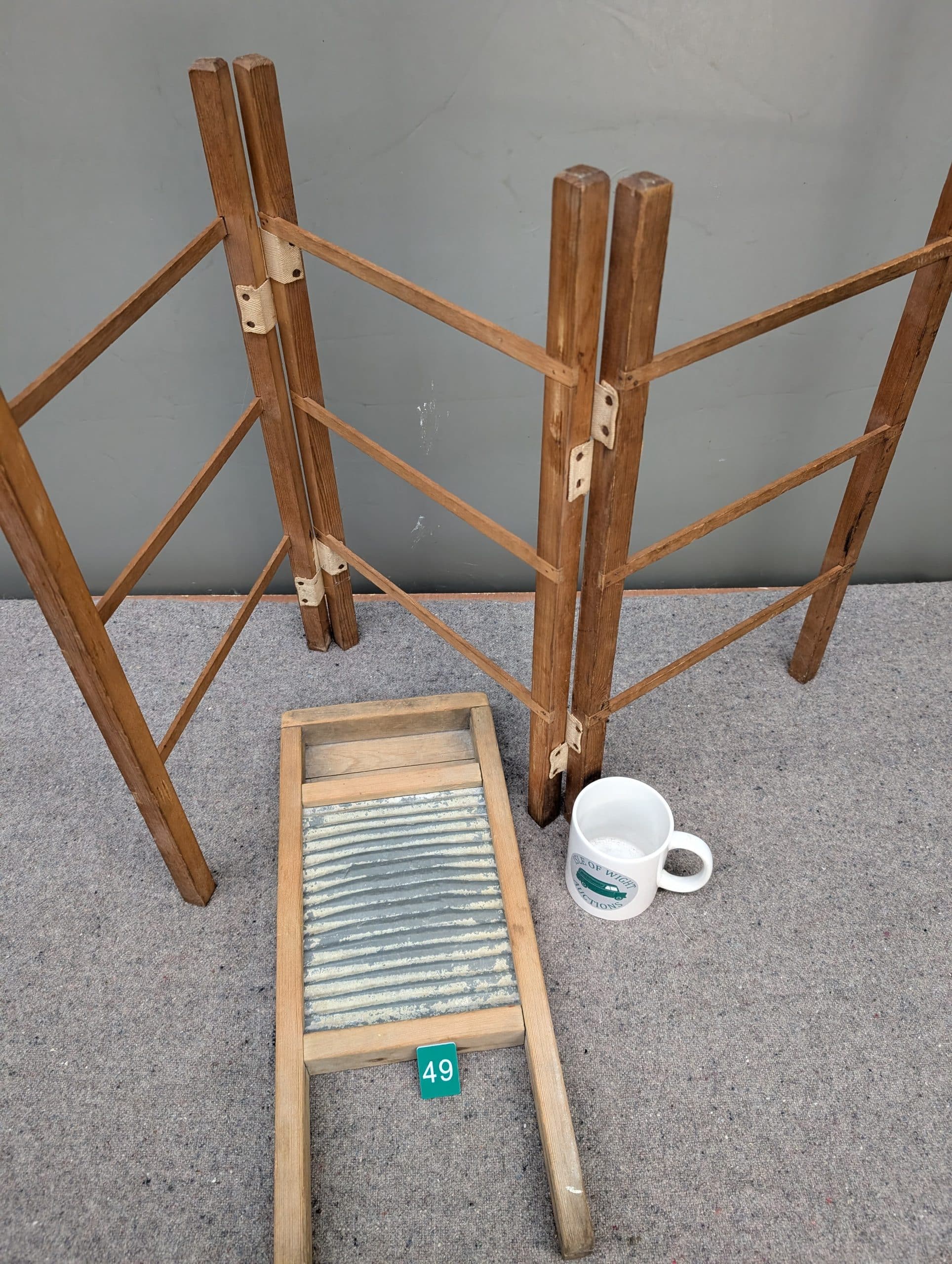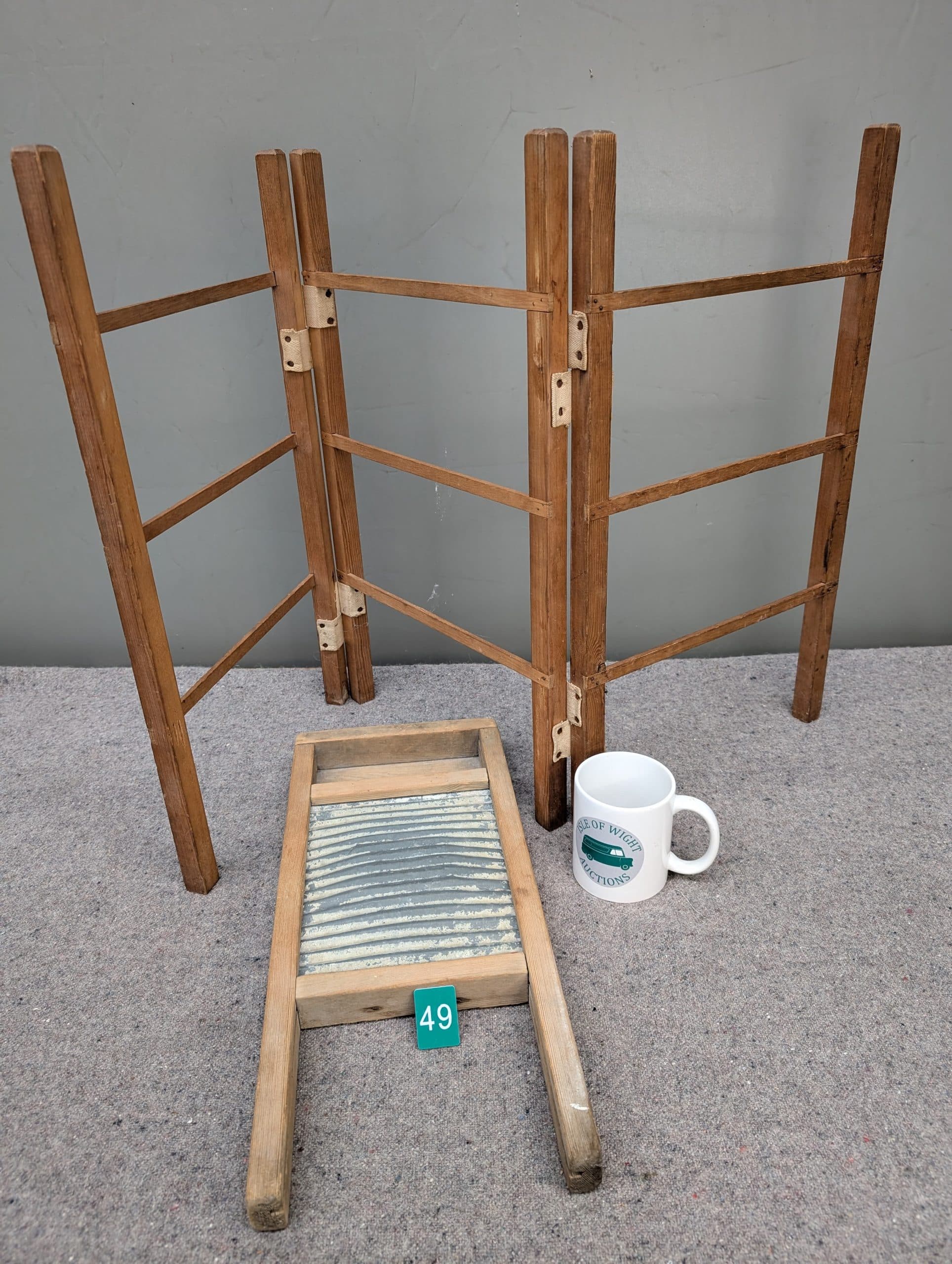 Dolly’s Auction| Item description: | A vintage washboard and a clothes rail. |