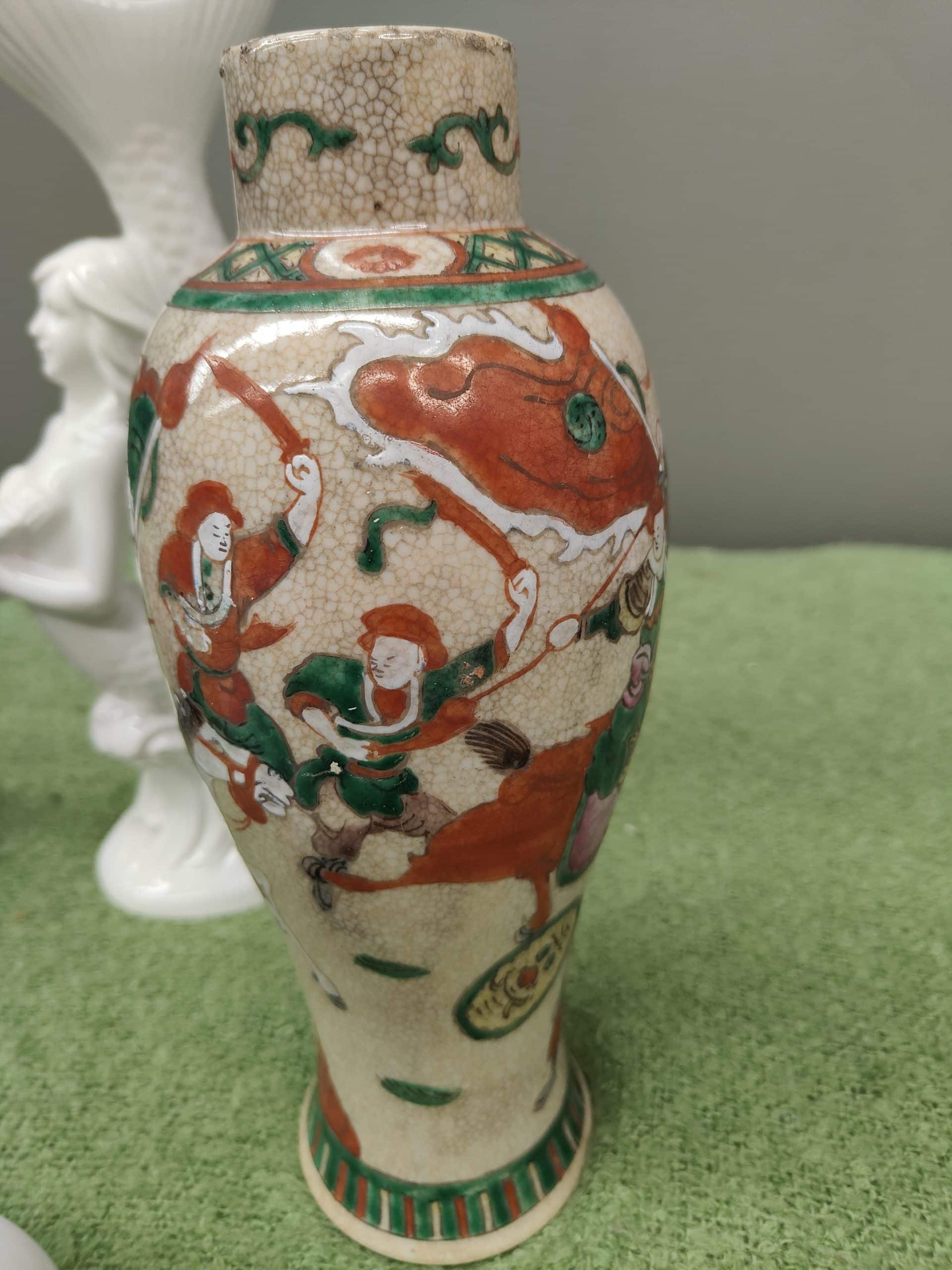 Three vases, incl a Chinese porcelain with a crackle glaze.