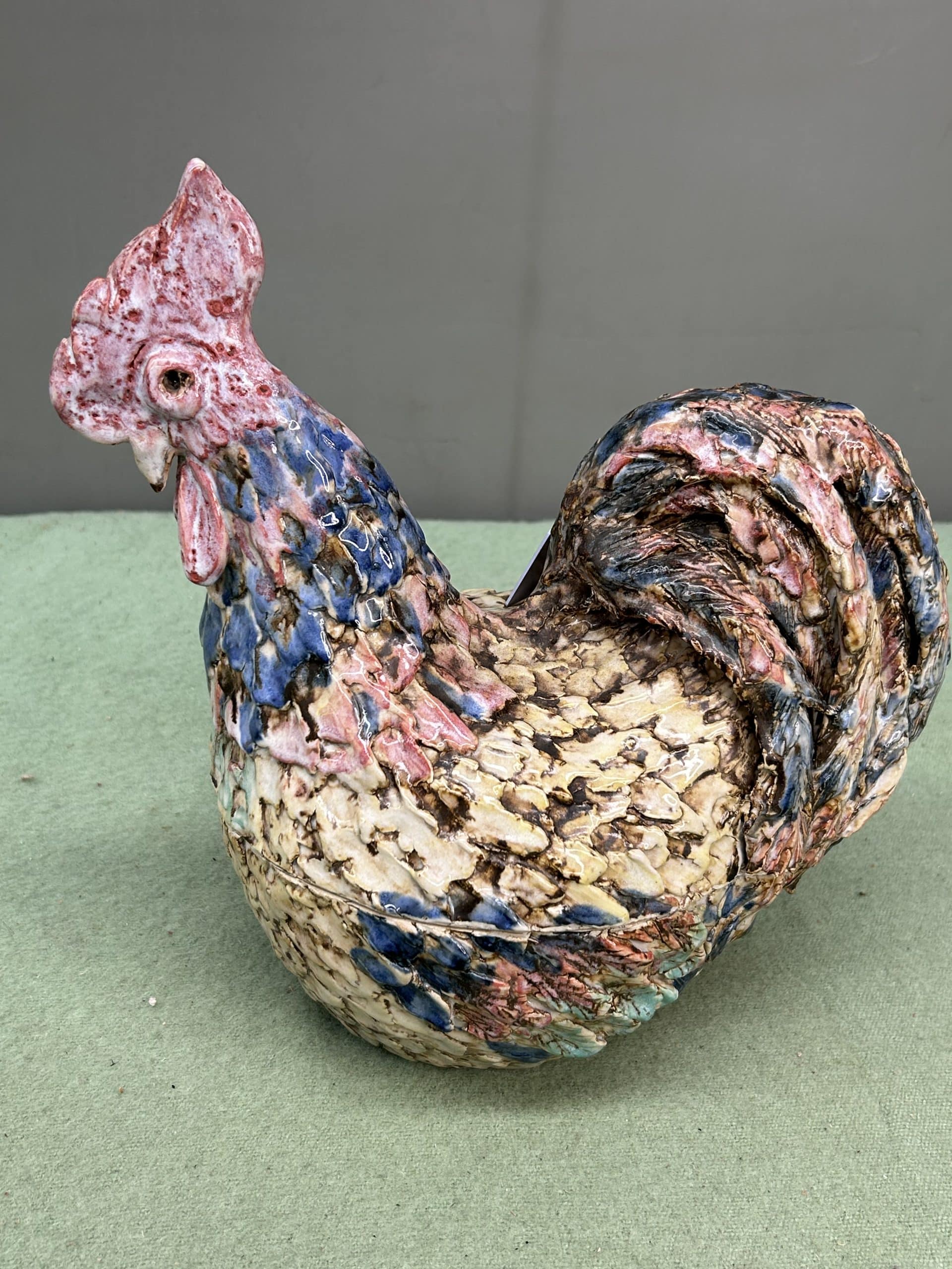 C & E Auction| Item description: | Decorative ceramic rooster handcrafted featuring a textured rustic exterior signed by J.V. Callandar |