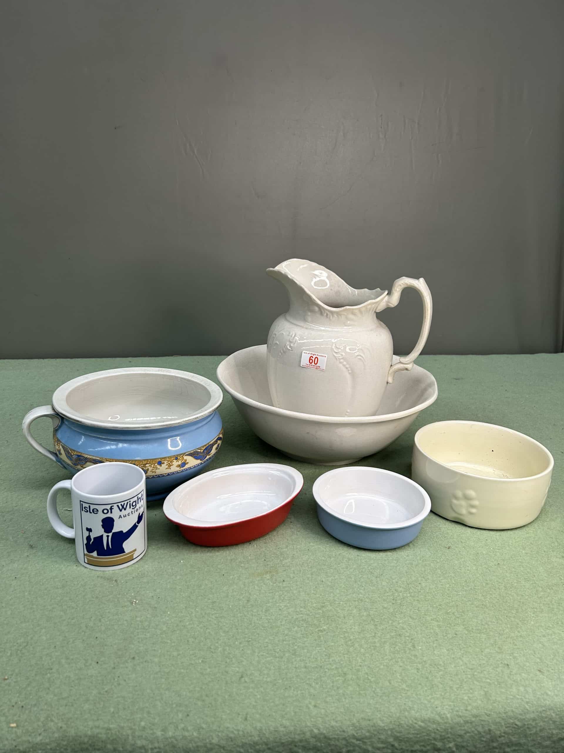 Tilly’s Auction ( part 1)| Item description: | White Jug & Bowl, selection of bowls, chamber pot |
