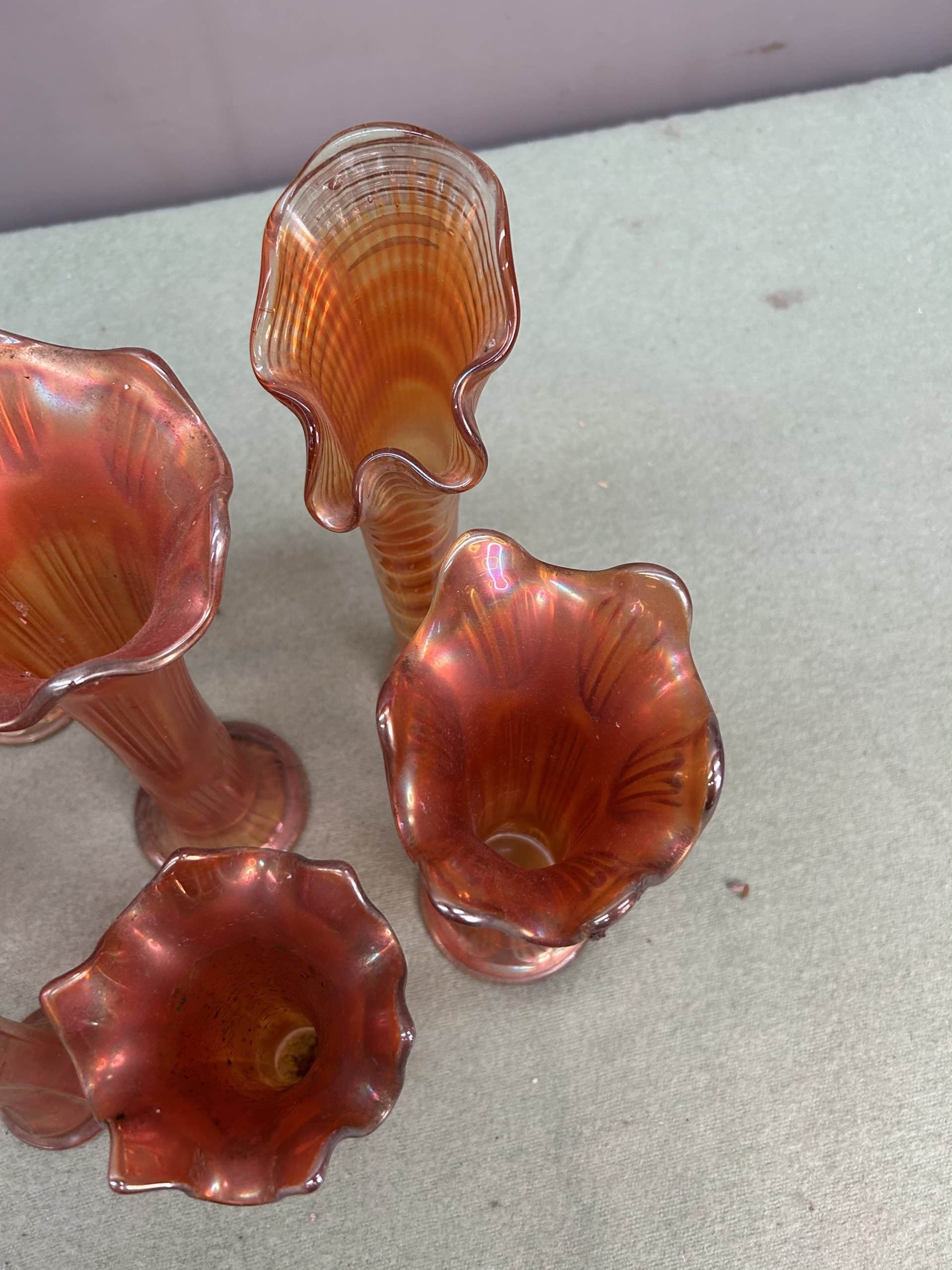 Tilly’s Auction (Part 2)| Item description: | 7 x Vintage Iridescent Carnival Glass Vases good order as can be seen in the photos |