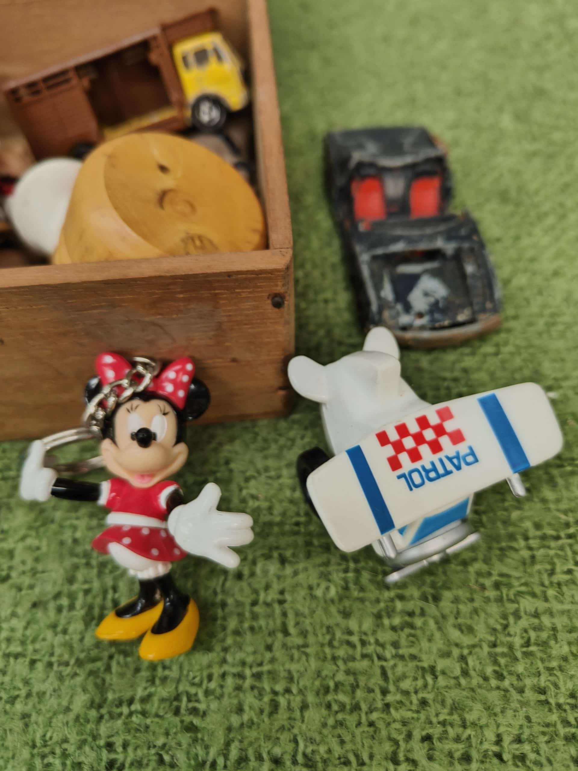 En-e-Va Encore| Item description: | A box of old toys incl. a Minnie Mouse. |