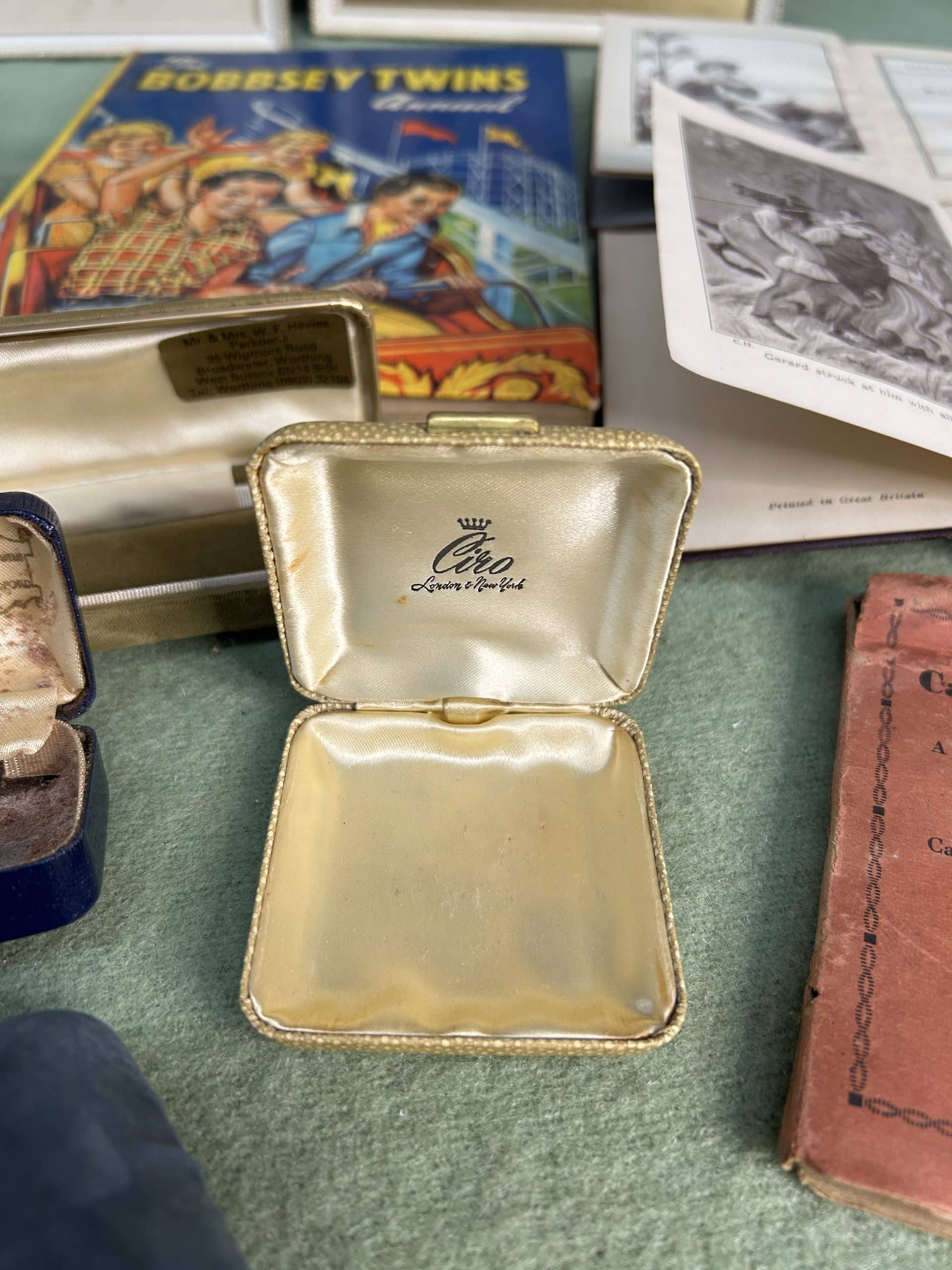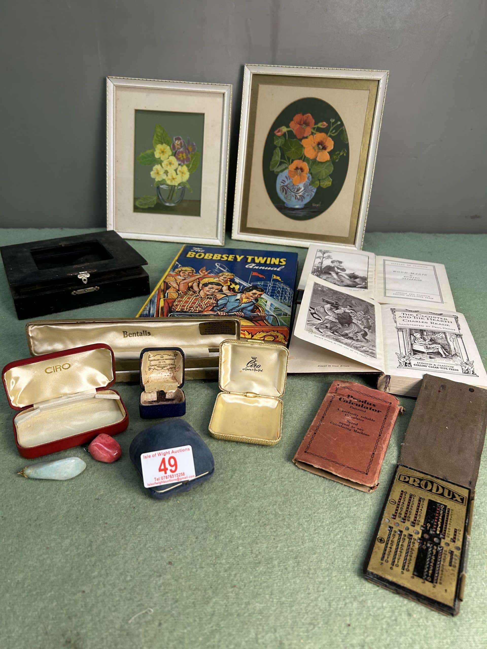 JTA Auction| Item description: | Mixed Lot includes vintage Collectable Bobbsey Twins Annual, various empty jewellery boxes, Produx retro pocket calculator, two flower pictures in frames, two boxes |